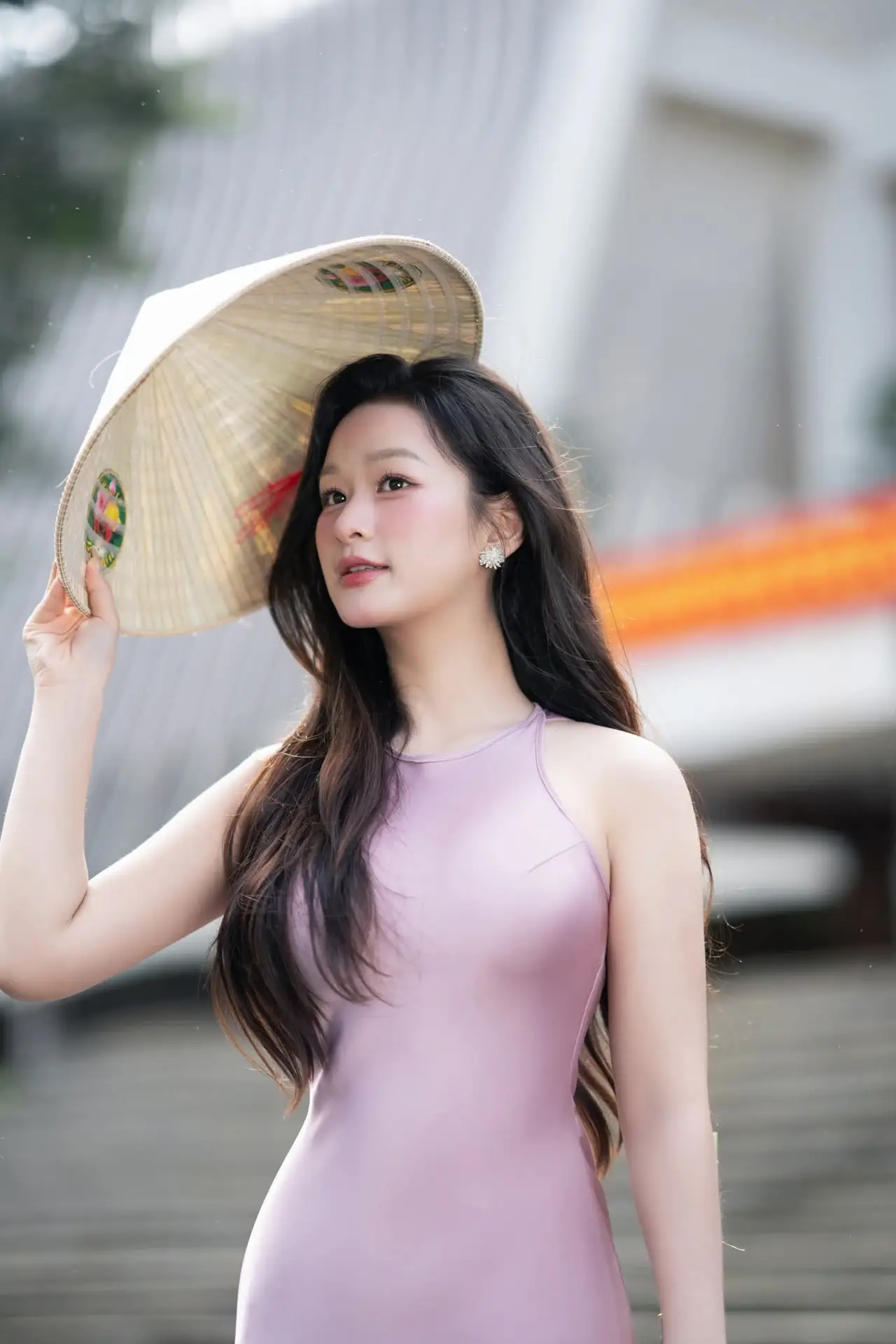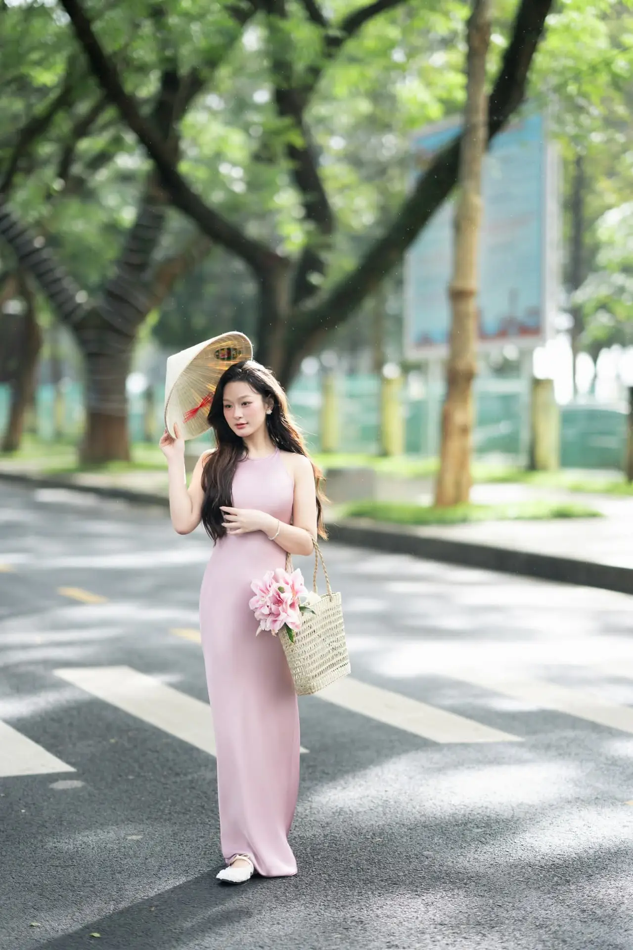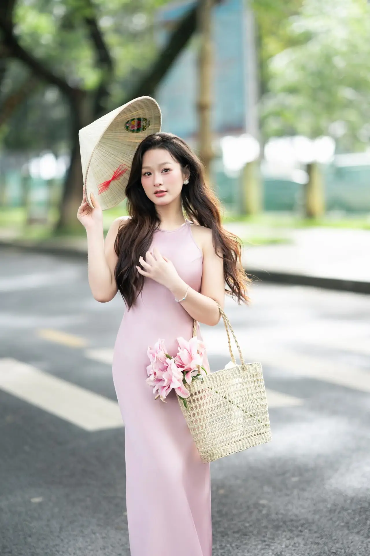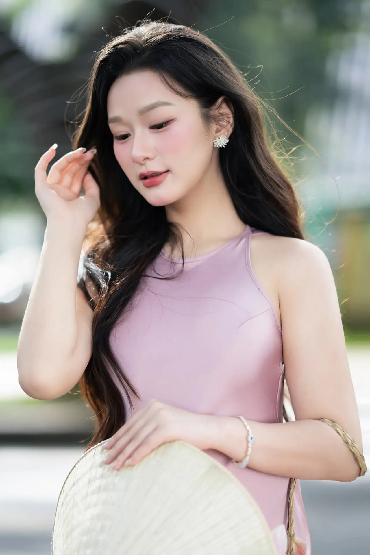 This stunning photograph captures a graceful Vietnamese woman adorned in a traditional pink ao dai. With lustrous black hair and a gently made-up face, she radiates an elegant and gentle beauty characteristic of East Asian women. The fitted ao dai subtly accentuates her delicate curves, highlighting her innate grace and charm. This moment not only celebrates physical beauty but also conveys a deep sense of traditional culture. She embodies the confidence and subtle allure of Vietnamese women navigating modern life while steadfastly preserving their unique cultural identity.#PinkAoDai #VietnameseBeauty #VietnameseWoman #ElegantStyle #TraditionalAttire