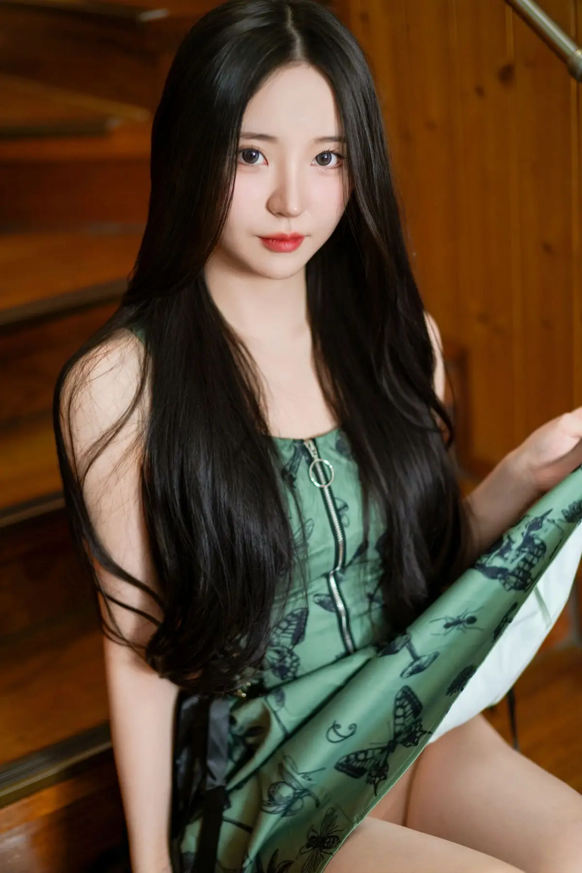 Akutsu Mao radiates a captivating and cherubic beauty in this enchanting image. She reclines gracefully on a warm wooden floor her long flowing hair spread naturally around her. Gentle sunlight streams in softly illuminating her figure and creating an ethereal glow. Her simple light green attire accentuates her delicate features and elegant posture. Akutsu Mao's subtle smile and alluring gaze convey a sense of serene confidence and innate charm. This moment captures not just a visual but also the tranquil emotions and captivating allure that she effortlessly embodies making it a truly mesmerizing portrait.#AkutsuMao #CherubicBeauty #JapaneseModel #SoftLight #AlluringPose