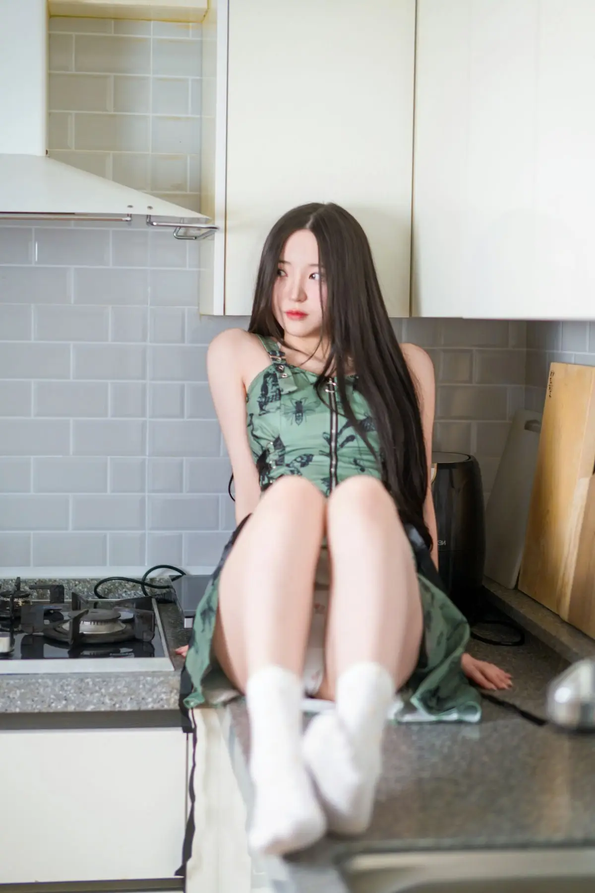 Yeolmu captivates viewers with her striking and artistic pose in a modern kitchen setting. Perched confidently on a sleek countertop, she exudes a captivating blend of self-assurance and allure, transforming an everyday domestic scene into an enchanting photographic masterpiece. Her deep gaze and subtle expression add an air of mystery and charm to every moment captured. This image is part of a special collection where Yeolmu masterfully combines subtle sensuality with familiar surroundings, offering a fresh and emotional perspective on physical beauty. Every detail in the photograph, from the soft lighting to her interaction with the space, is meticulously arranged, creating a harmonious and unforgettable visual experience.#Yeolmu #AlluringPose #KitchenShoot #GlamourModel #SensualBeauty