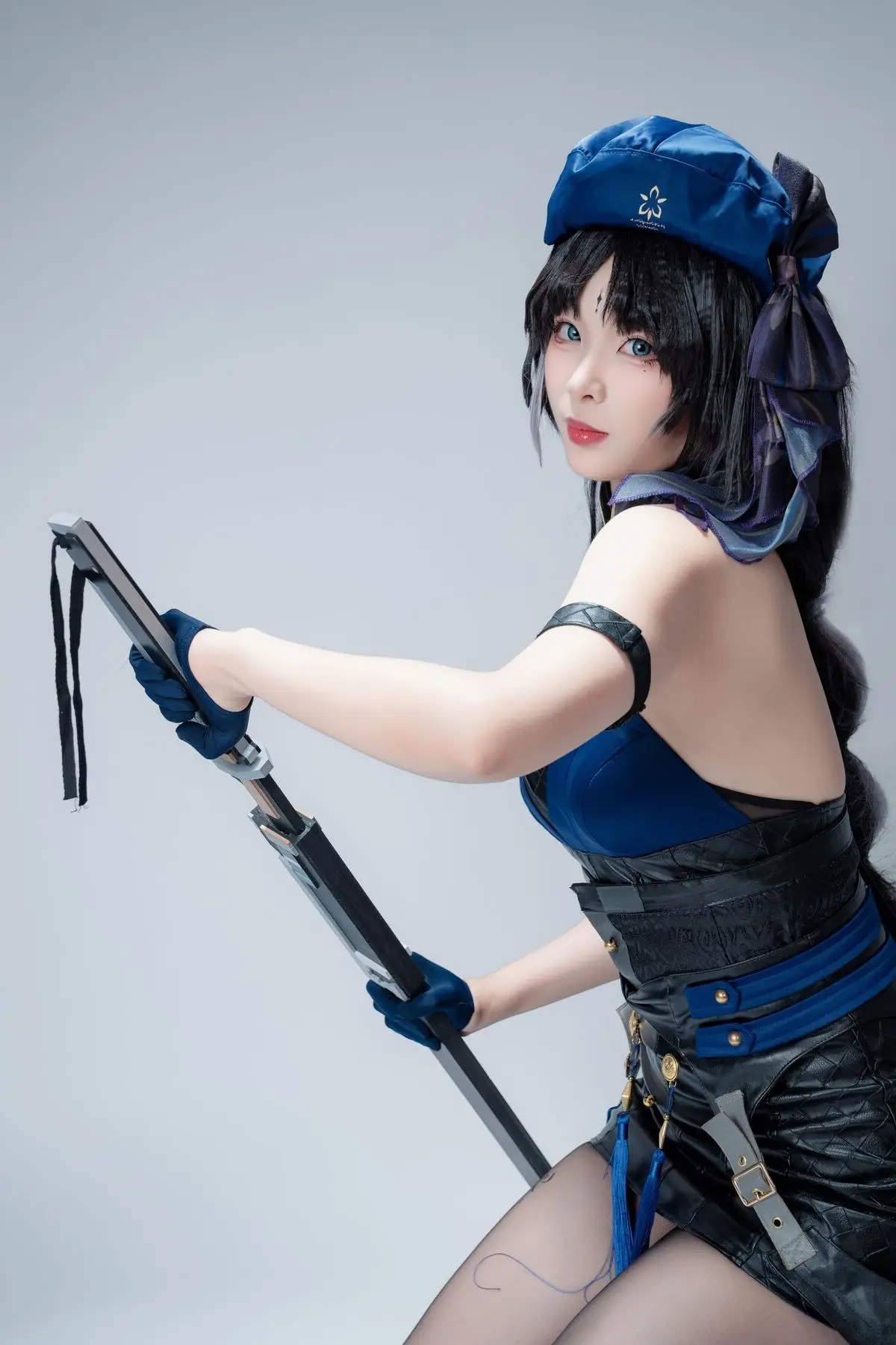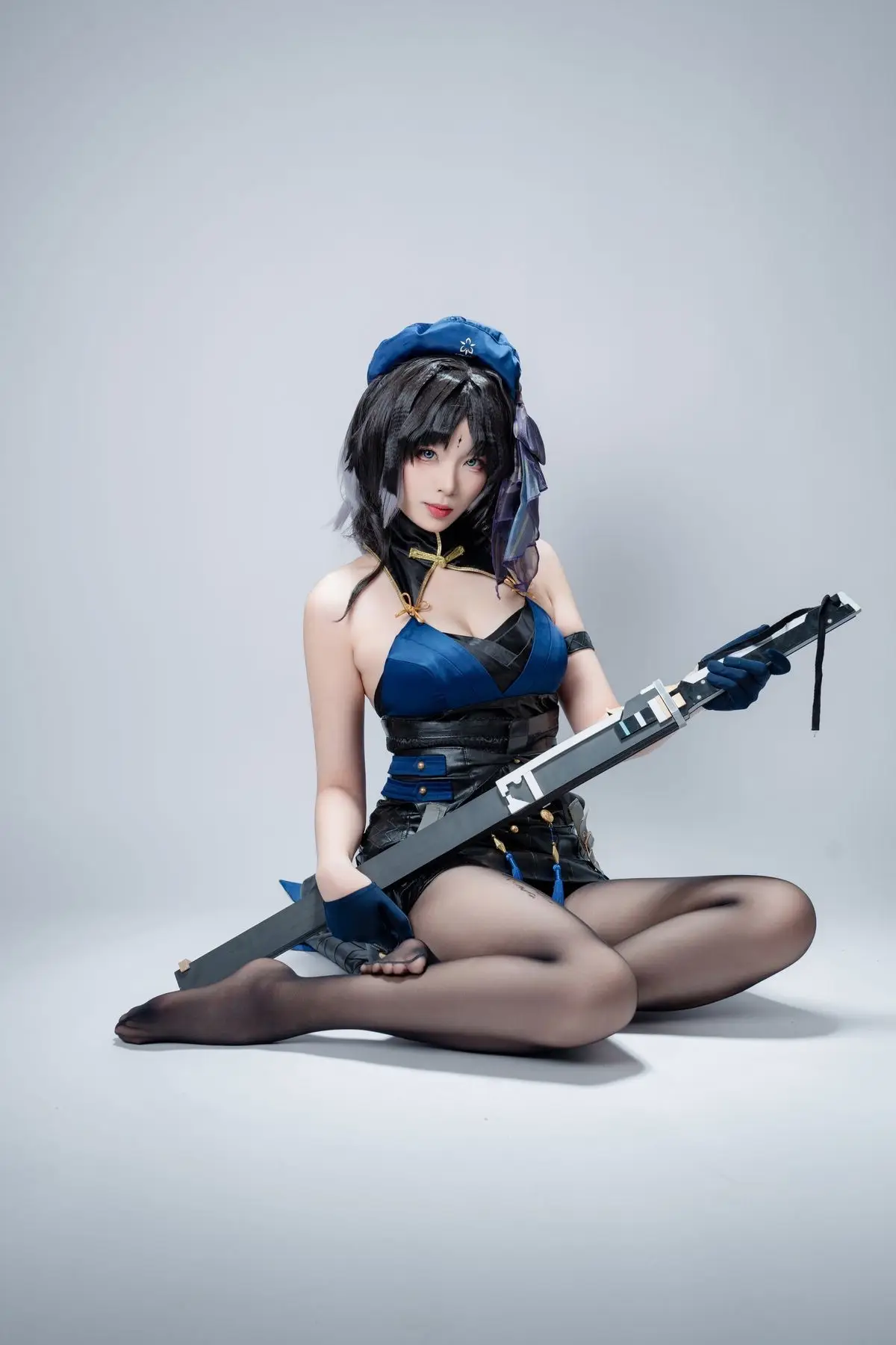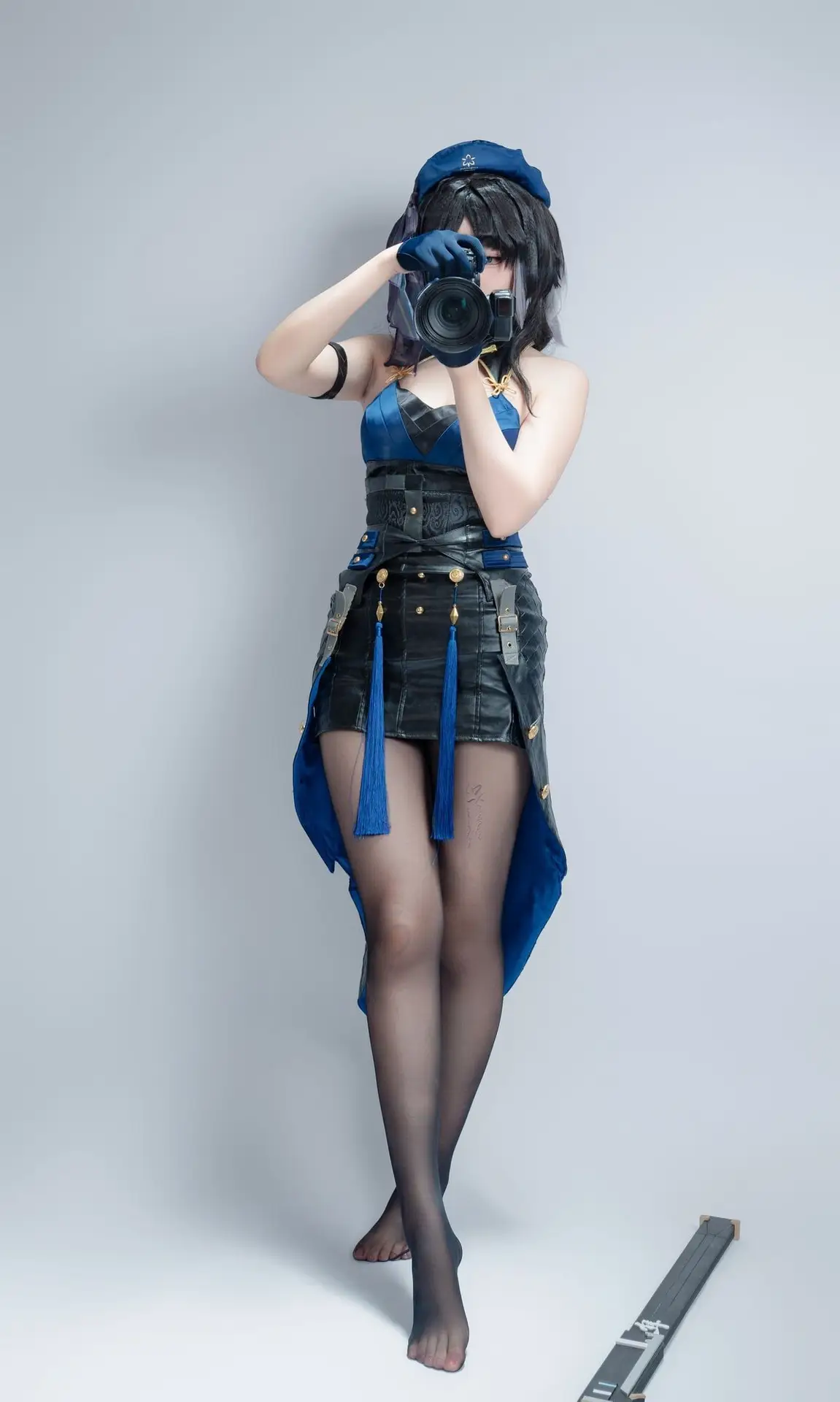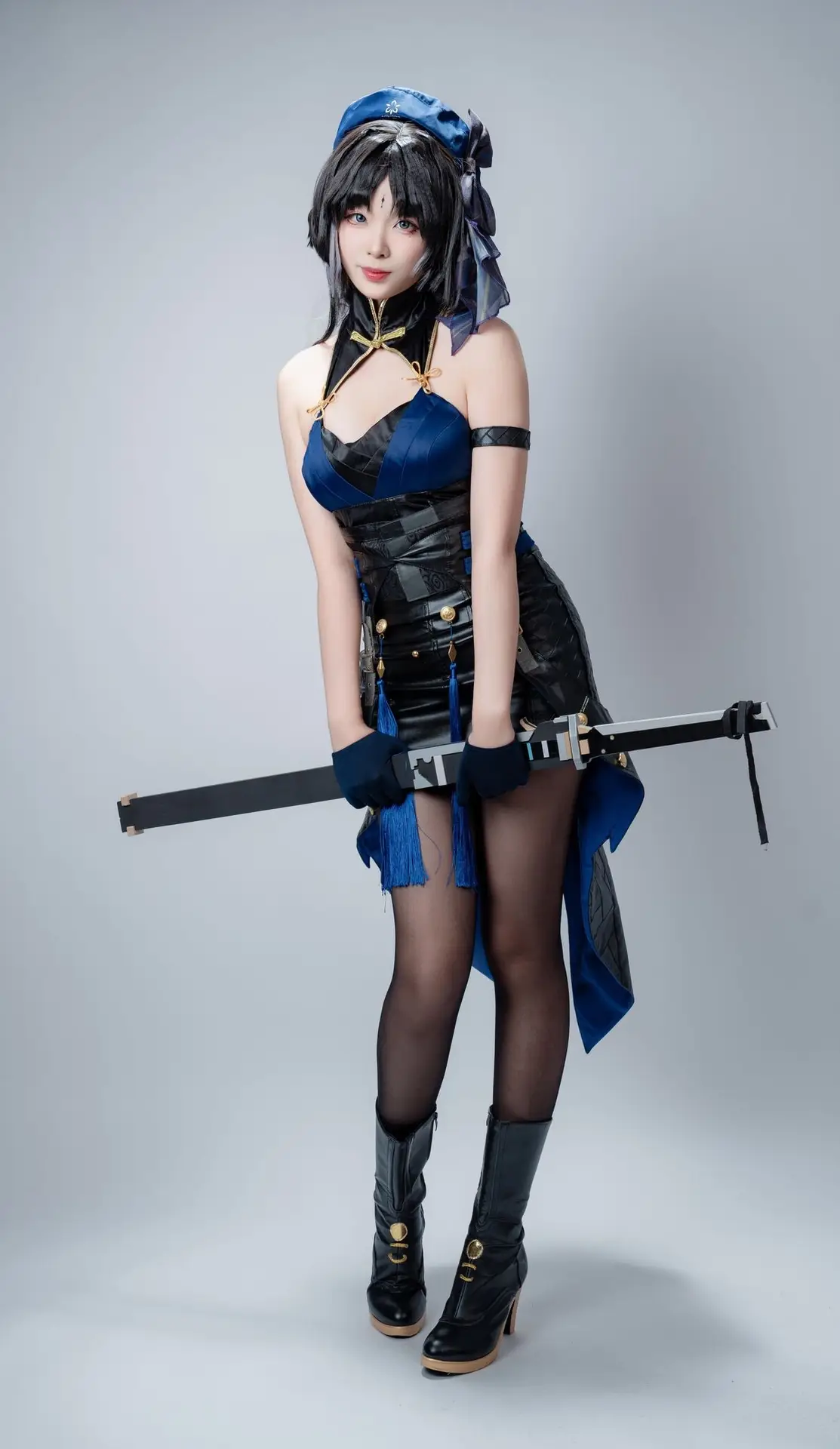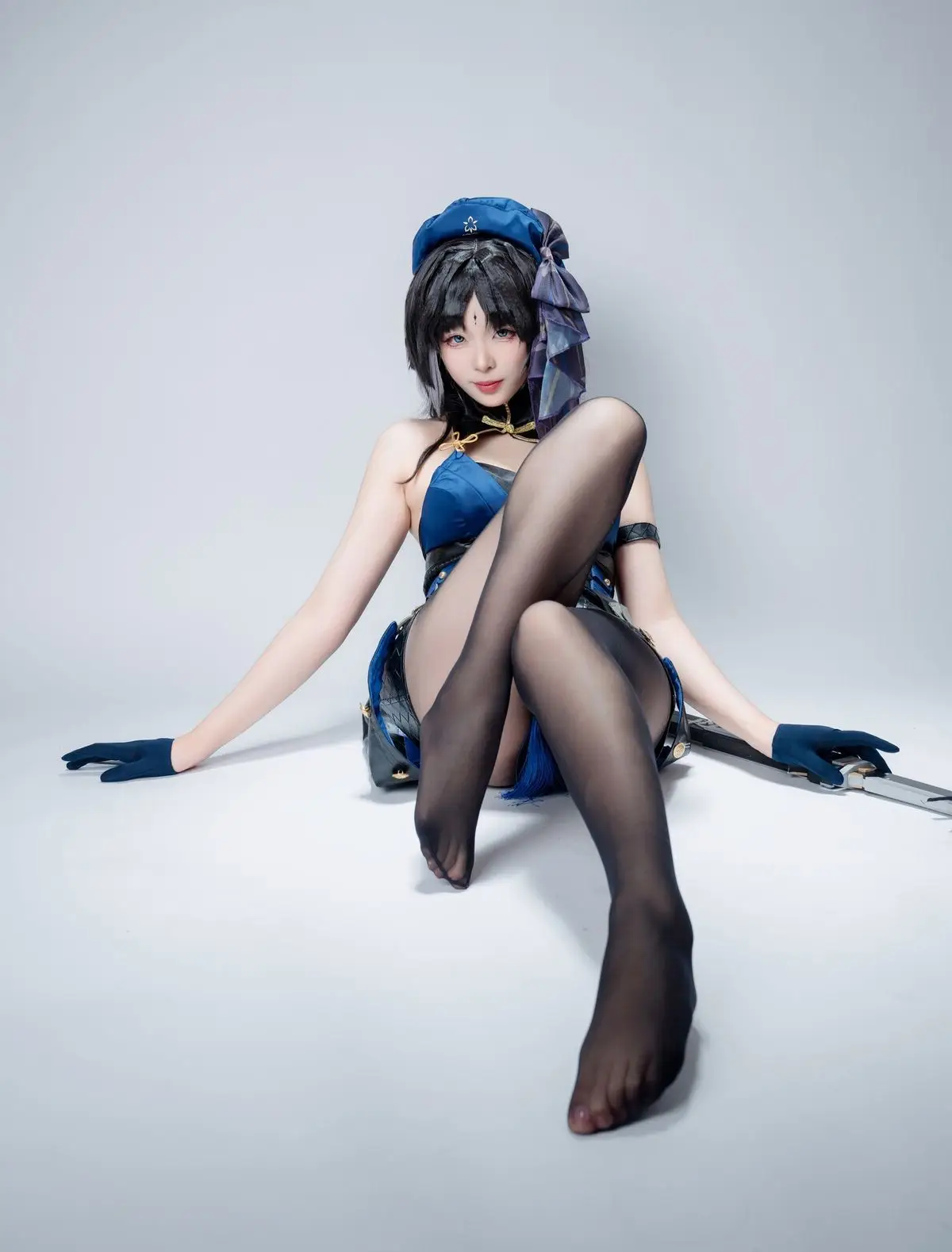 In this captivating series, Coser 轩萧学姐 flawlessly embodies the character 秧秧 Part02, presenting a truly mesmerizing visual. Dressed in a sophisticated dark blue and black costume with intricate details, 轩萧学姐 showcases her dedication and grace. Her elegant seated pose, combined with a captivating gaze, creates an aura that is both mysterious and refined. The meticulous styling from the elaborate headpiece to the delicate sheer stockings perfectly complements the character's aesthetic highlighting the cosplayer's figure and expressive presence. This collection stands as a testament to the cosplayer's artistry and passion offering viewers an impressive and emotionally resonant experience of the cosplay world.#Coser #XuanXiao #XueJie #YangYang #Cosplay #CosplayArt #CostumePlay #AnimeCosplay