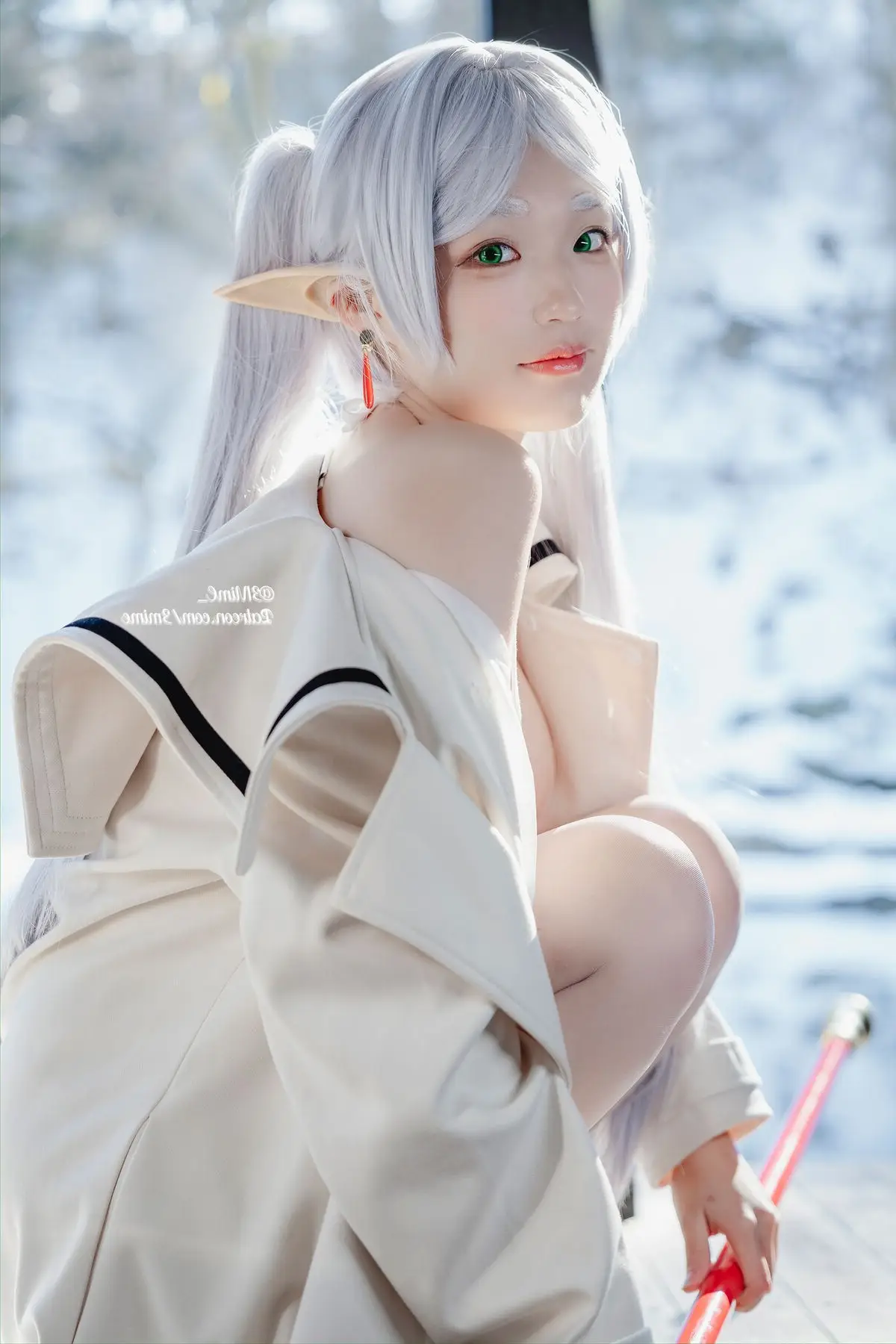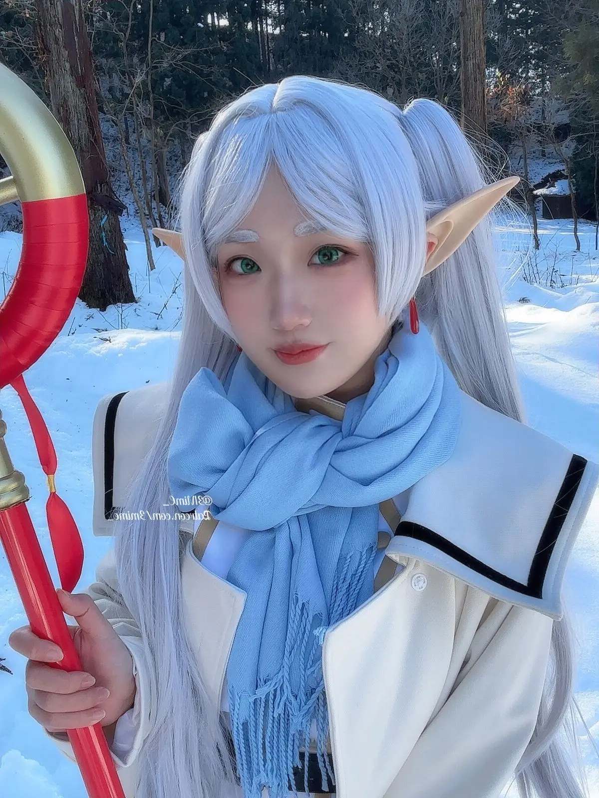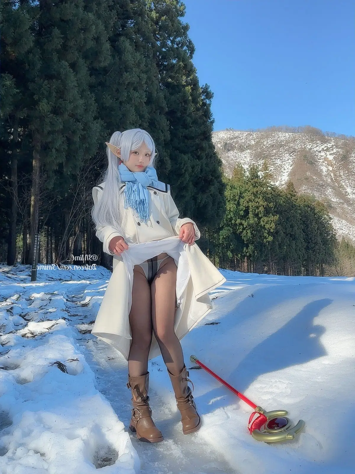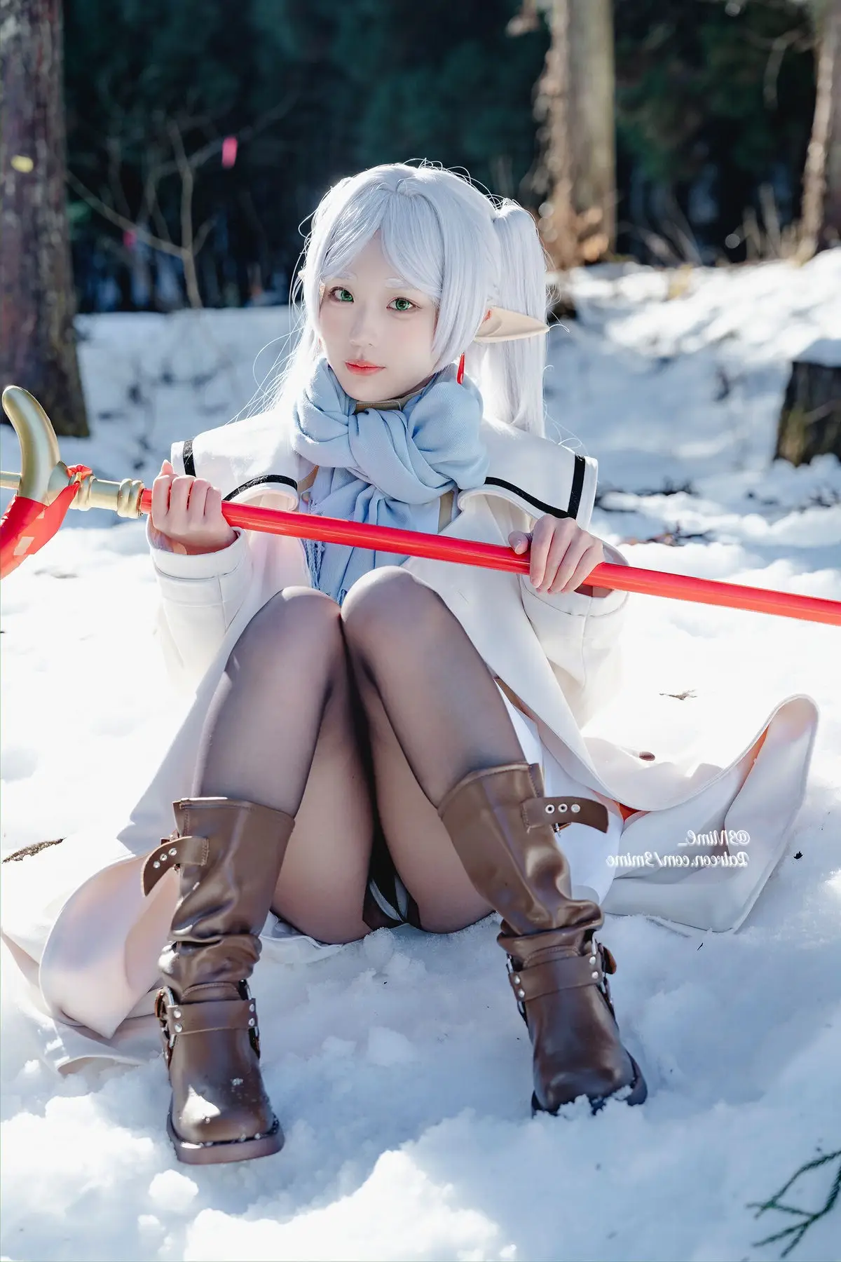 Coser Mim: Enchanting Frieren Cosplay (32P) in a Winter Wonderland
