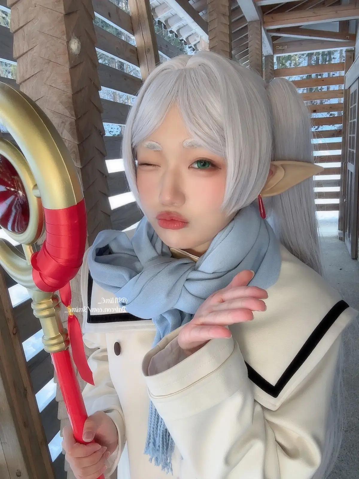 Discover the breathtaking beauty of Coser Mime 弥美 as she transforms into Frieren amidst a pristine snowy landscape. This photo collection immerses viewers in a magical world where the immortal mage Frieren is brought to life with authenticity and emotion. Every detail from the iconic costume to the silver hair and elf ears is delicately recreated by Mime. Her profound gaze and the powerful staff portray a Frieren who is both strong and imbued with her characteristic melancholy. The pure white snow background not only highlights the character but also evokes a sense of timelessness and long journeys. This is truly a wonderful visual experience for fans of Frieren and cosplay enthusiasts.#FrierenCosplay #Coser #Mime #MimeFrieren #AnimeCosplay #Frieren