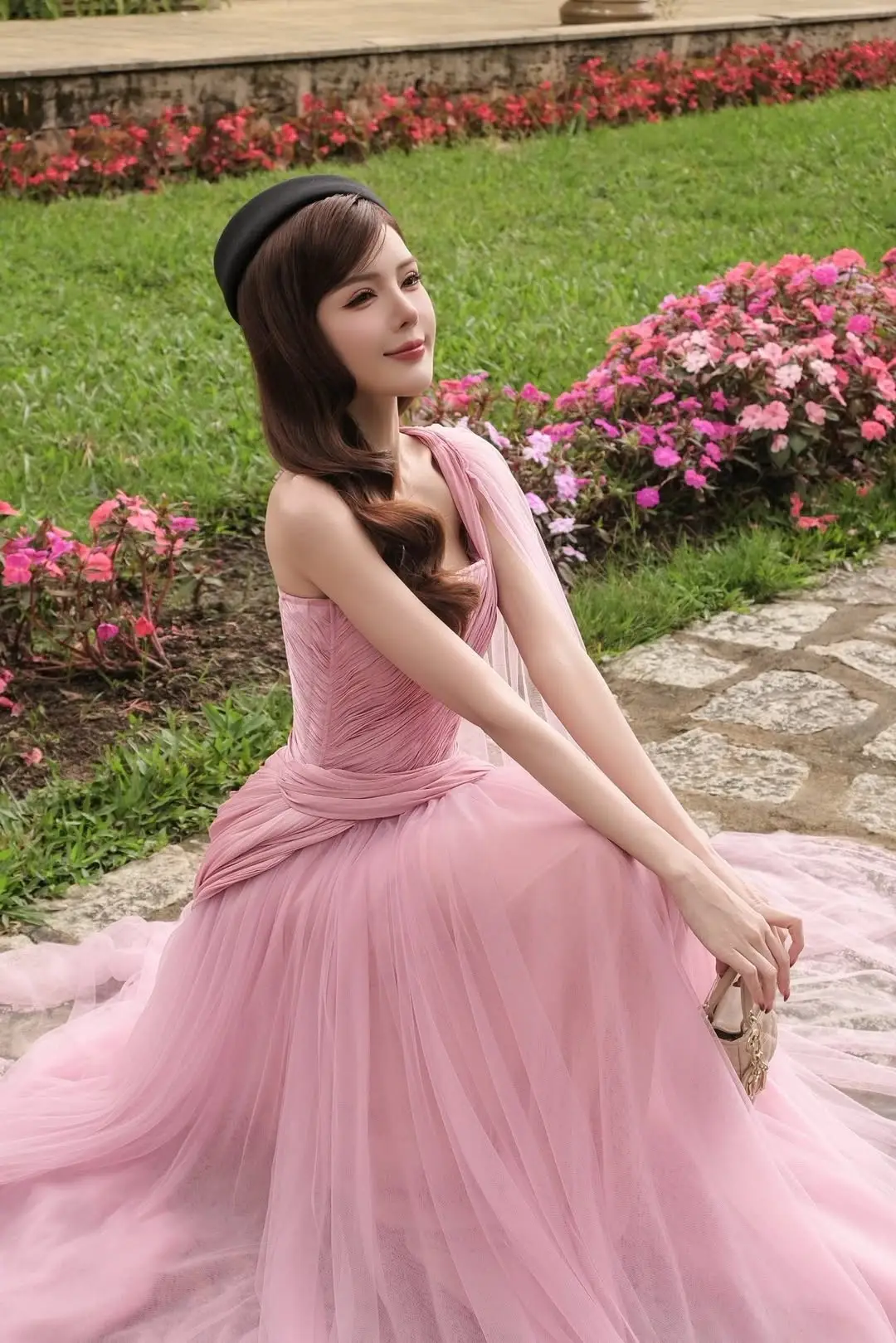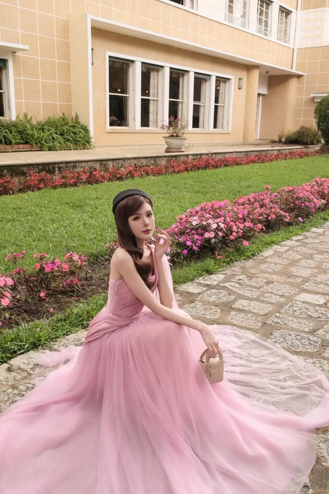 Amidst a lush green garden and classic architecture Lilly Luta known as a living doll captivated viewers as she transformed into a sweet princess She donned a flowing pastel pink gown creating an incredibly feminine and graceful beauty Her elegant pose on the paved path perfectly complements the romantic backdrop Every angle of the photo shoot exudes a delicate charm and gentleness as if she is wandering into a romantic fairytale With a sophisticated outdoor photography style Lilly Luta successfully presented an image of a dreamy muse enchanting every gaze and evoking pure innocent beauty#LillyLuta #PinkDressPrincess #LivingDoll #FeminineFashion #OutdoorPhotoshoot