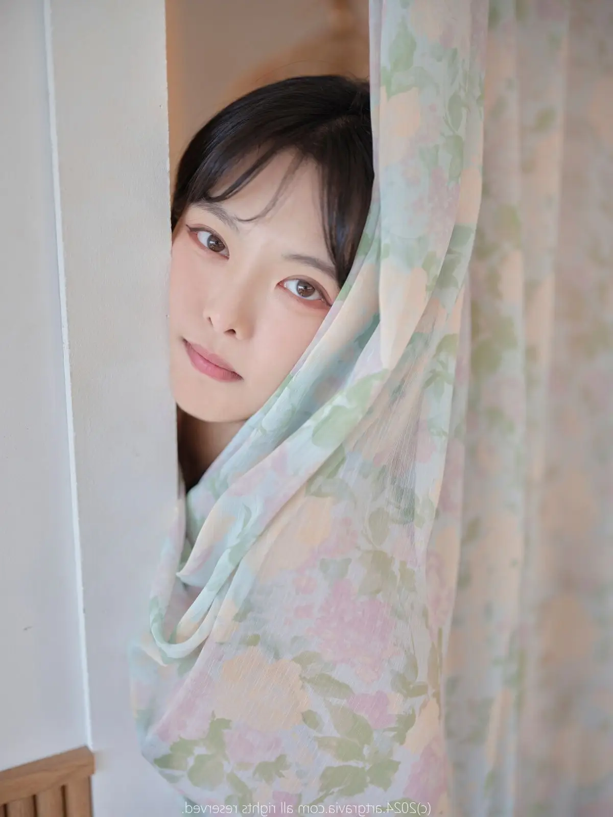In this exquisite AG Vol.611 Areumm 다움 Part01 collection model Areumm showcases her pure and graceful East Asian beauty. Her lustrous dark hair and deep captivating eyes effortlessly draw every gaze. Soft natural light streaming through the window creates a warm and romantic ambiance highlighting her smooth skin and delicate facial features. Each moment captured in this series radiates Areumm's inherent sweetness and natural allure. This photo collection perfectly blends traditional charm with a contemporary style offering an emotionally rich and unforgettable visual experience. Immerse yourself in these stunning images to fully appreciate Areumm's irresistible charm.