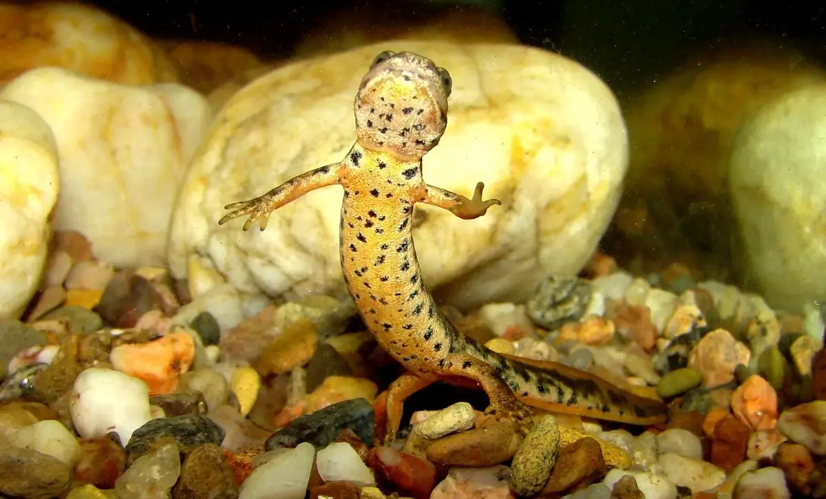 This close-up image reveals the unique and somewhat mysterious appearance of the Sardinian Brook Newt, a rare endemic amphibian species. Living in the heart of the Mediterranean on the island of Sardinia, they are a vibrant symbol of the pristine ecological environment of mountain streams. With specialized adaptations for strong currents, this newt typically hunts at night, contributing to natural balance. Their rainy season breeding capability is also an interesting characteristic. More importantly, the Sardinian Brook Newt is considered a water pollution indicator; its presence confirms freshwater quality. Conserving this amphibian means protecting the entire fragile freshwater ecosystem, a critical task to maintain biodiversity.#Sardinian #BrookNewt #EndemicAmphibian #NatureConservation #Biodiversity #Mediterranean