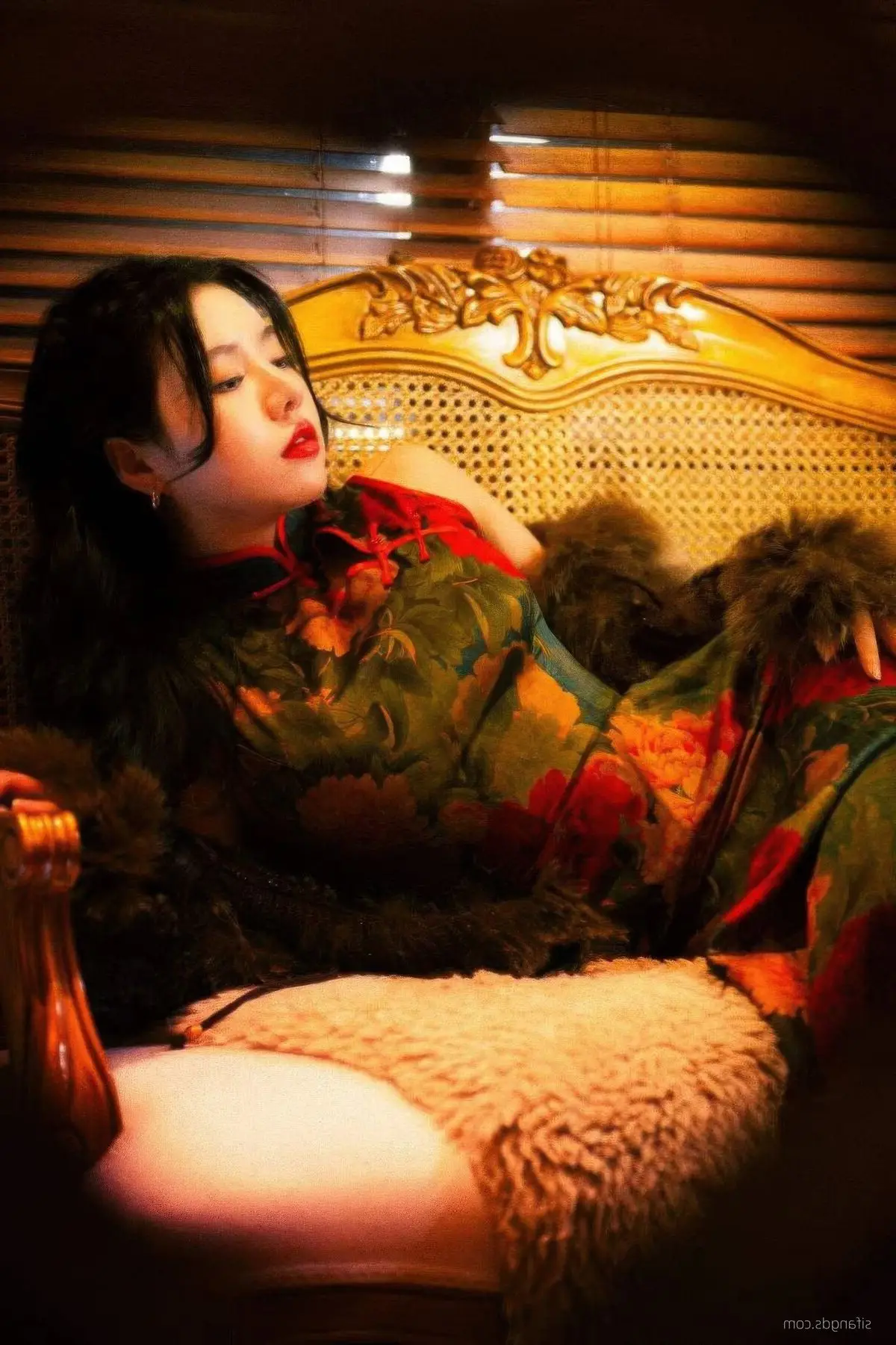 In this Sha Le Mei Xiao Cang Lao Shi Part02 photo collection, the model exudes an irresistible alluring beauty and elegant demeanor. She reclines gracefully on a classic sofa, her eyes subtly closed in contemplation, creating a mysterious and captivating moment. Her intricately patterned, warm-toned attire, paired with striking red lipstick, accentuates her sophisticated Asian charm. The soft, golden lighting further enhances the romantic and classic ambiance of the image. This piece is part of a special collection, revealing unique insights into Sha Le Mei Xiao Cang Lao Shi's style and charisma, sure to enchant viewers.#ShaLeMei #XiaoCang #LaoShi #AlluringBeauty #ElegantDemeanor #SpecialCollection #AsianModel