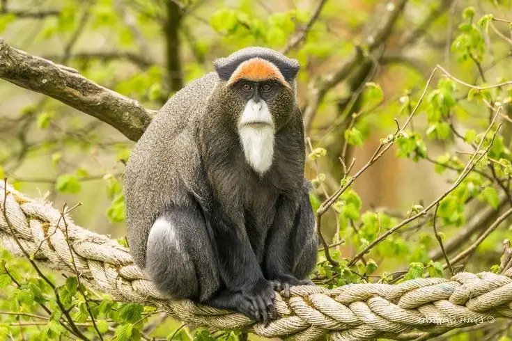 Get a close look at the De Brazza's monkey Cercopithecus neglectus one of Africa's most unique and mysterious primates. With its distinctive white beard and striking appearance it captures every gaze. De Brazza's monkeys typically inhabit riverine dense forests where they display special biological habits. They have a diverse diet and live in small social groups. However this species faces a severe extinction risk due to deforestation and habitat loss. Protecting these wonderful creatures is crucial to maintaining Africa's rich biodiversity.#DeBrazzasMonkey #AfricanPrimates #WildlifeConservation #UniqueAnimals #AfricaWildlife