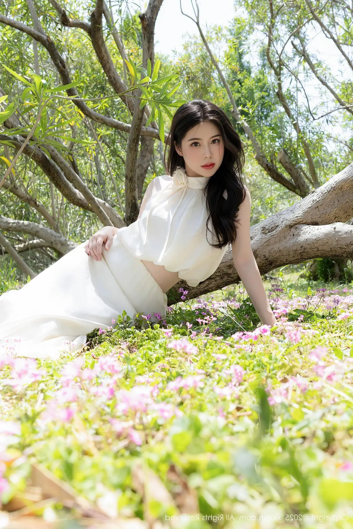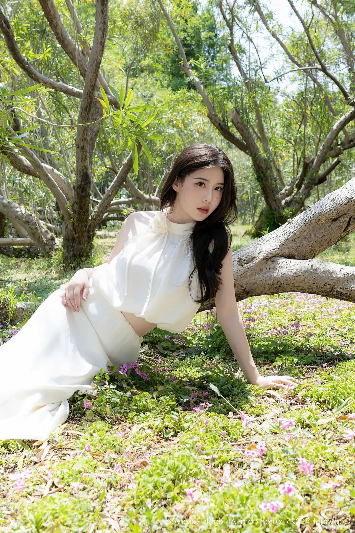 The XiuRen No.10485 photo collection showcases the serene beauty of model Bai Ru Xue Abby amidst a refreshing natural setting. Dressed in a pristine white gown, she poses gracefully beside a tree trunk on a lush green lawn. Soft sunlight filtering through the leaves highlights her natural pure charm. Each moment radiates tranquility and femininity offering viewers a sense of peace. Bai Ru Xue Abby demonstrates elegance and style blending perfectly into the vibrant outdoor space. This is a stunning photo series capturing memorable moments of her.#BaiRu #XueAbby #XiuRen #NatureBeauty #WhiteDress #Model