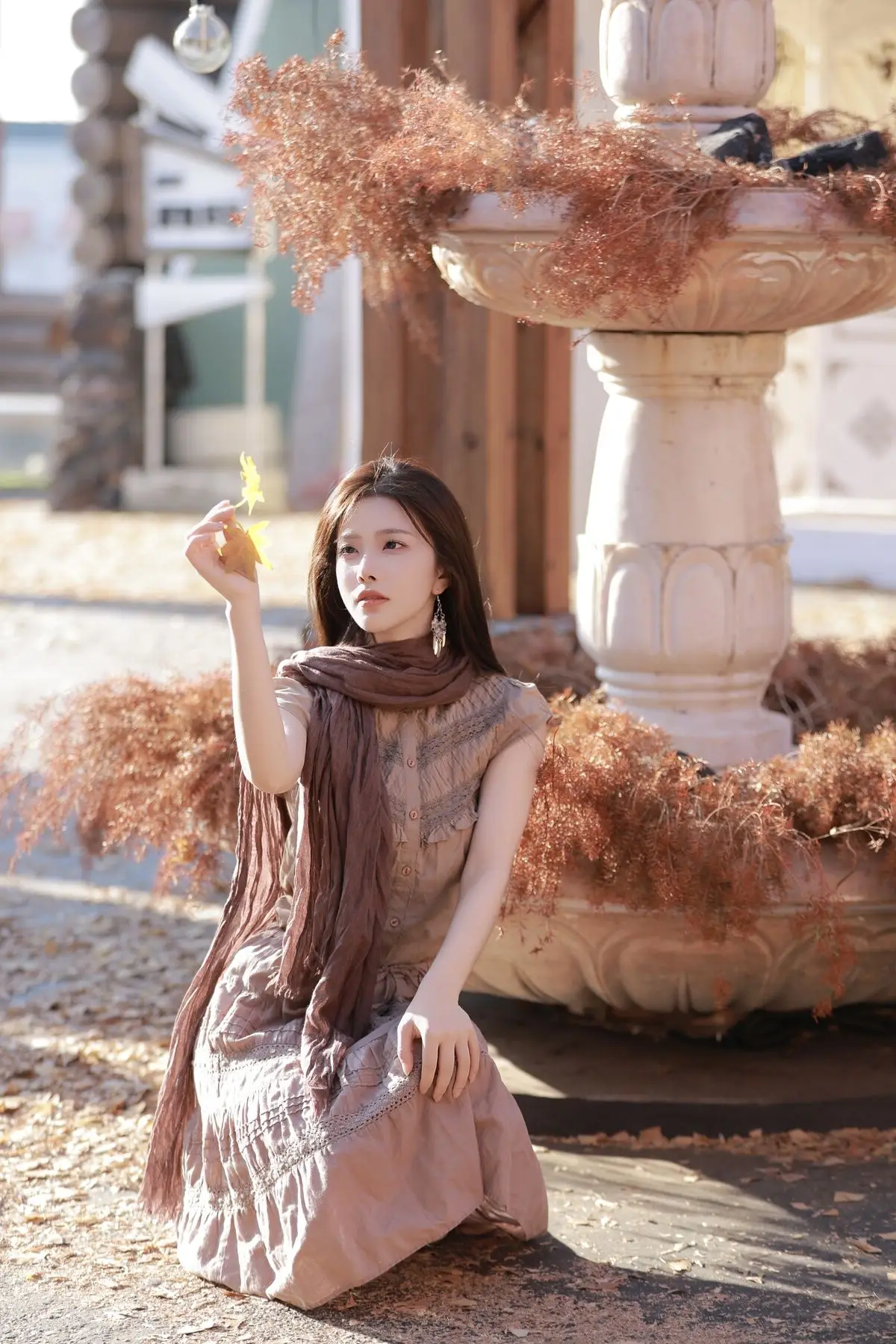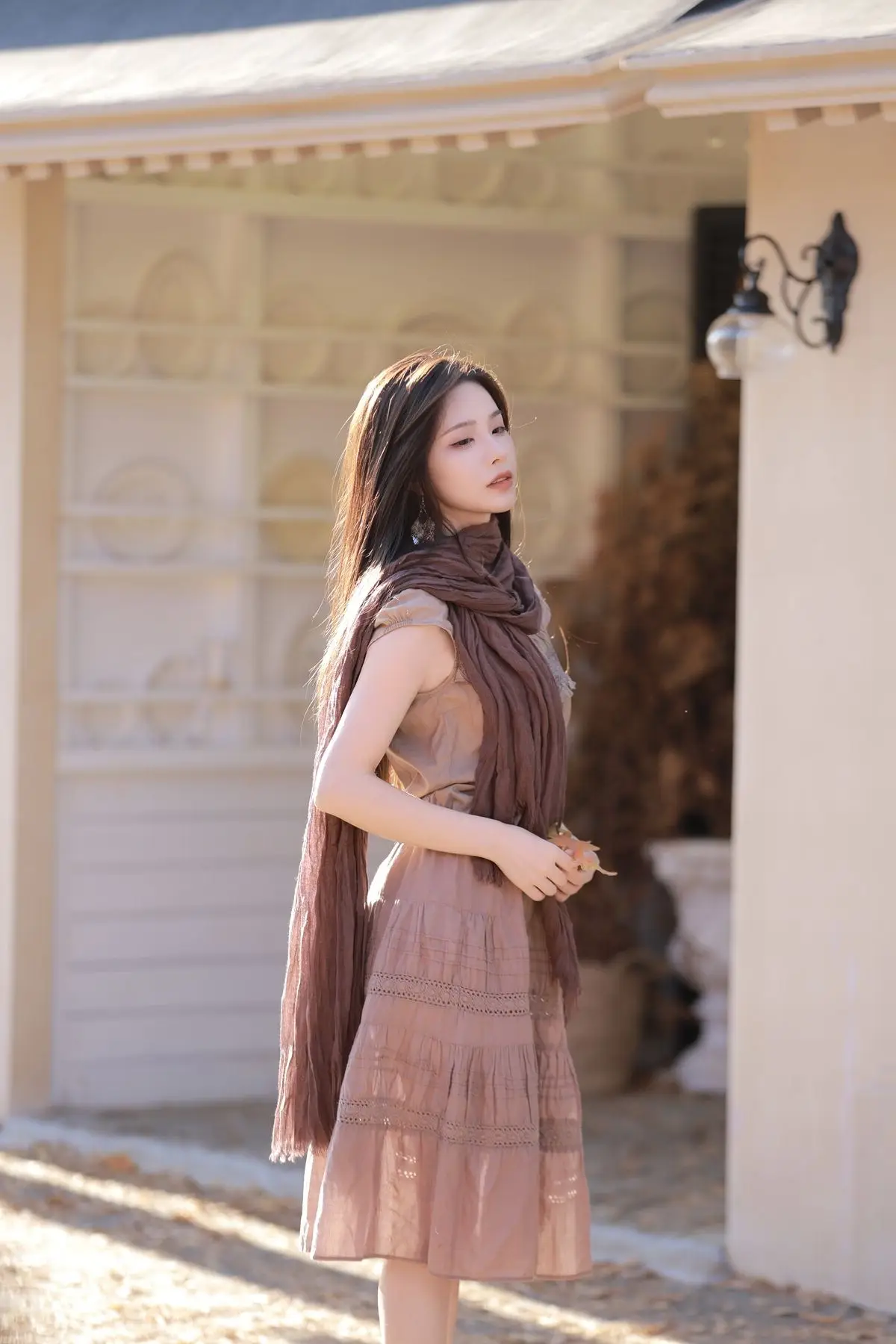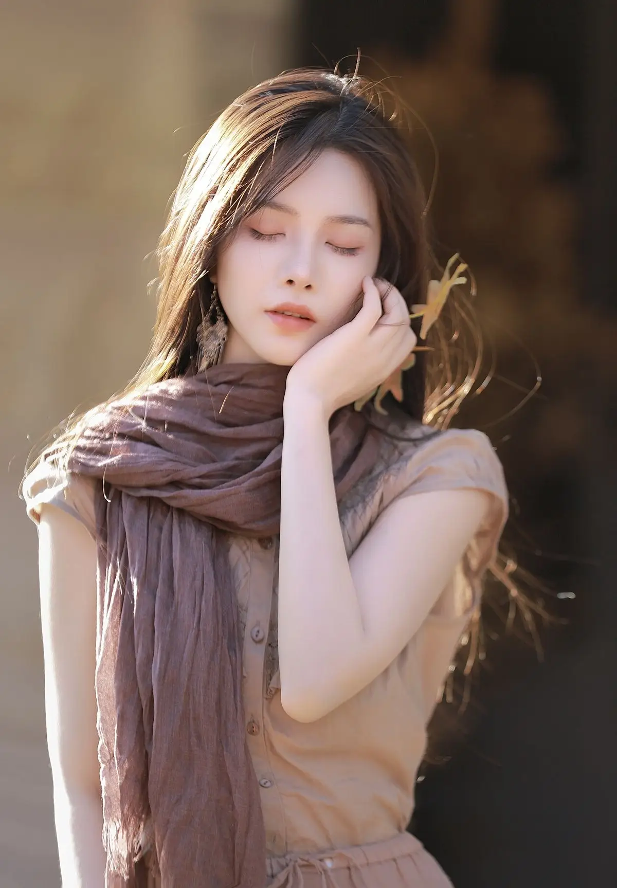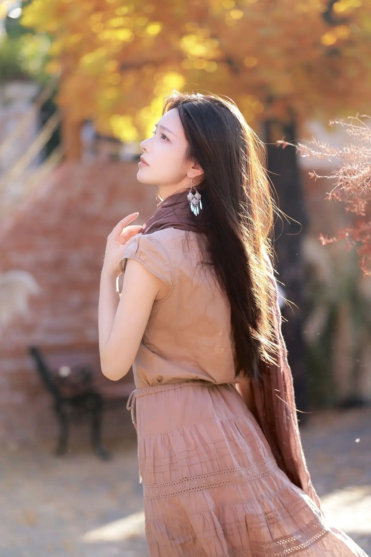 This exquisite photograph captures a tender moment with model Liang Chen, gently cradling her beloved cat. Her serene expression and distant gaze, combined with the innocent presence of the feline, create a scene brimming with emotion and tranquility. The vibrant reddish-orange foliage in the blurred background, characteristic of autumn, beautifully complements Liang Chen's natural elegance. This intimate moment not only showcases the bond between human and animal but also evokes the soft, peaceful ambiance of an autumn afternoon. Part of the YiTuYu Vol.8696 collection, this image exemplifies how photographic art conveys poetic narratives of beauty and feeling. Discover more captivating visuals of Liang Chen in this remarkable series.#LiangChen #YiTuYu #AutumnVibes #CatLover #ModelPortrait