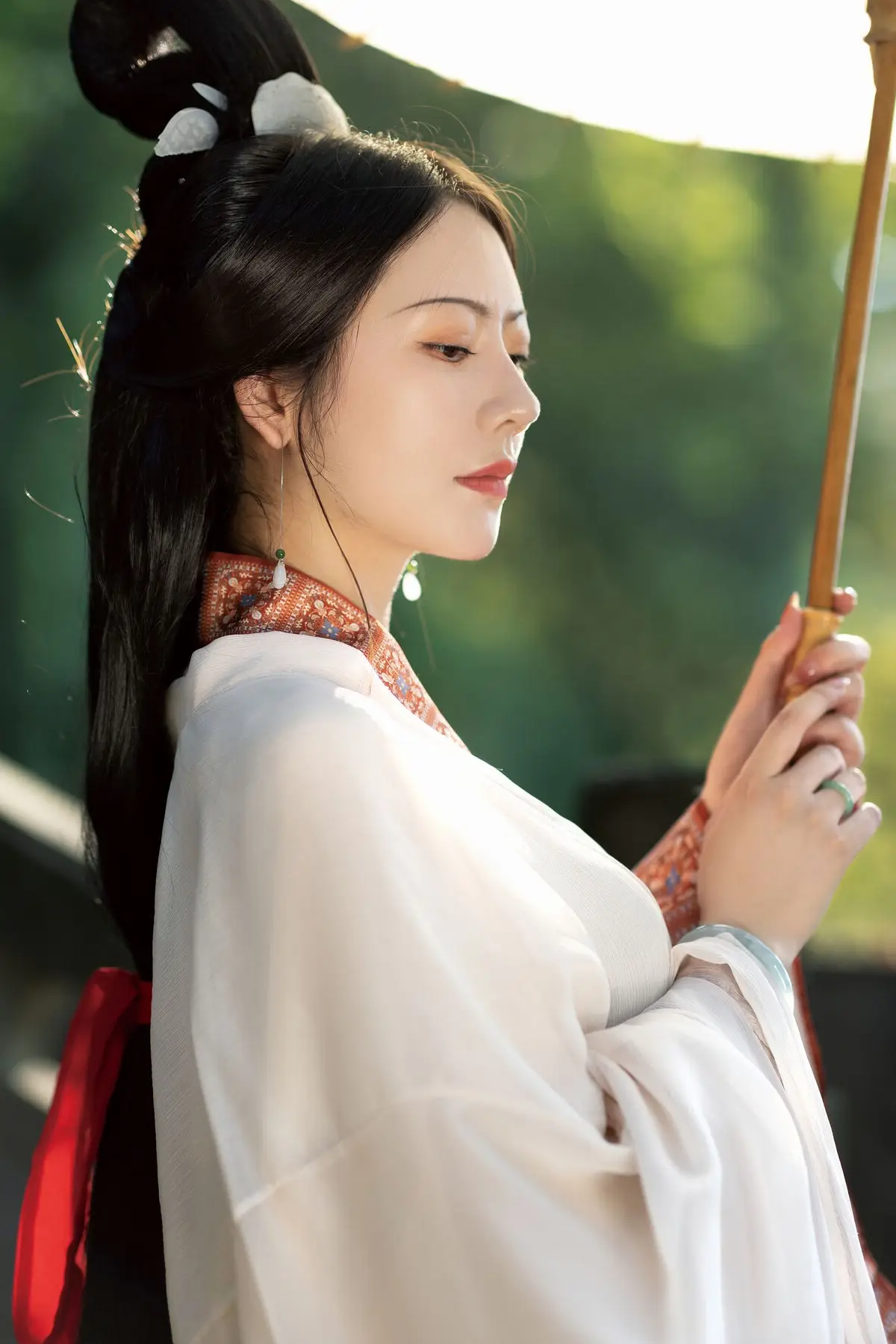 This captivating image features Yan Ru Yu adorned in exquisite traditional Hanfu, embodying the grace and timeless elegance of ancient Chinese beauty. Her elaborate hairstyle and meticulously crafted Warring States period inspired robe exude an aura of mystery and nobility. Every intricate detail, from the embroidered sleeves to her contemplative pose, narrates a rich tale of culture and art. YiTuYu Vol.8693 offers a profound glimpse into the harmonious blend of history and style, inviting viewers to delve into the depths of East Asian artistic language. This collection transcends mere clothing, presenting a powerful symbol of cultural heritage.#Hanfu #YanRuYu #AncientBeauty #YiTuYu #TraditionalChineseDress
