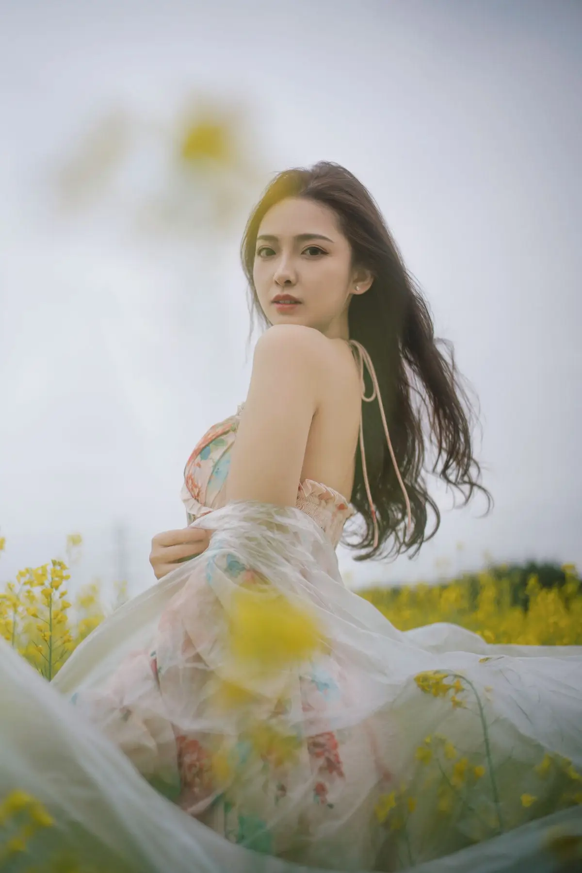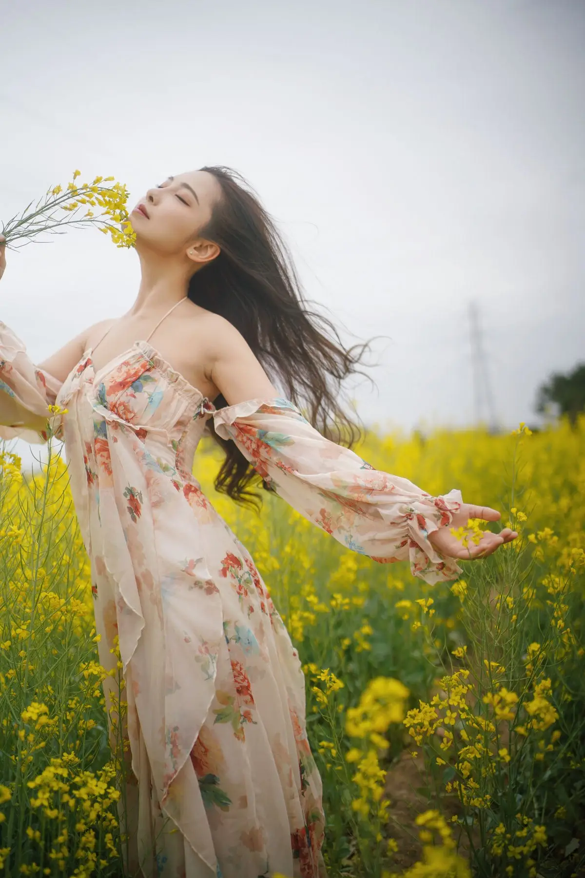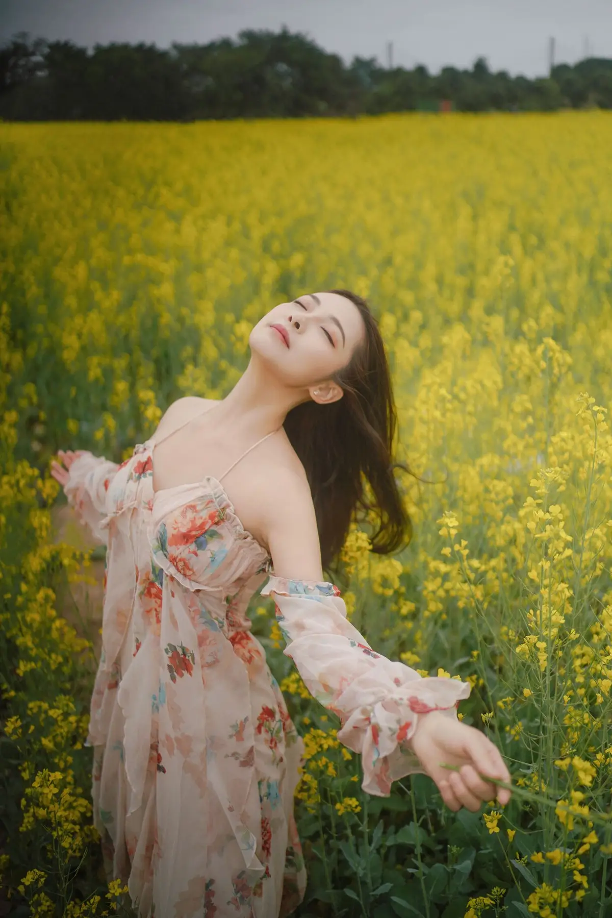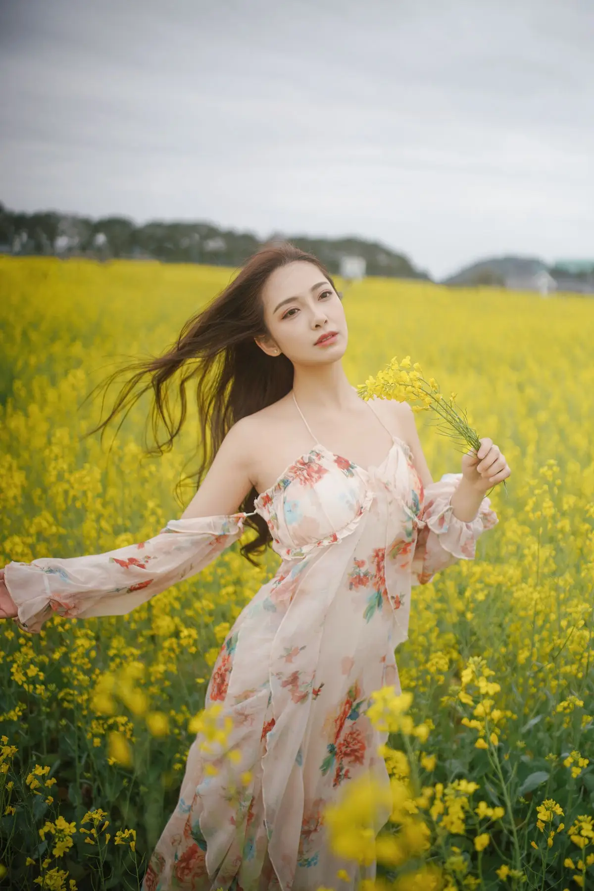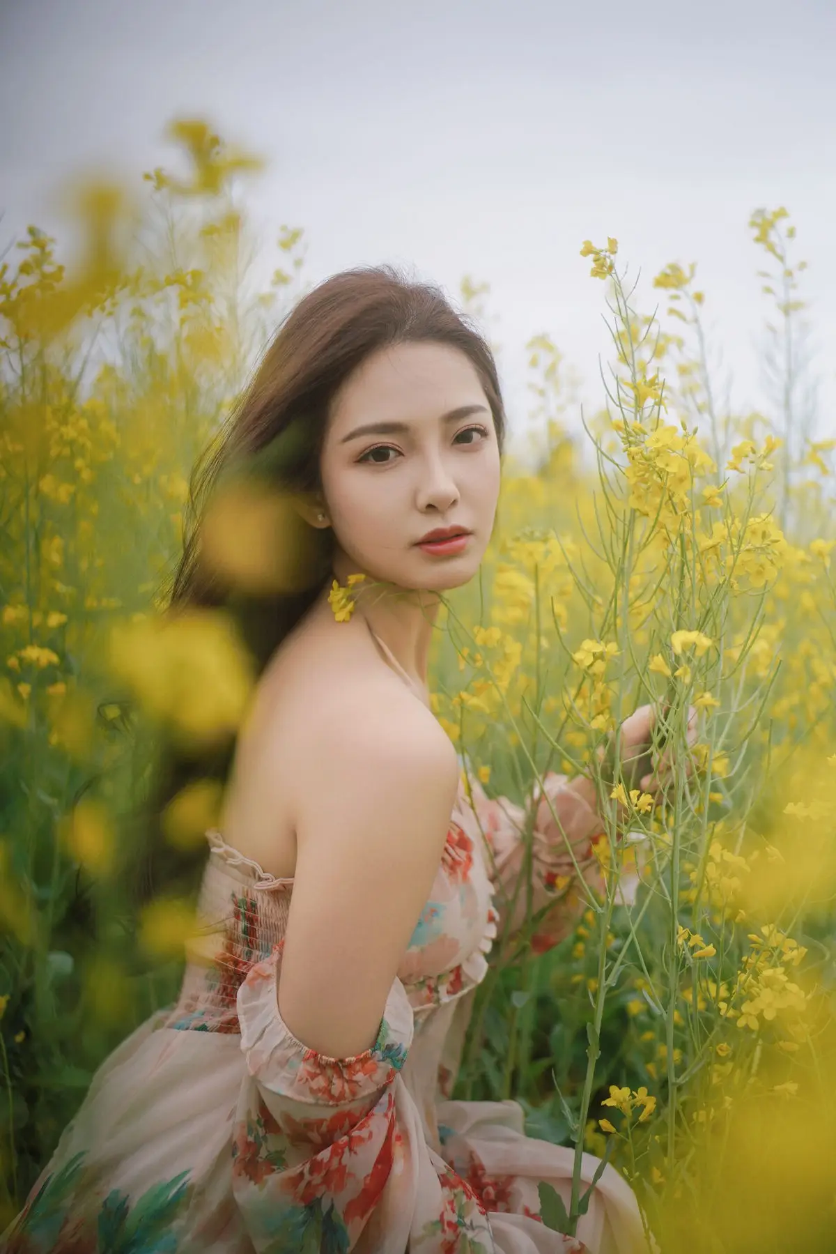 In the YiTuYu Art Language Vol.8672 photo series model Ying Er YY captivates amidst a vast field of vibrant golden rapeseed flowers. Her delicate beauty blends seamlessly with the poetic natural scenery creating a vivid and emotional tableau. The flowing floral dress gently sways in the breeze enhancing Ying Er YYs graceful and feminine charm. Each moment is captured with exquisite detail highlighting her purity and radiance. This collection represents a wonderful fusion of photographic art and natural beauty offering an unforgettable and impressive visual experience.#YingErYY #GoldenFlowerField #YiTuYu #ModelPhotography #FloralDress