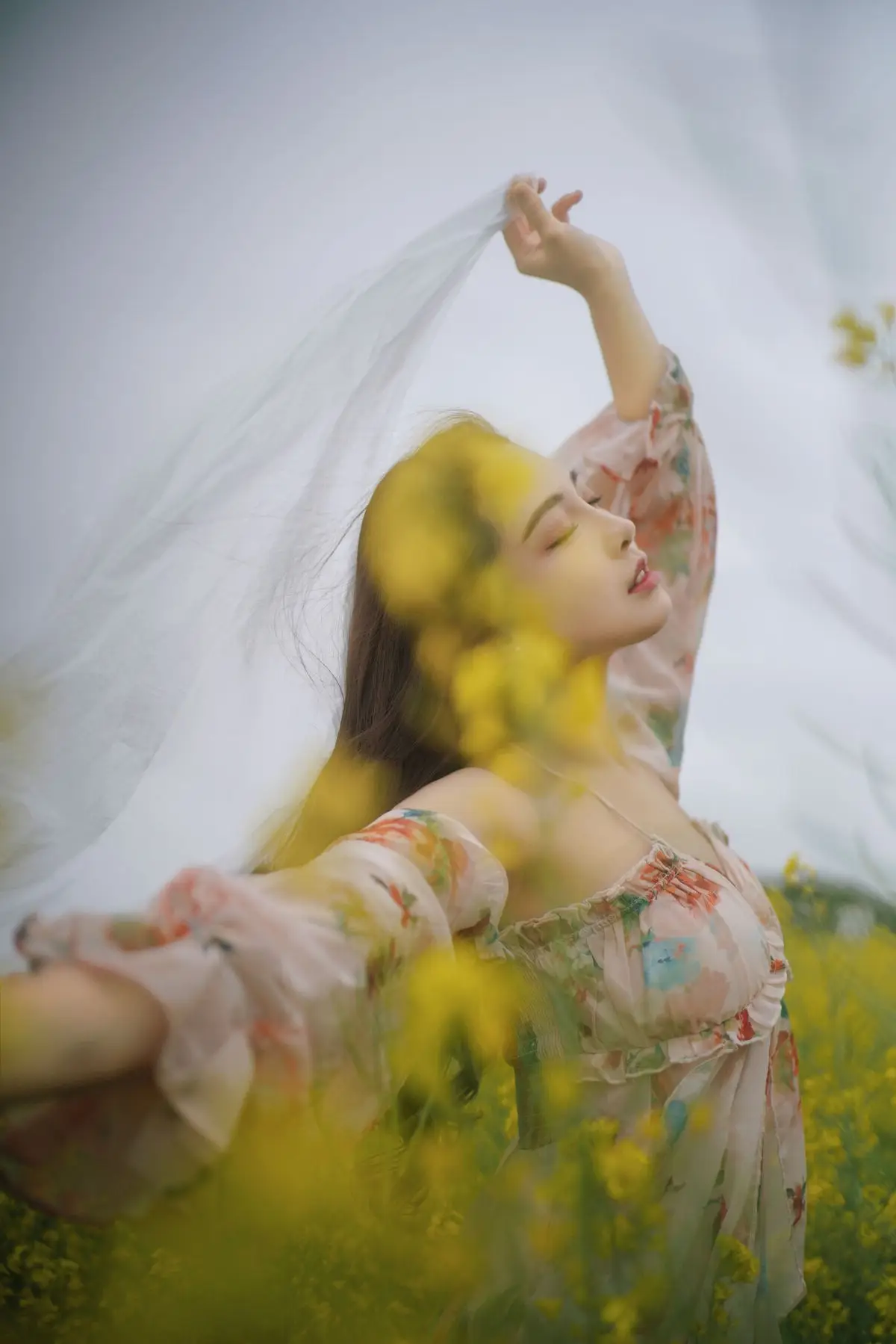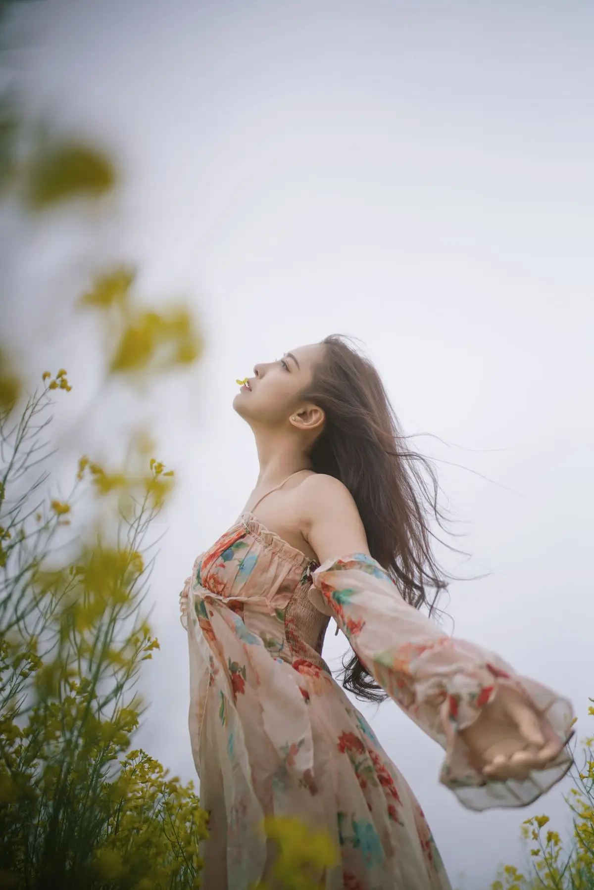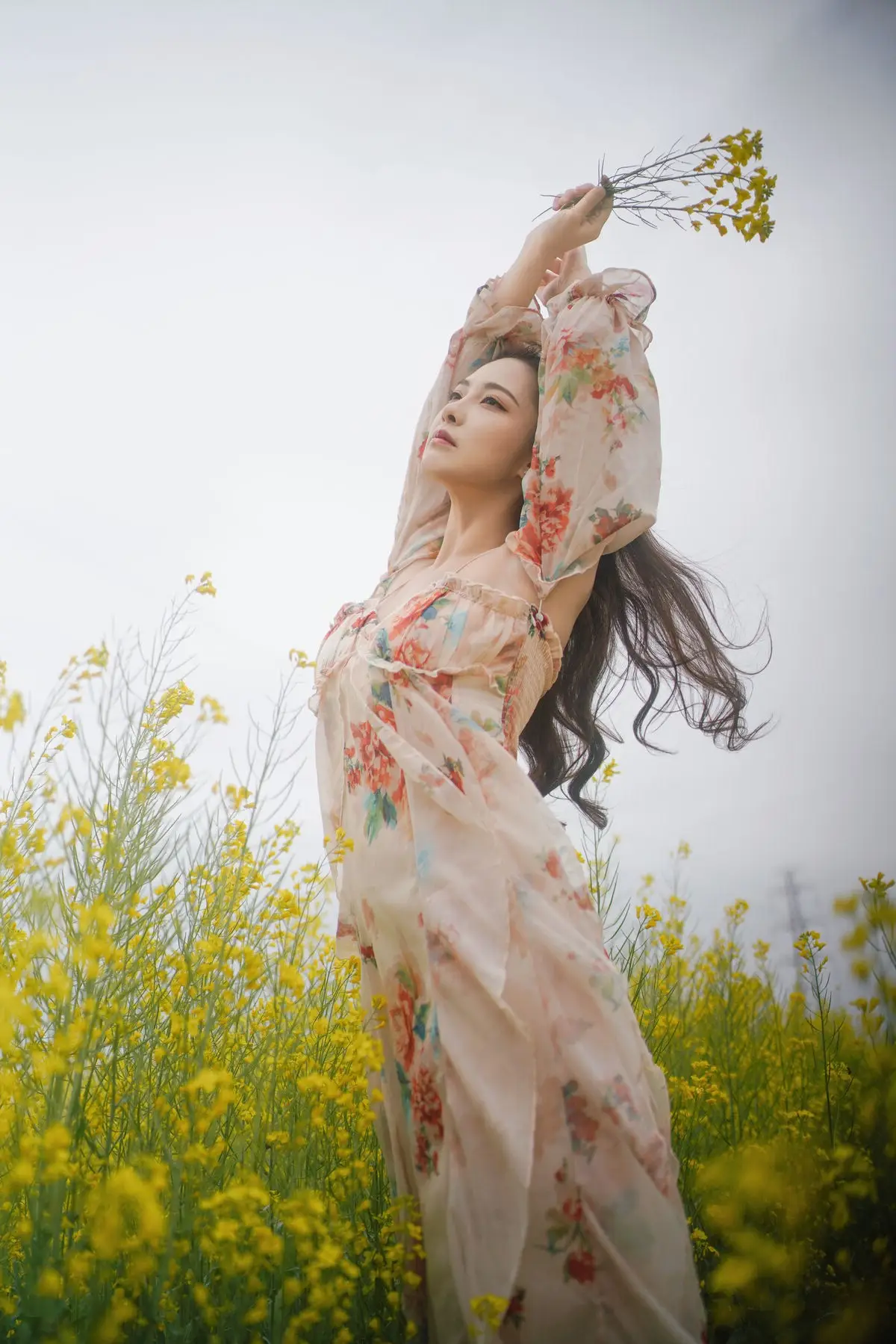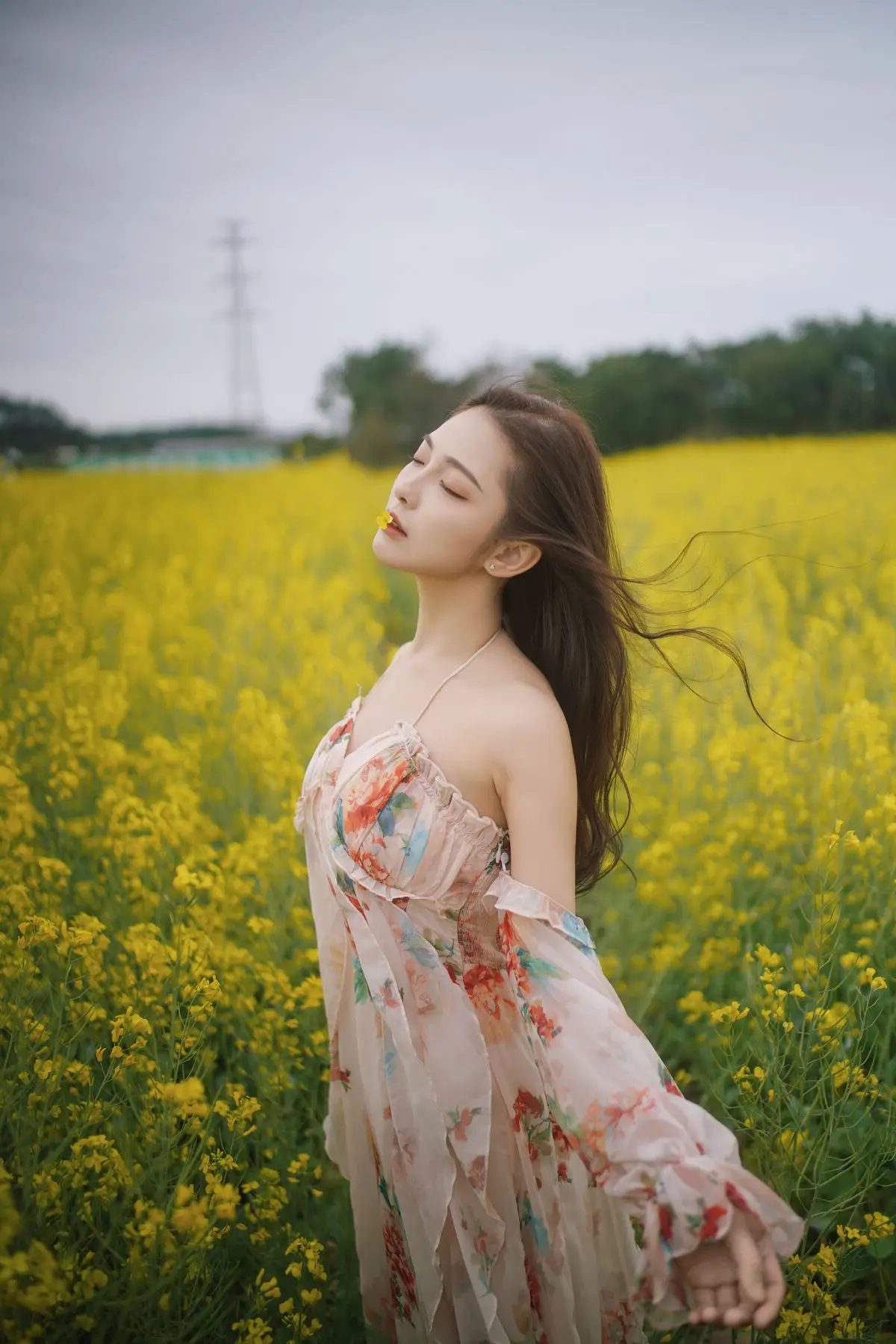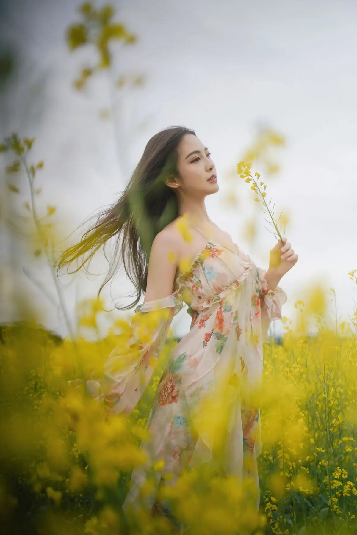 In the YiTuYu Art Language Vol.8672 photo series model Ying Er YY captivates amidst a vast field of vibrant golden rapeseed flowers. Her delicate beauty blends seamlessly with the poetic natural scenery creating a vivid and emotional tableau. The flowing floral dress gently sways in the breeze enhancing Ying Er YYs graceful and feminine charm. Each moment is captured with exquisite detail highlighting her purity and radiance. This collection represents a wonderful fusion of photographic art and natural beauty offering an unforgettable and impressive visual experience.#YingErYY #GoldenFlowerField #YiTuYu #ModelPhotography #FloralDress