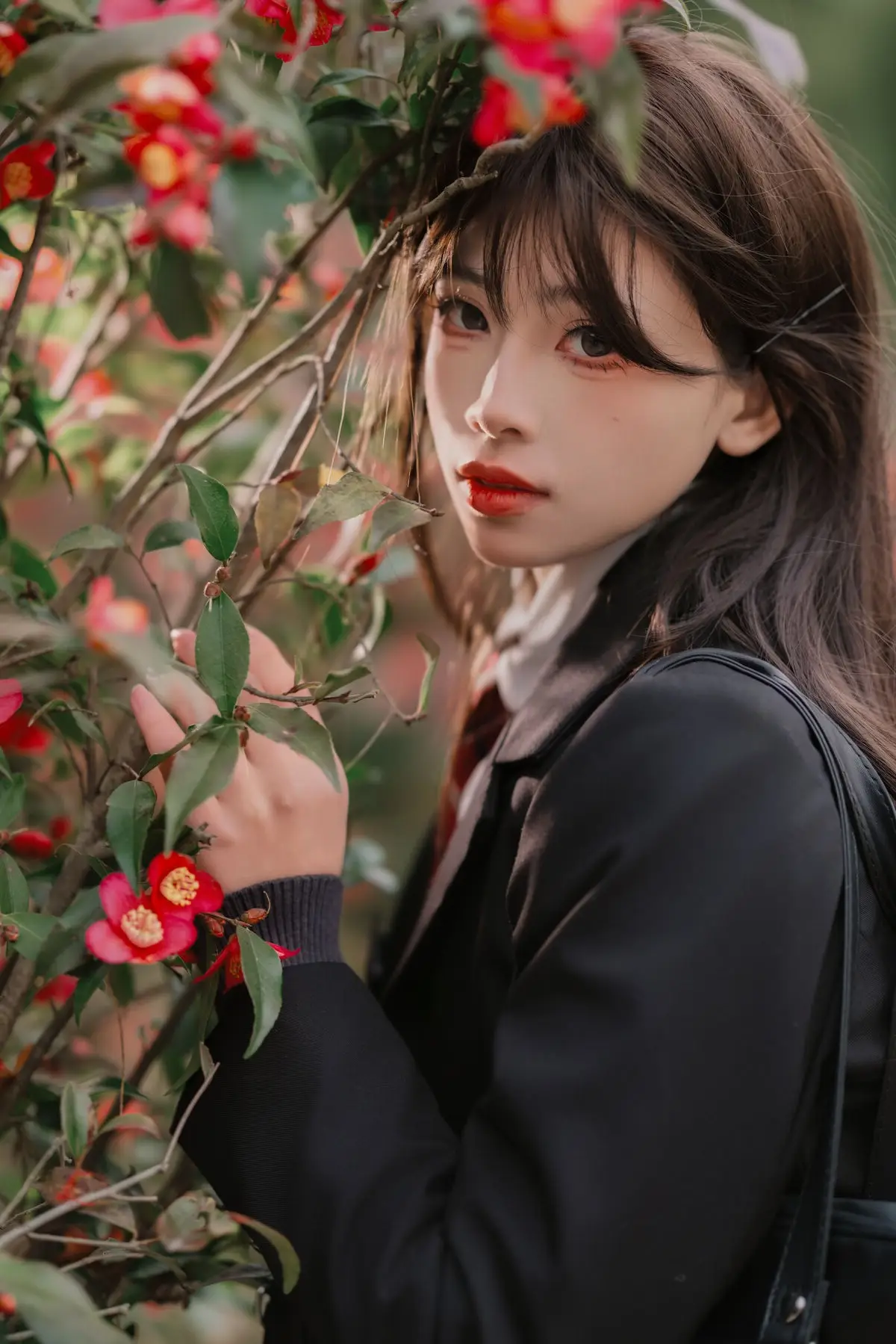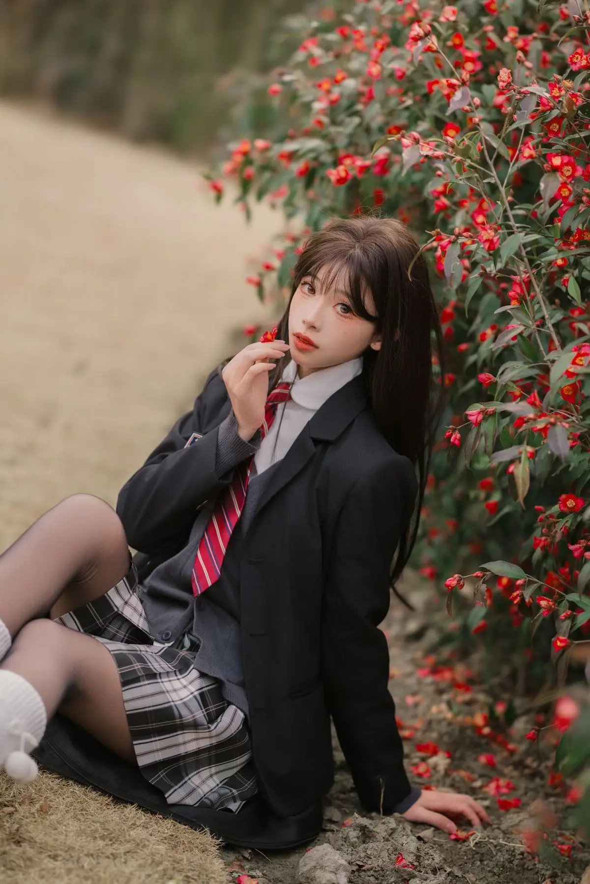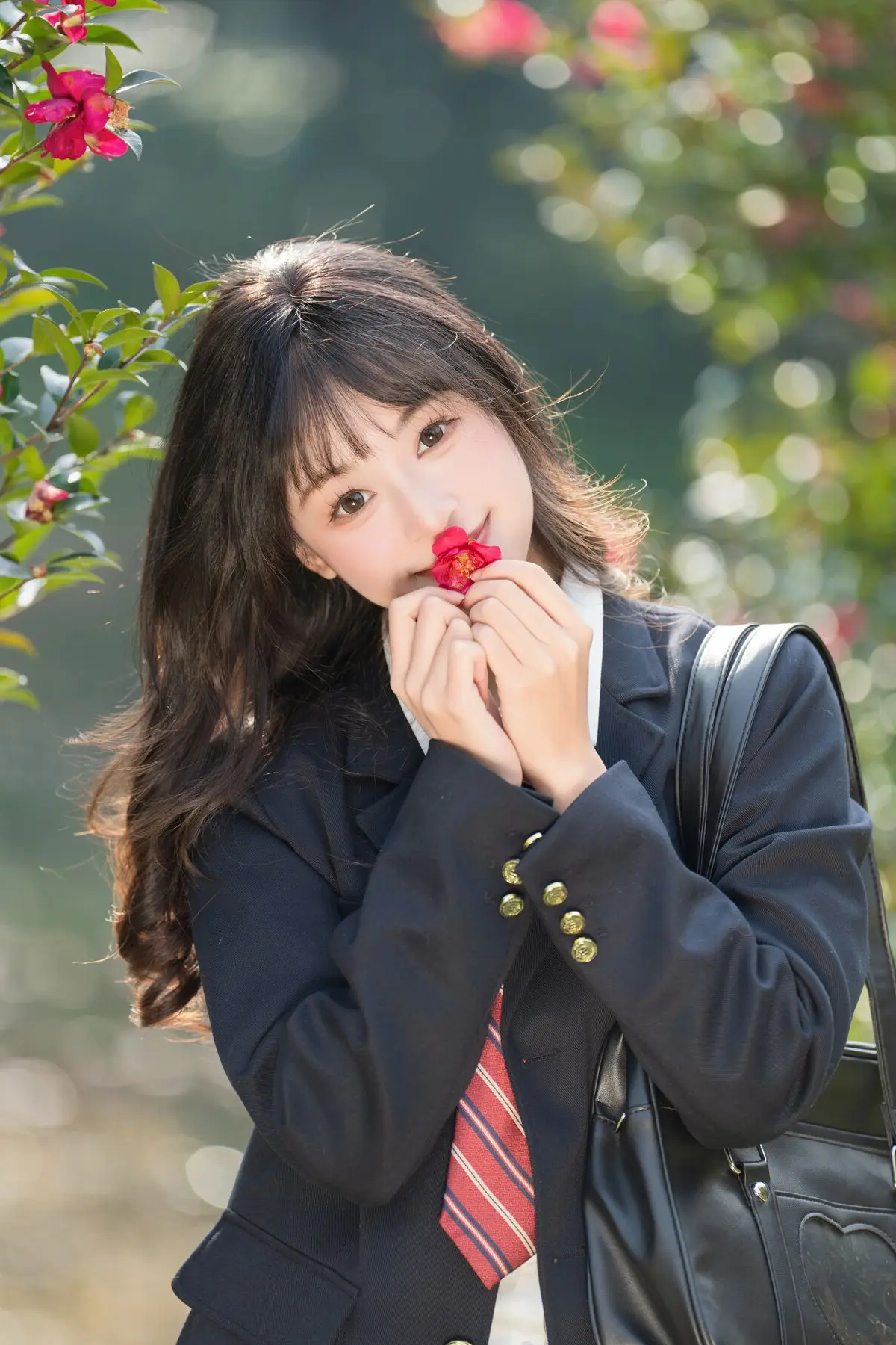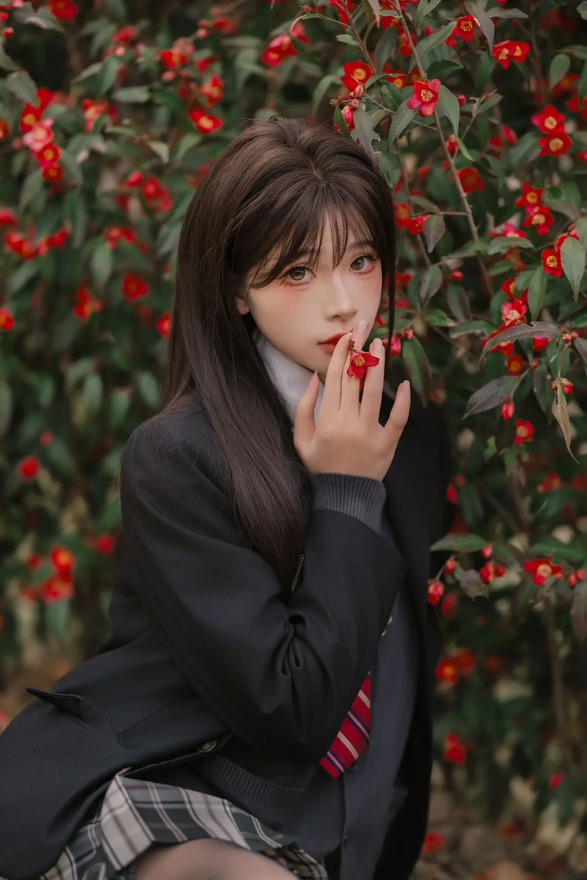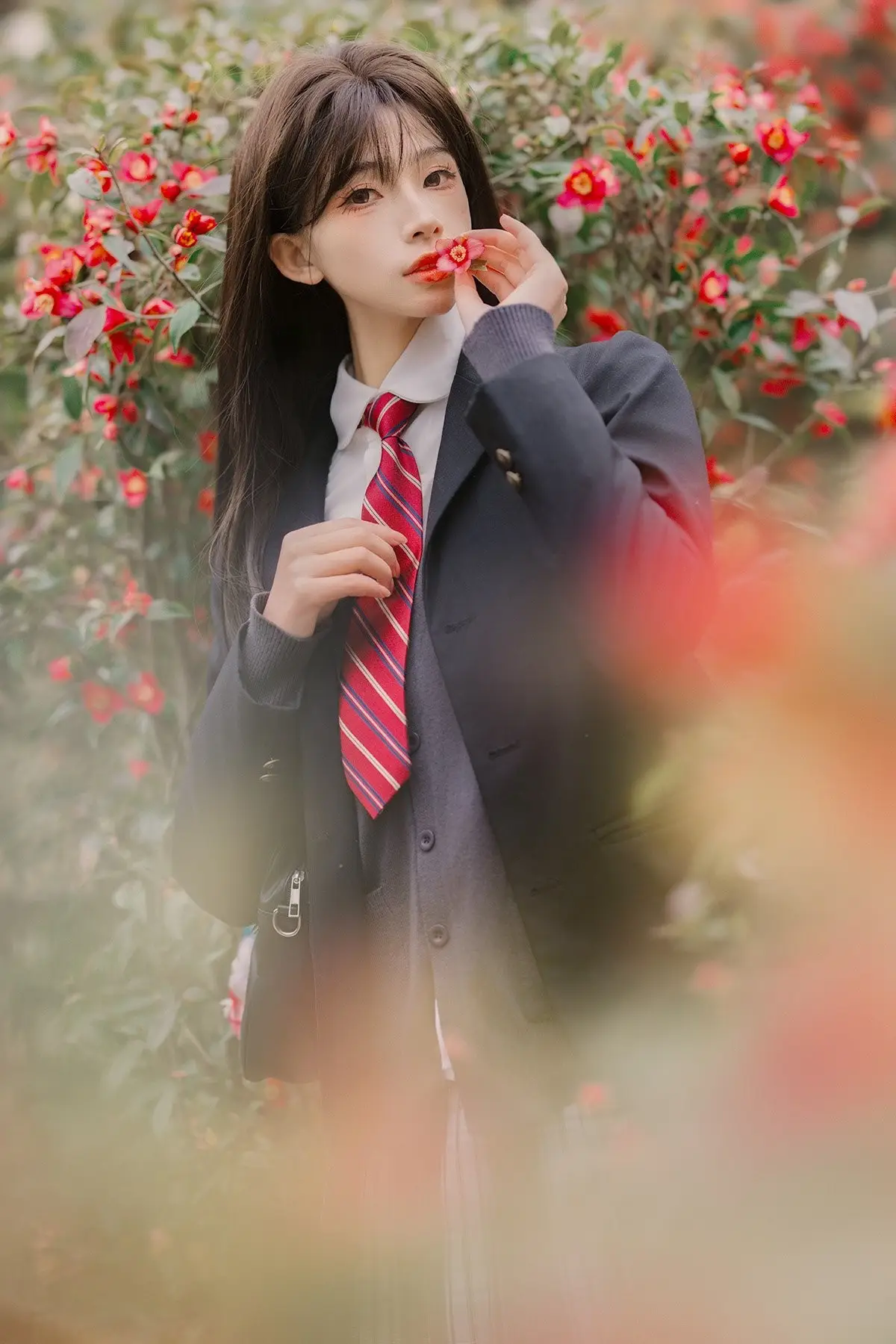 This exquisite photograph captures Xian Nu Juan in a poetic moment, exuding delicate and gentle beauty. The young model, with her long flowing hair and mesmerizing eyes, is adorned in a pristine school uniform, creating an image that is both innocent and captivating. Set against a lush backdrop of green leaves and vibrant red flowers, she gracefully touches a bloom, seemingly merging with the essence of nature. This YiTuYu Vol.8695 collection is not merely a photographic artwork but a narrative of youth, elegance, and hidden charm, guaranteed to enchant viewers and leave a lasting impression.#XianNuJuan #YiTuYu #SchoolGirlStyle #YouthfulBeauty #ArtPhotography