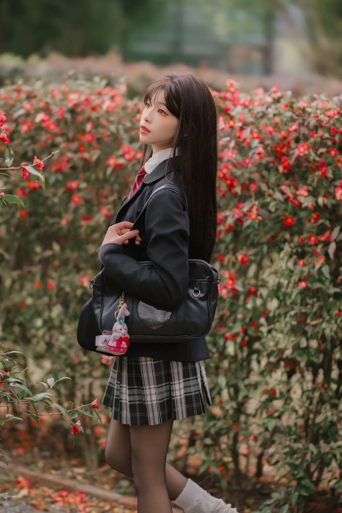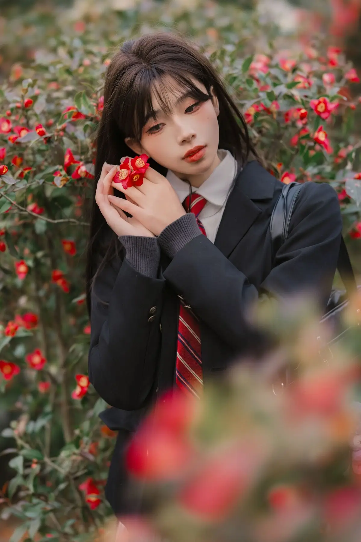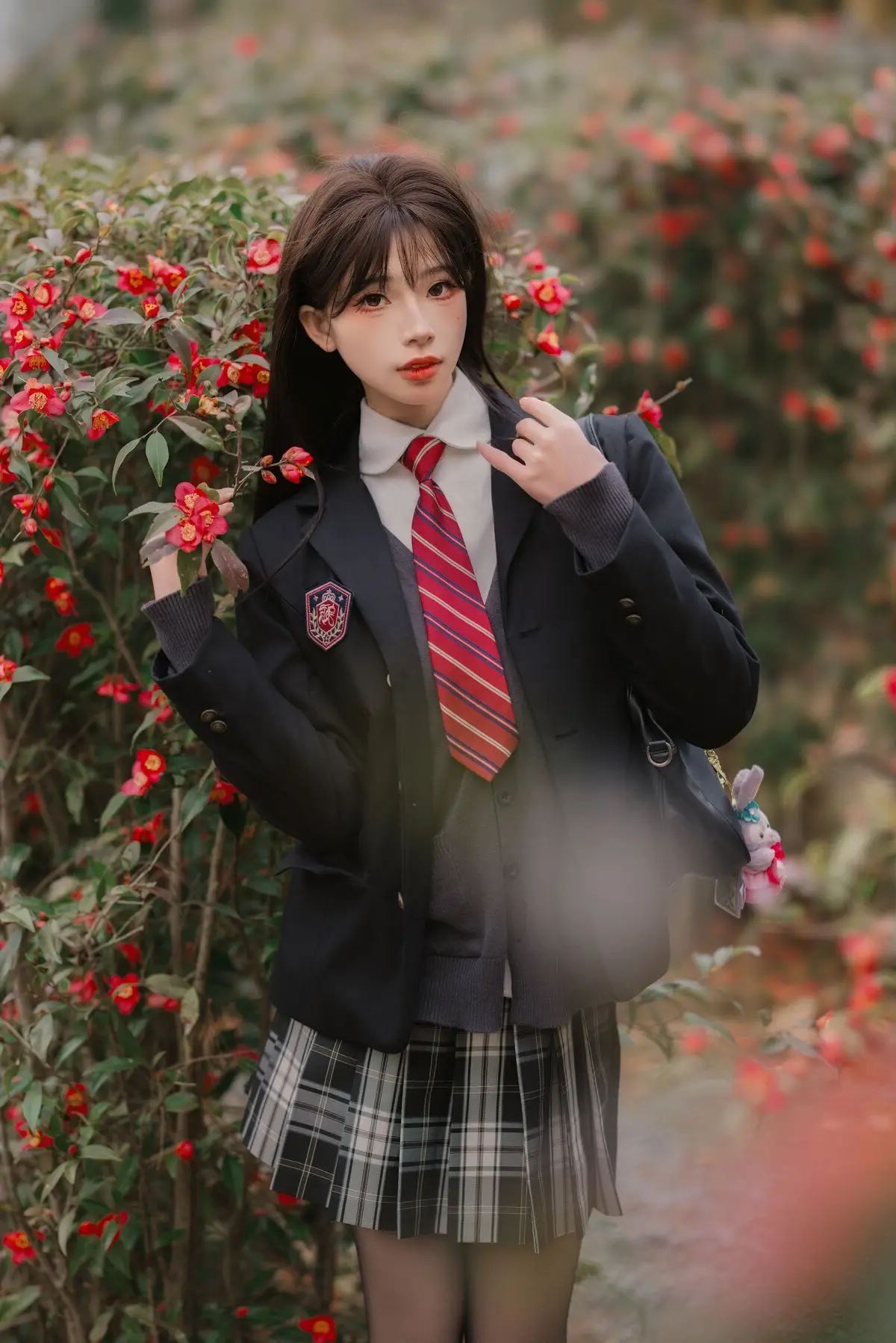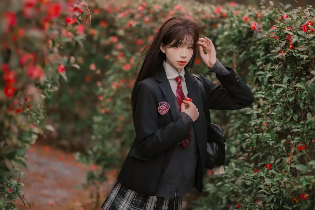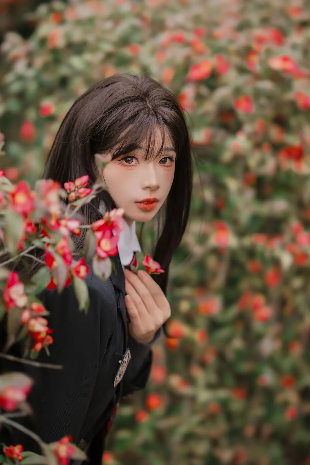 This exquisite photograph captures Xian Nu Juan in a poetic moment, exuding delicate and gentle beauty. The young model, with her long flowing hair and mesmerizing eyes, is adorned in a pristine school uniform, creating an image that is both innocent and captivating. Set against a lush backdrop of green leaves and vibrant red flowers, she gracefully touches a bloom, seemingly merging with the essence of nature. This YiTuYu Vol.8695 collection is not merely a photographic artwork but a narrative of youth, elegance, and hidden charm, guaranteed to enchant viewers and leave a lasting impression.#XianNuJuan #YiTuYu #SchoolGirlStyle #YouthfulBeauty #ArtPhotography