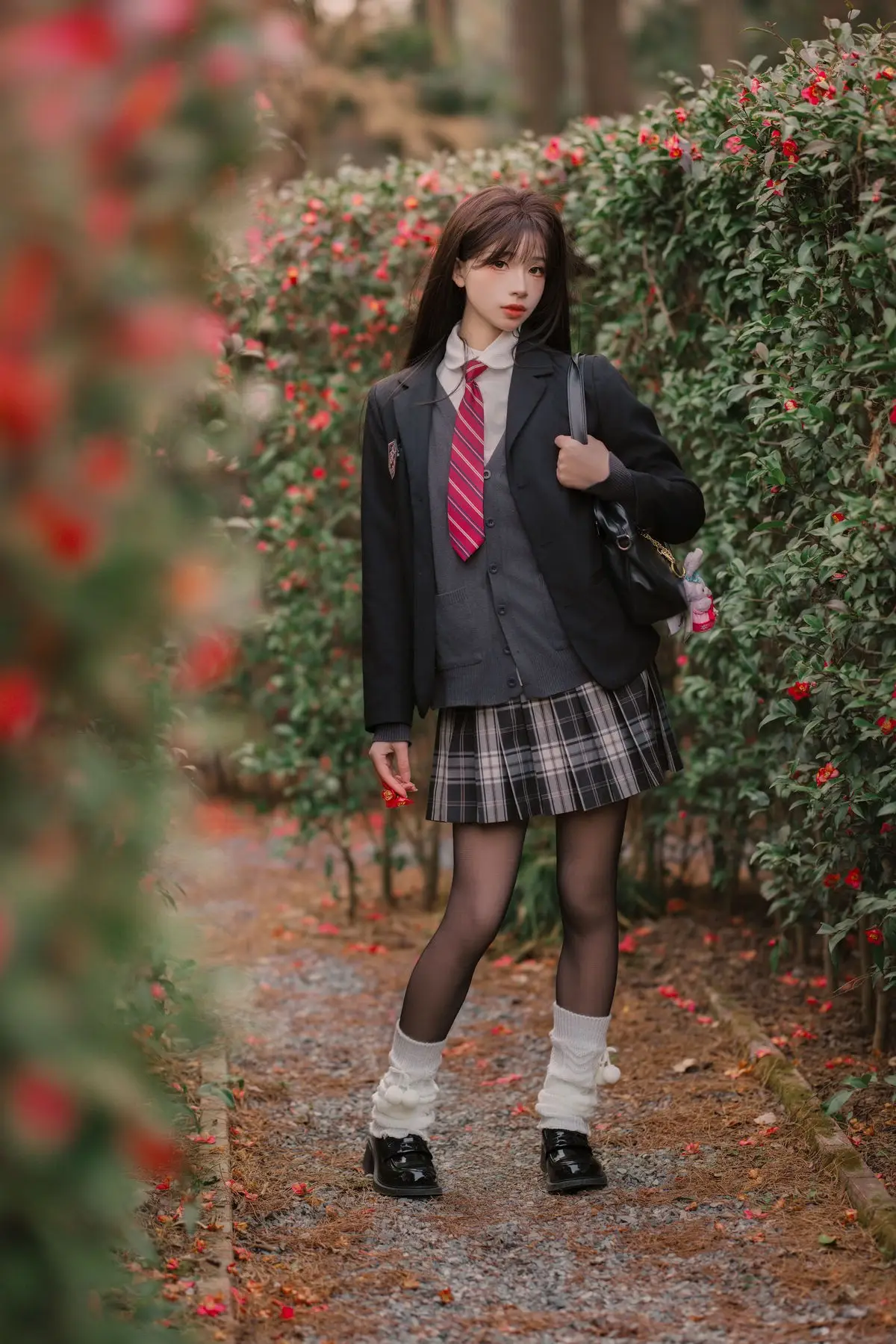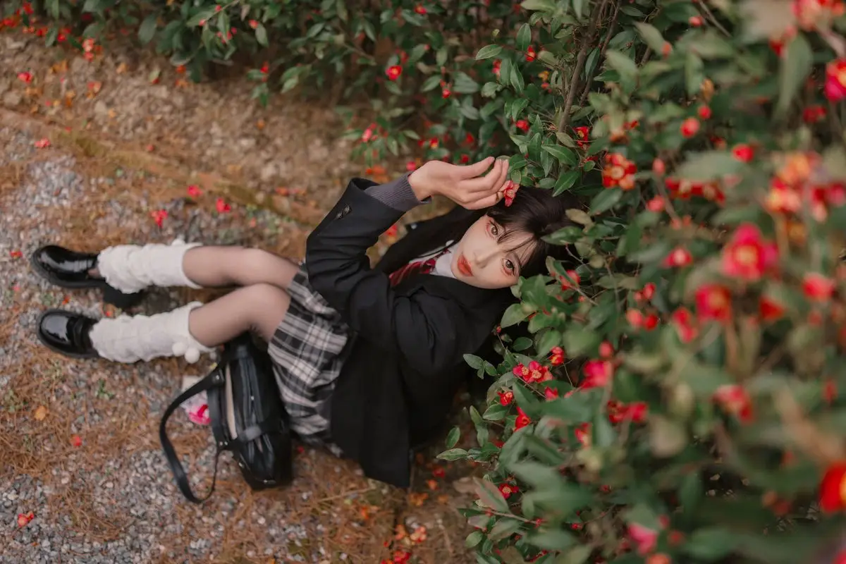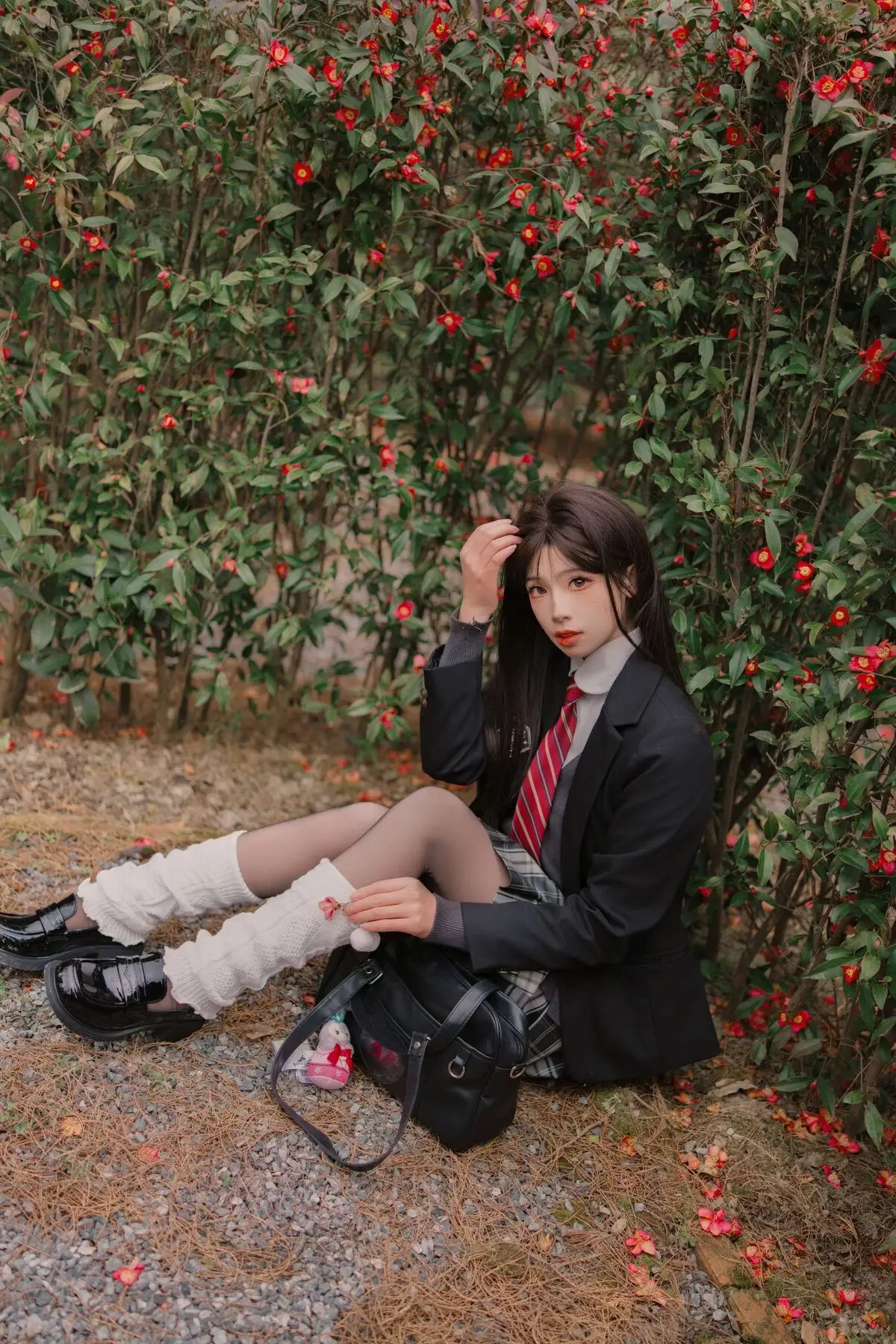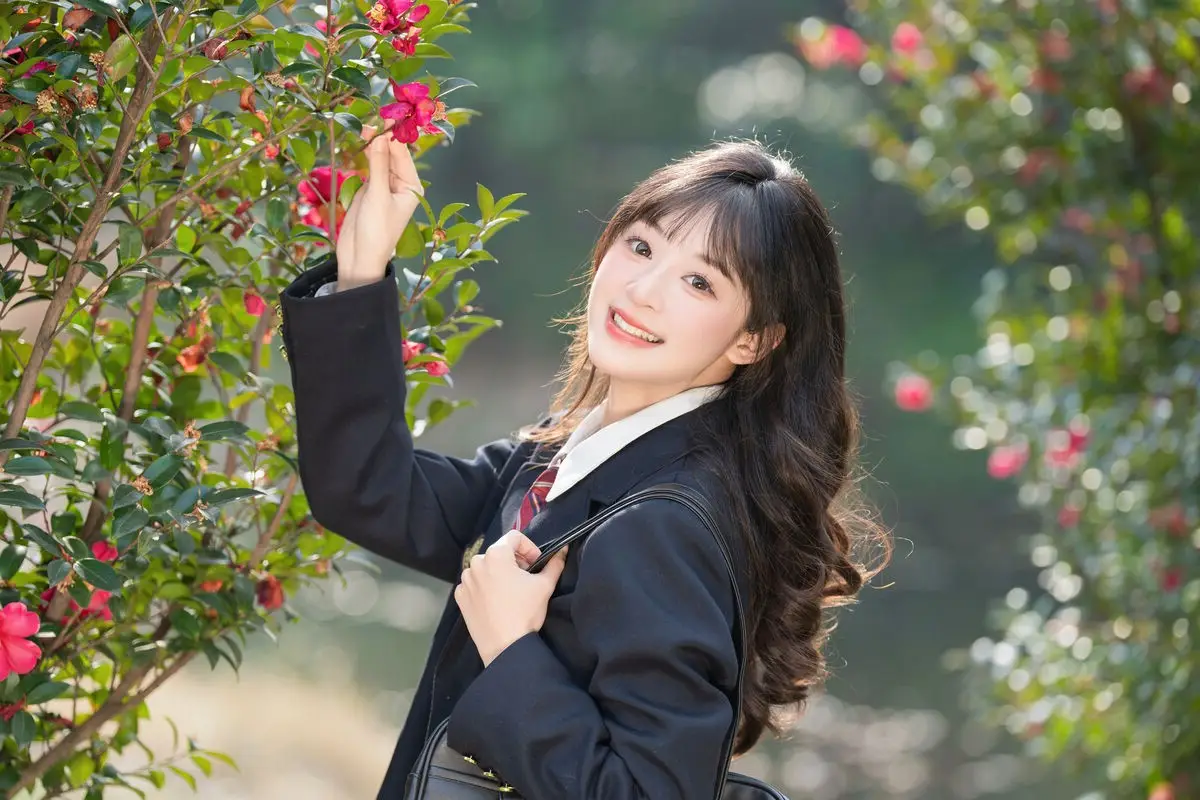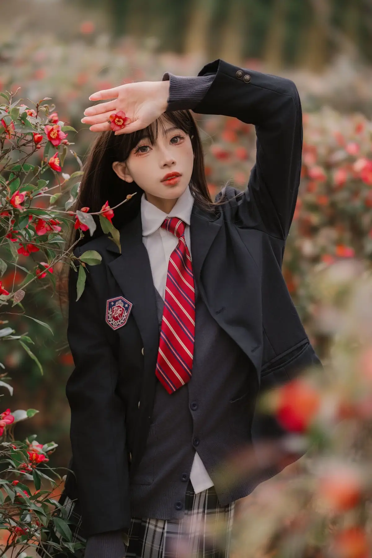 This exquisite photograph captures Xian Nu Juan in a poetic moment, exuding delicate and gentle beauty. The young model, with her long flowing hair and mesmerizing eyes, is adorned in a pristine school uniform, creating an image that is both innocent and captivating. Set against a lush backdrop of green leaves and vibrant red flowers, she gracefully touches a bloom, seemingly merging with the essence of nature. This YiTuYu Vol.8695 collection is not merely a photographic artwork but a narrative of youth, elegance, and hidden charm, guaranteed to enchant viewers and leave a lasting impression.#XianNuJuan #YiTuYu #SchoolGirlStyle #YouthfulBeauty #ArtPhotography