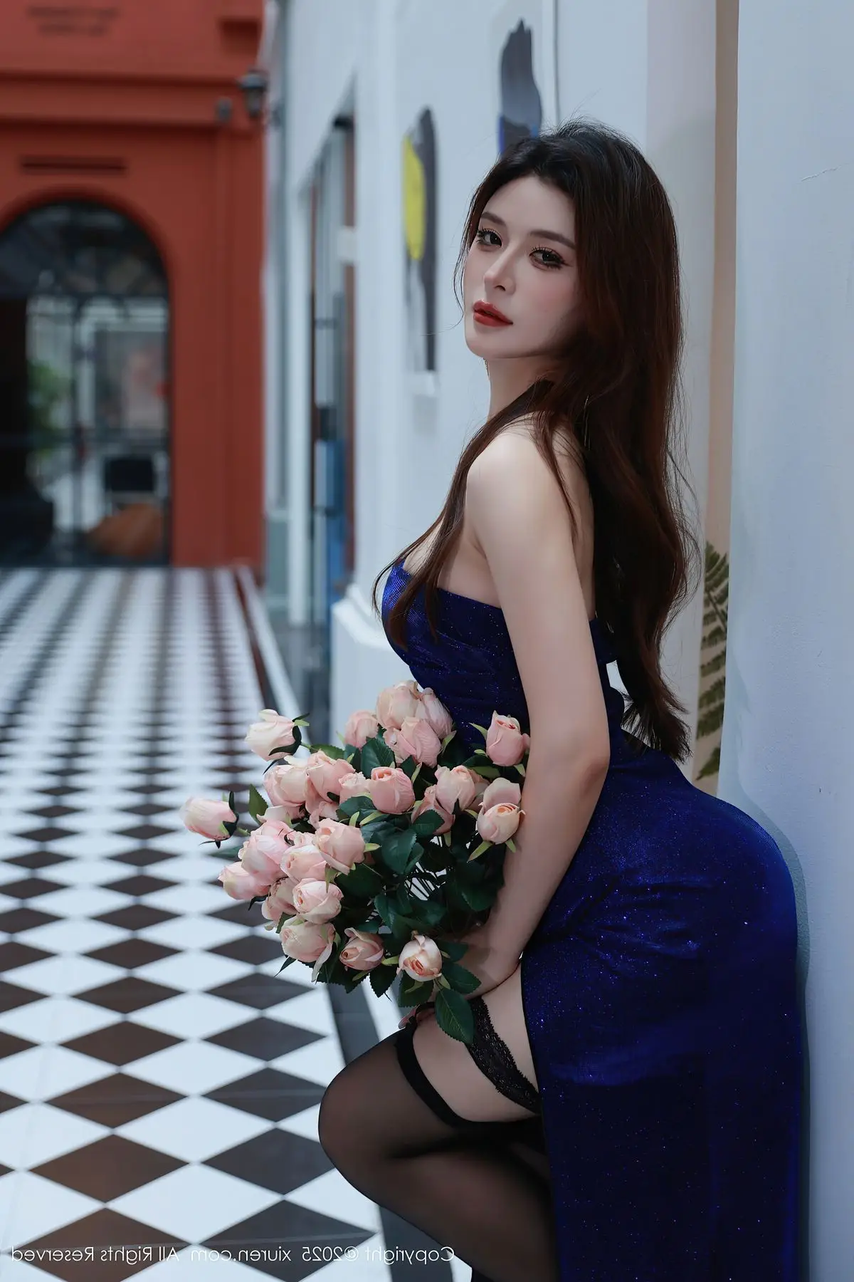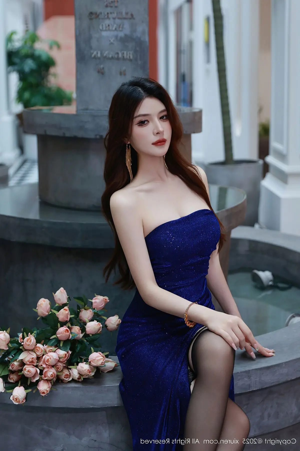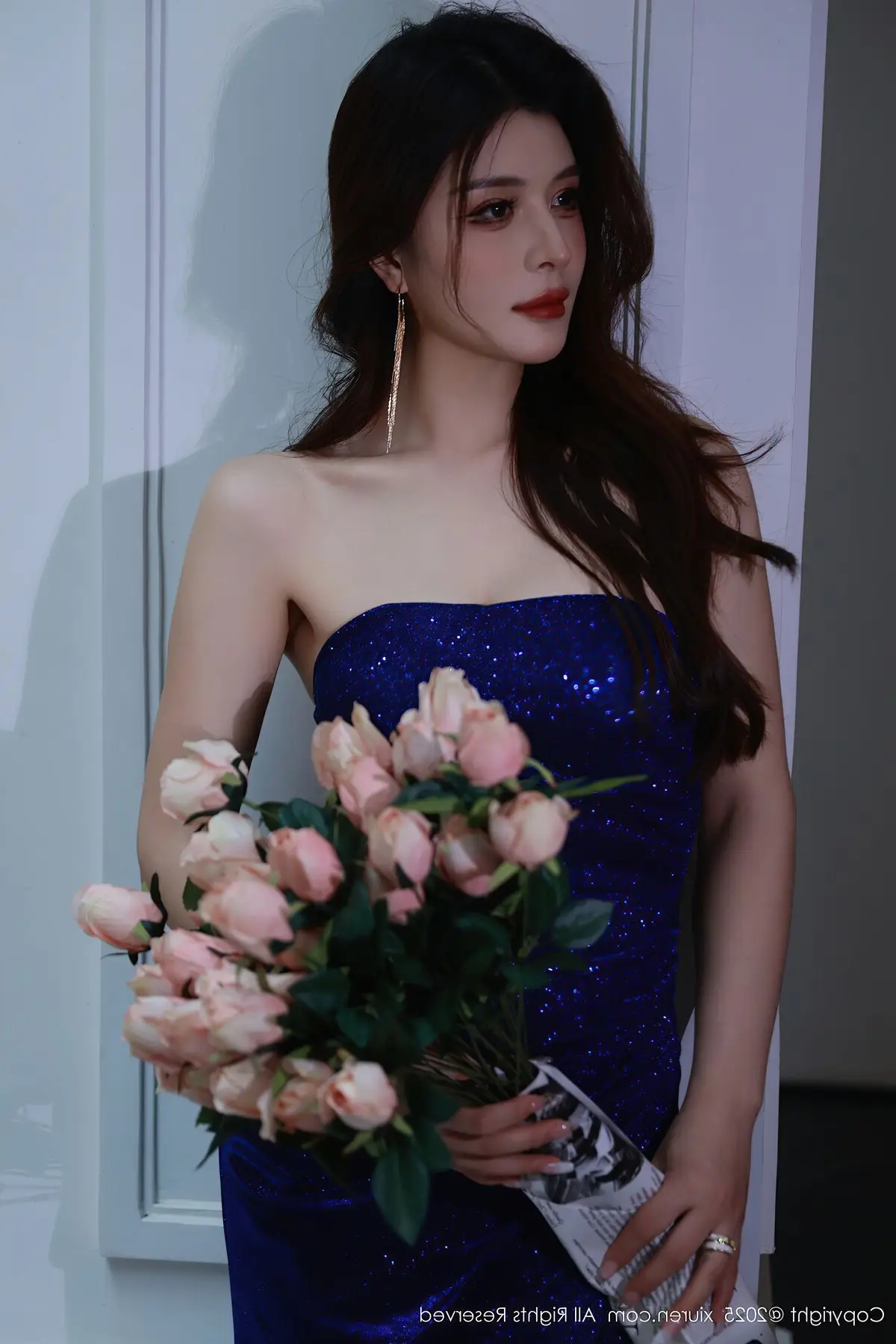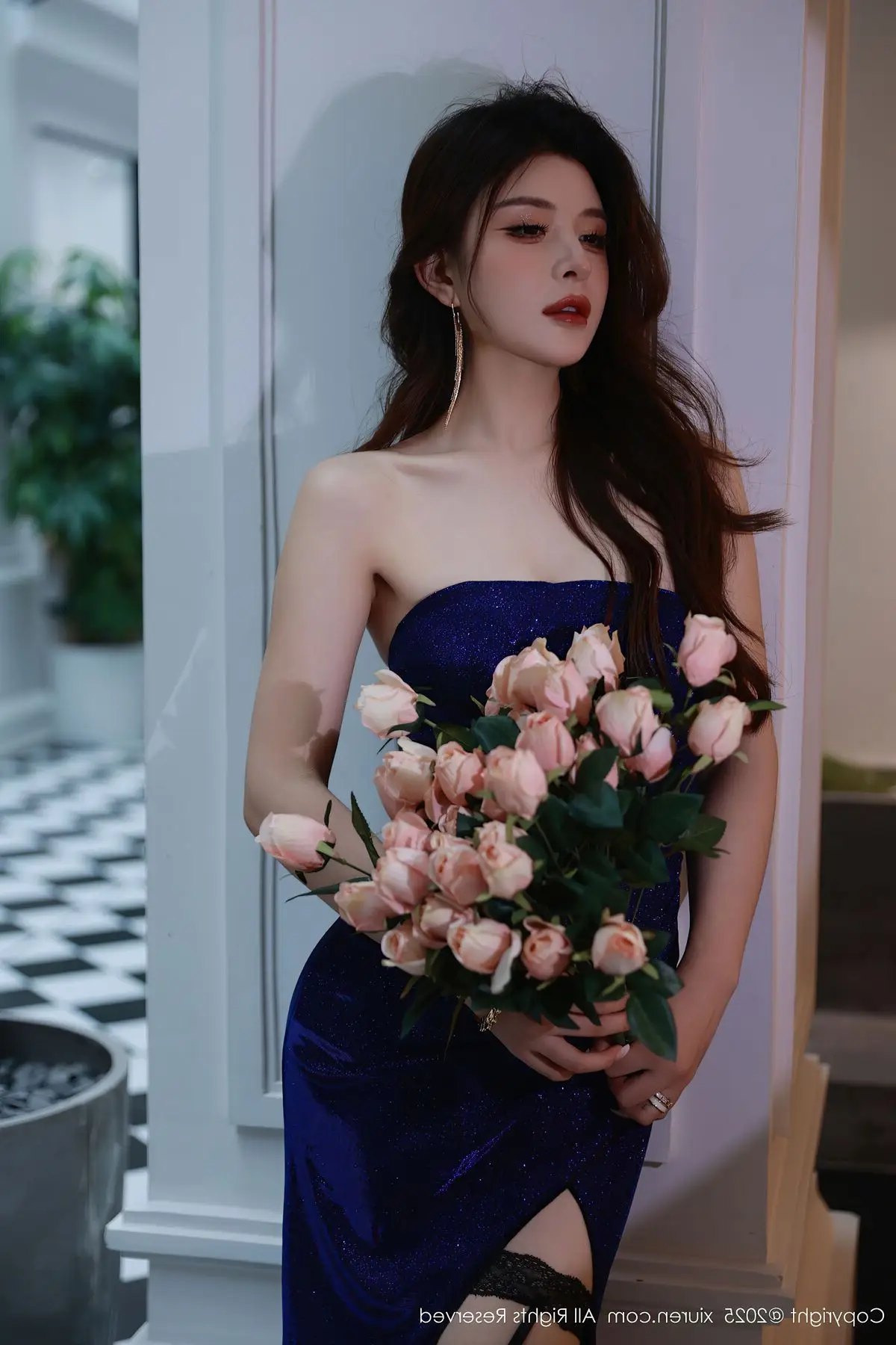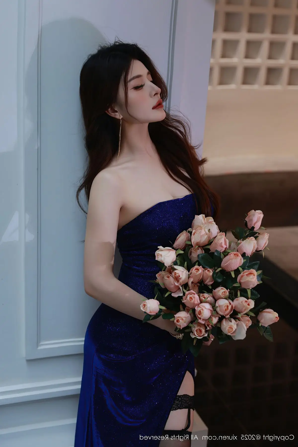 In the XiuRen No.10740 collection, A Yi Sha emerges with an utterly captivating charm. She dons a sleek navy blue dress, elegantly highlighting her slender silhouette. The alluring sheer stockings paired with her thoughtful, distant gaze create an irresistible allure. The backdrop of a sparkling city night, visible through a grand window, amplifies the luxurious and mysterious ambiance. Gentle illumination from a classic chandelier casts a shimmering glow, crafting a romantic and emotionally rich scene. A Yi Sha appears gracefully lost in contemplation, embodying a moment of serene power. Each photograph exquisitely captures her refined beauty and the confident poise of a modern woman.#XiuRen #AYiSha #Glamour #CityNight #NightFashion