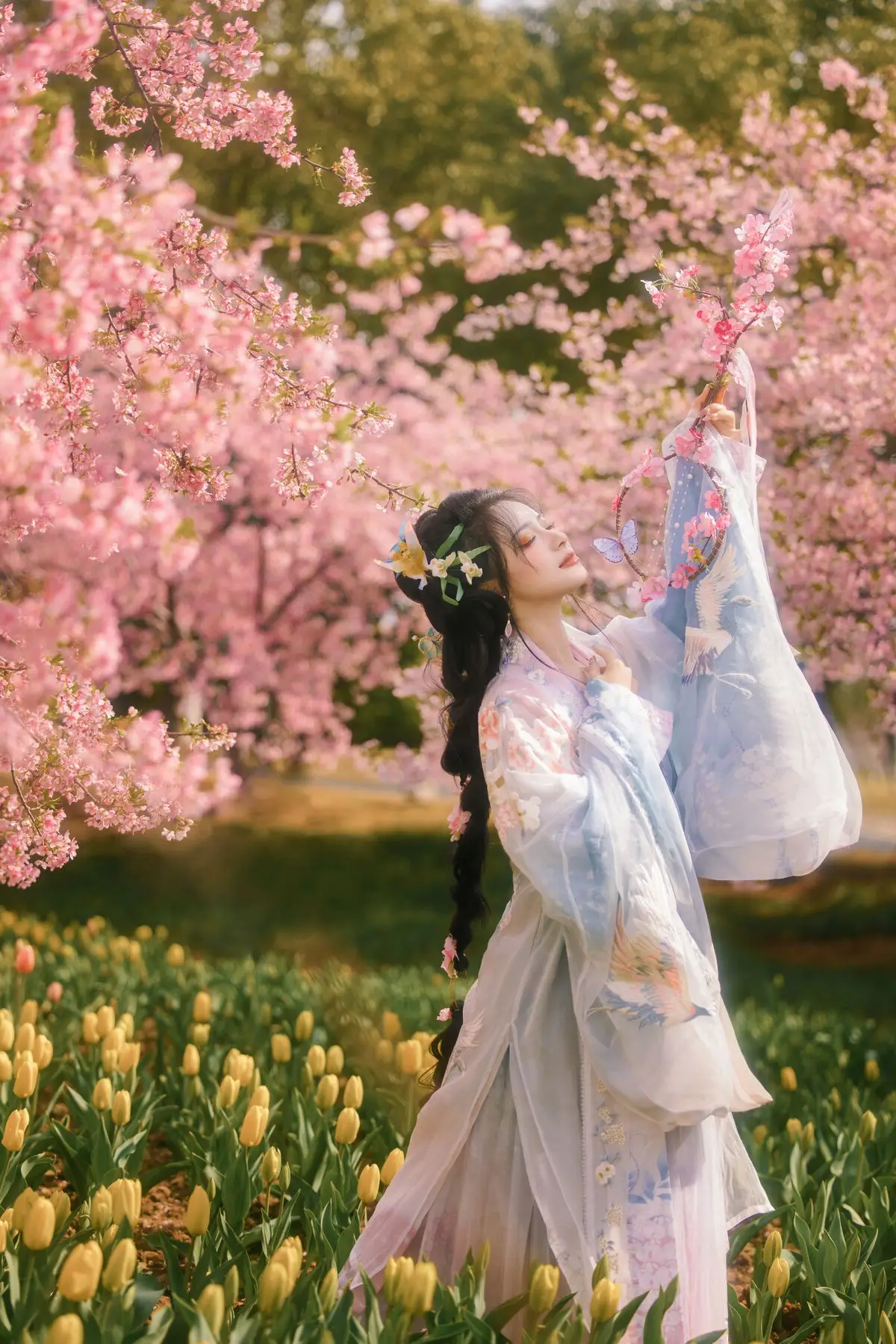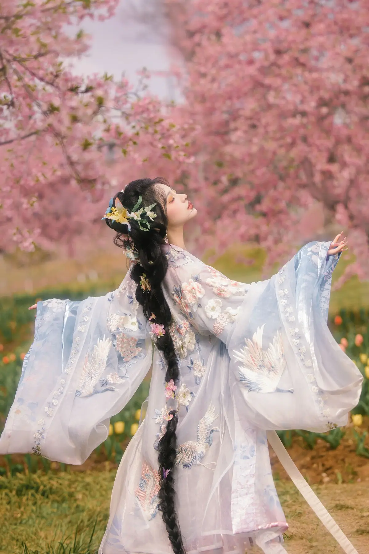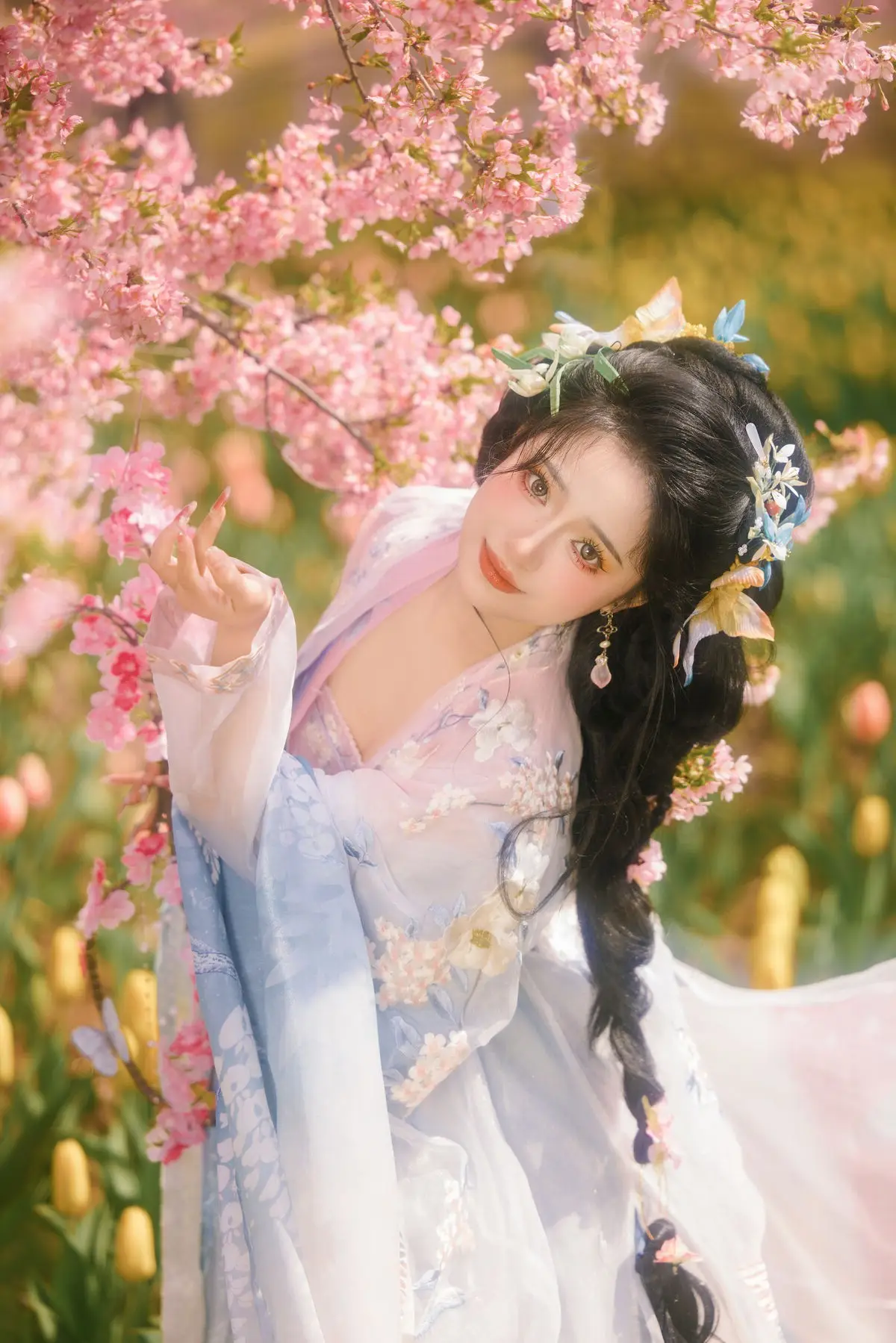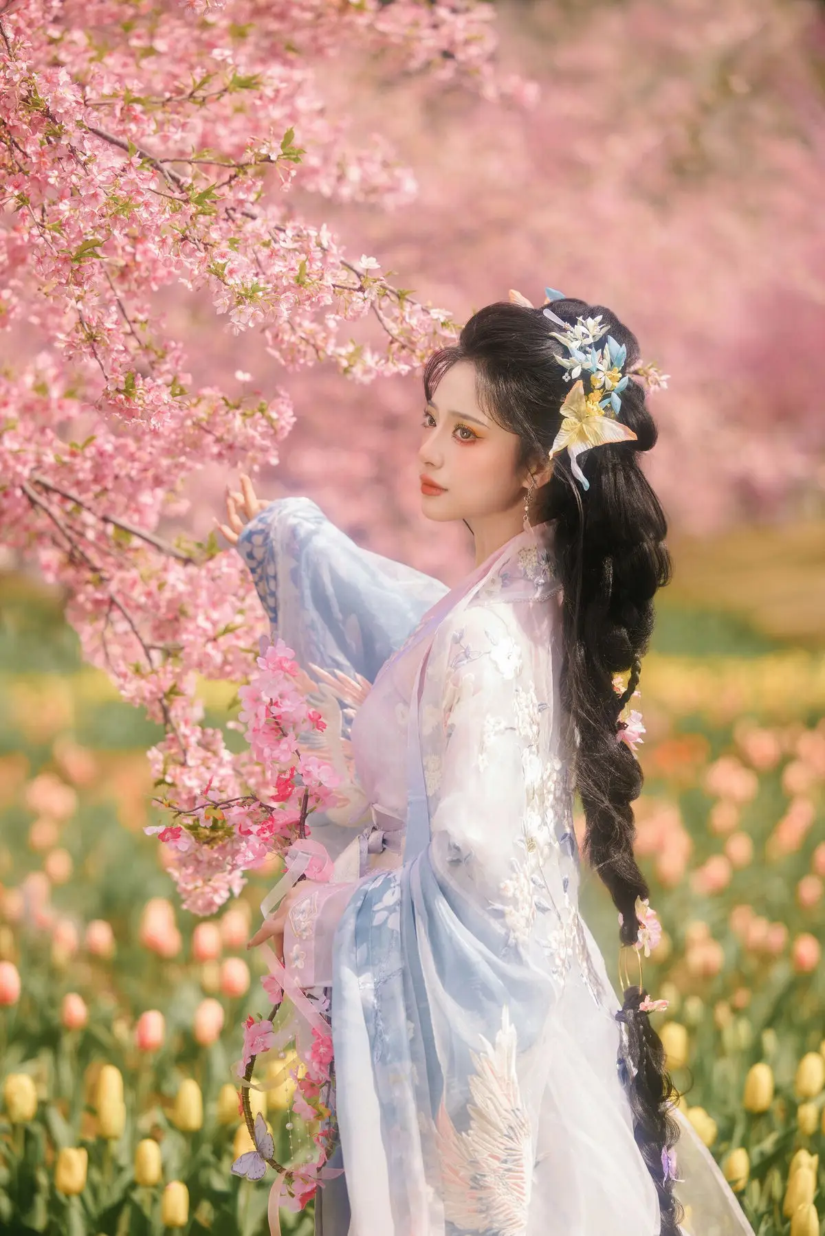 Immerse yourself in the enchanting beauty of the YiTuYu Vol.8666 Xian Lu collection, featuring model Xian Lu as a graceful ancient muse. Dressed in a delicate pastel Hanfu, she exudes serene elegance amidst a dreamy backdrop of blooming pink cherry blossoms. Her meticulously styled hair, adorned with subtle floral ornaments, coupled with her captivating gaze, creates an emotionally rich photographic artwork. This image not only celebrates classic East Asian aesthetics but also evokes the romantic and tranquil essence of spring, drawing every eye to its timeless charm.#Hanfu #AsianBeauty #CherryBlossoms #TraditionalFashion #XianLu #YiTuYu