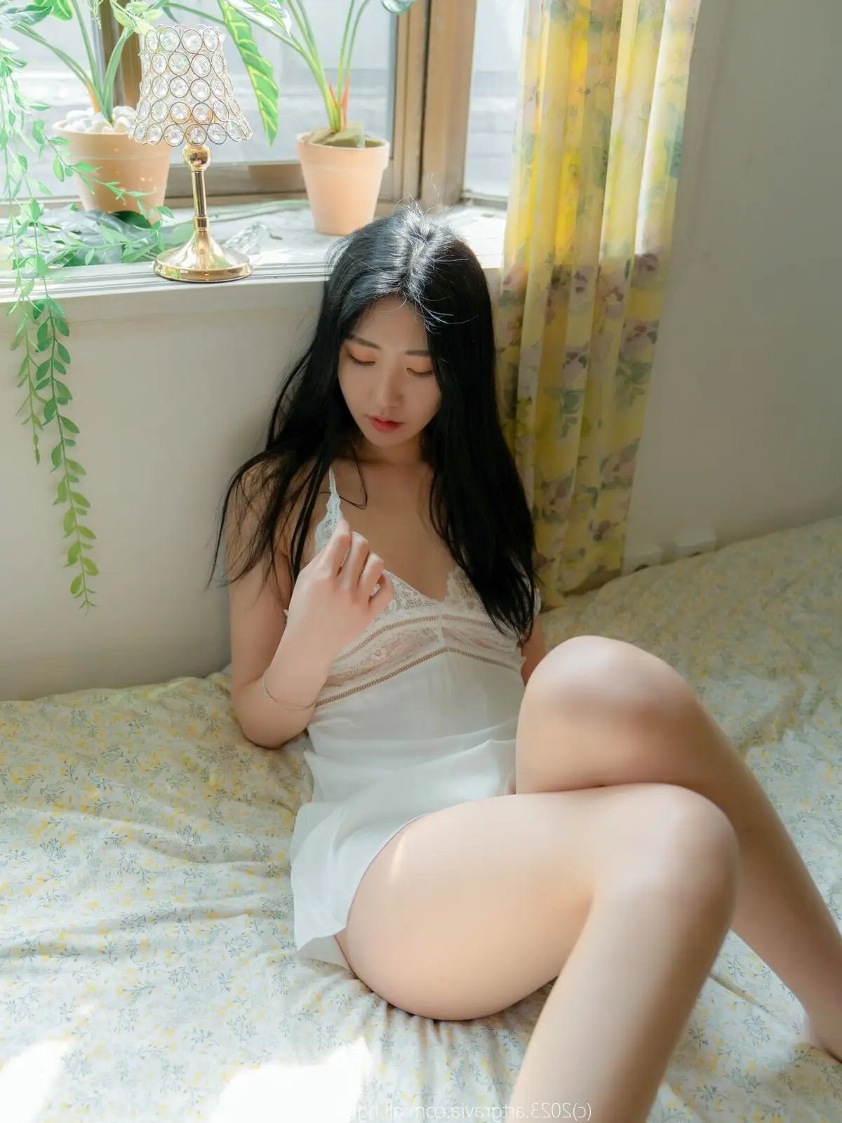 From the LE-LERB-093 collection, Na Kyung radiates a graceful and captivating beauty. She sits gently by the window, natural light caressing her smooth skin, highlighting her alluring curves. Her delicate face, with eyes softly closed, exudes a relaxed and thoughtful expression of peace. The subtle cream lingerie enhances her seductive charm while maintaining a sense of purity. The cozy space with classic wooden furniture creates a perfect backdrop, emphasizing Na Kyung's natural, unadorned beauty. This image is more than just a picture; it's a tranquil moment where viewers can fully appreciate the elegance and irresistible appeal of the young woman.#NaKyung #LELERB093 #AlluringBeauty #SereneMoments #ArtisticPortrait
