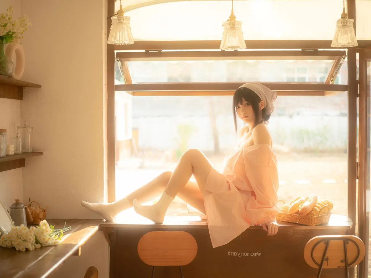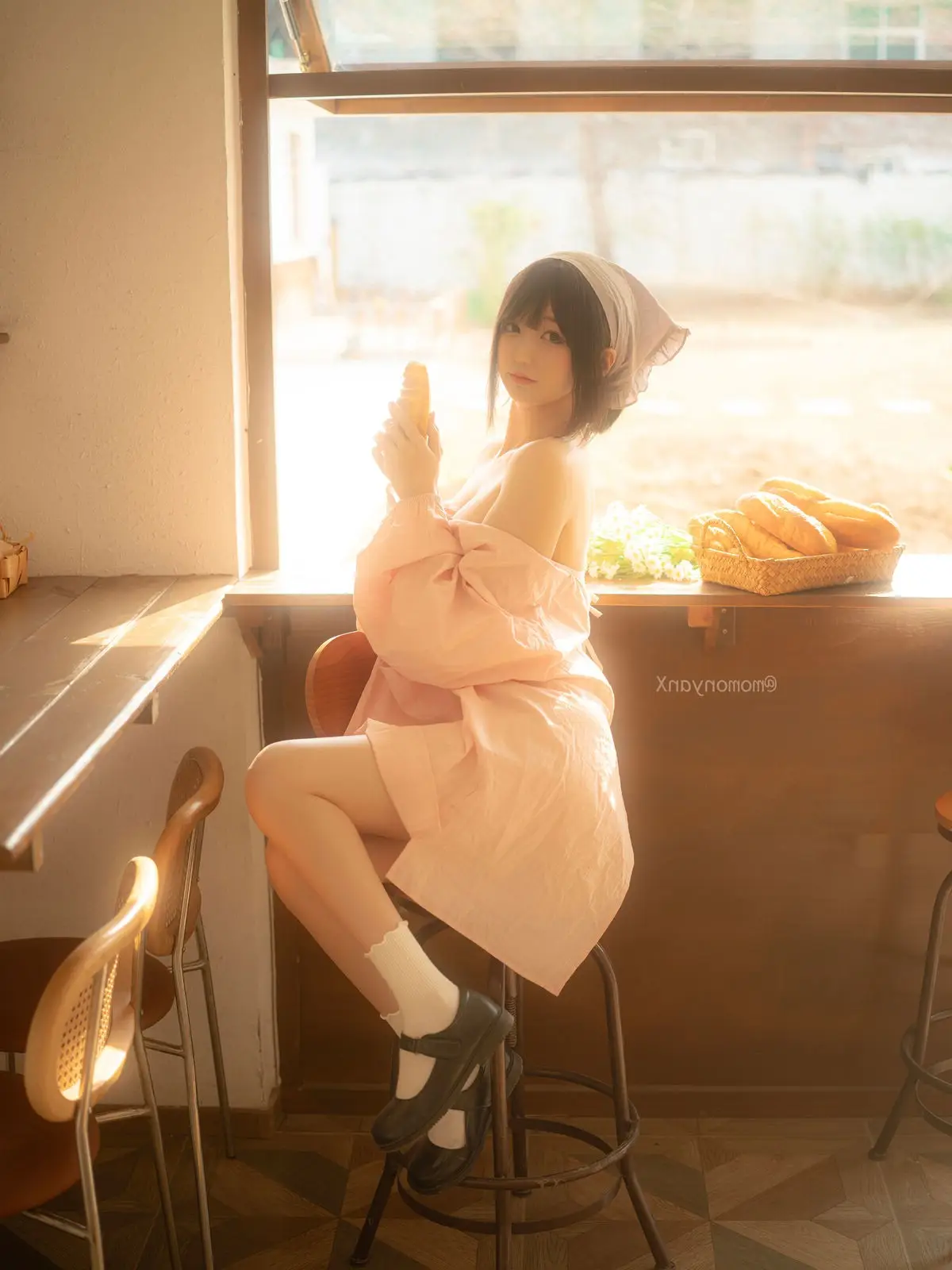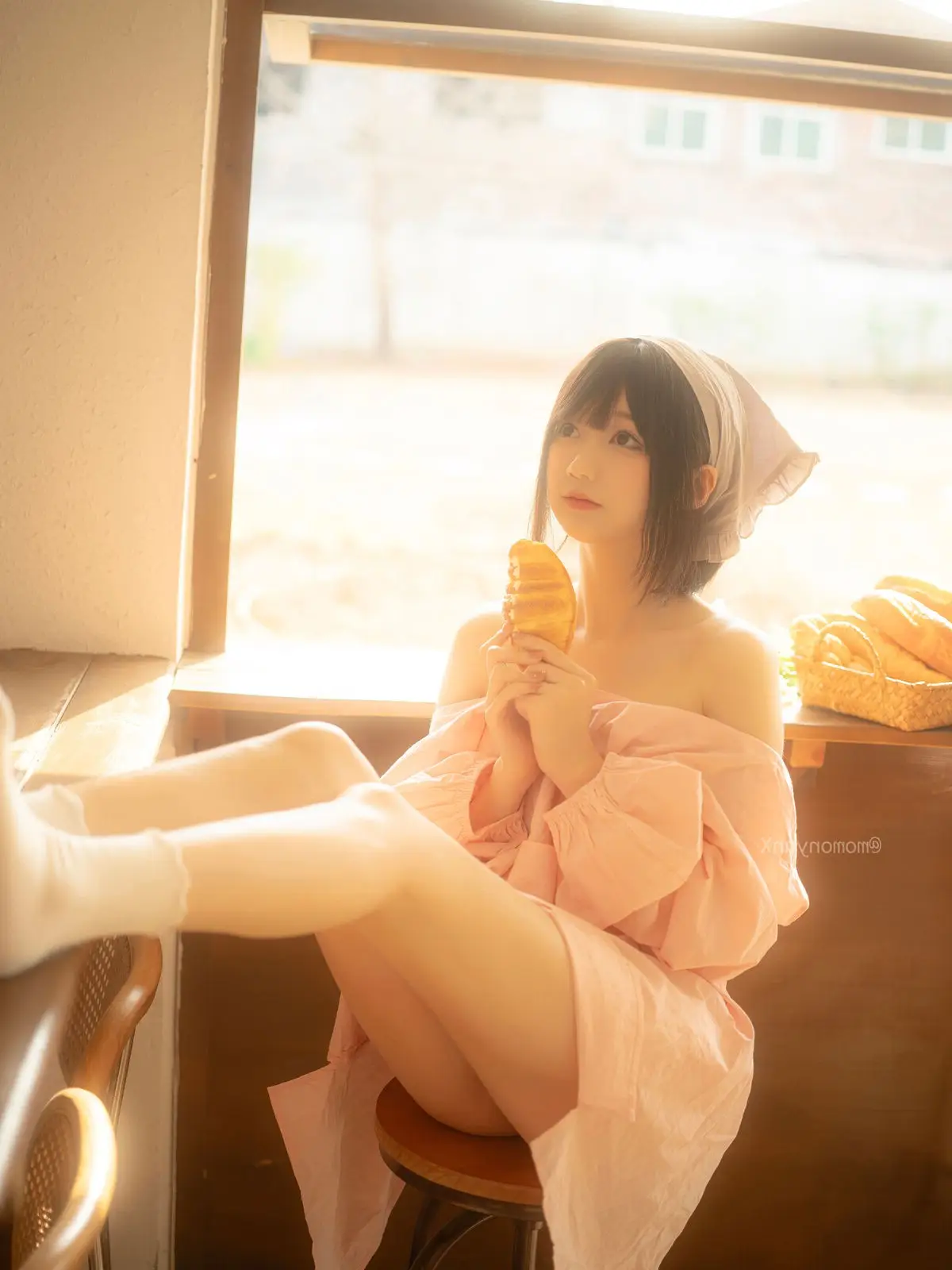 Immerse yourself in the sweet world of Coser NAGISA魔物喵 with her captivating Part01 photoshoot. She graces the scene in a delicate pink outfit, perched on a high stool within a warm, sunlit kitchen setting. NAGISA魔物喵's pure beauty, sparkling eyes, and shy smile evoke a sense of peace and innocent charm. The backdrop, adorned with fresh bread, enhances the intimate and cozy atmosphere, reminiscent of a serene morning. This collection is undoubtedly a must-see, offering fans relaxing and visually delightful moments. Join NAGISA魔物喵 as she unveils her graceful allure in every frame of this charming set.#Coser #NAGISA #魔物喵 #CuteCosplay #NewPhotoshoot #SweetCharm