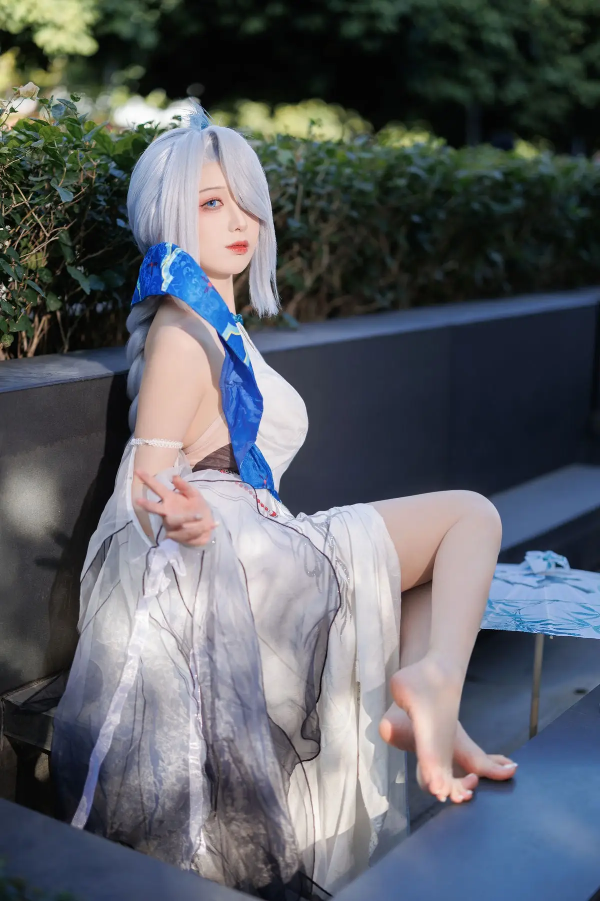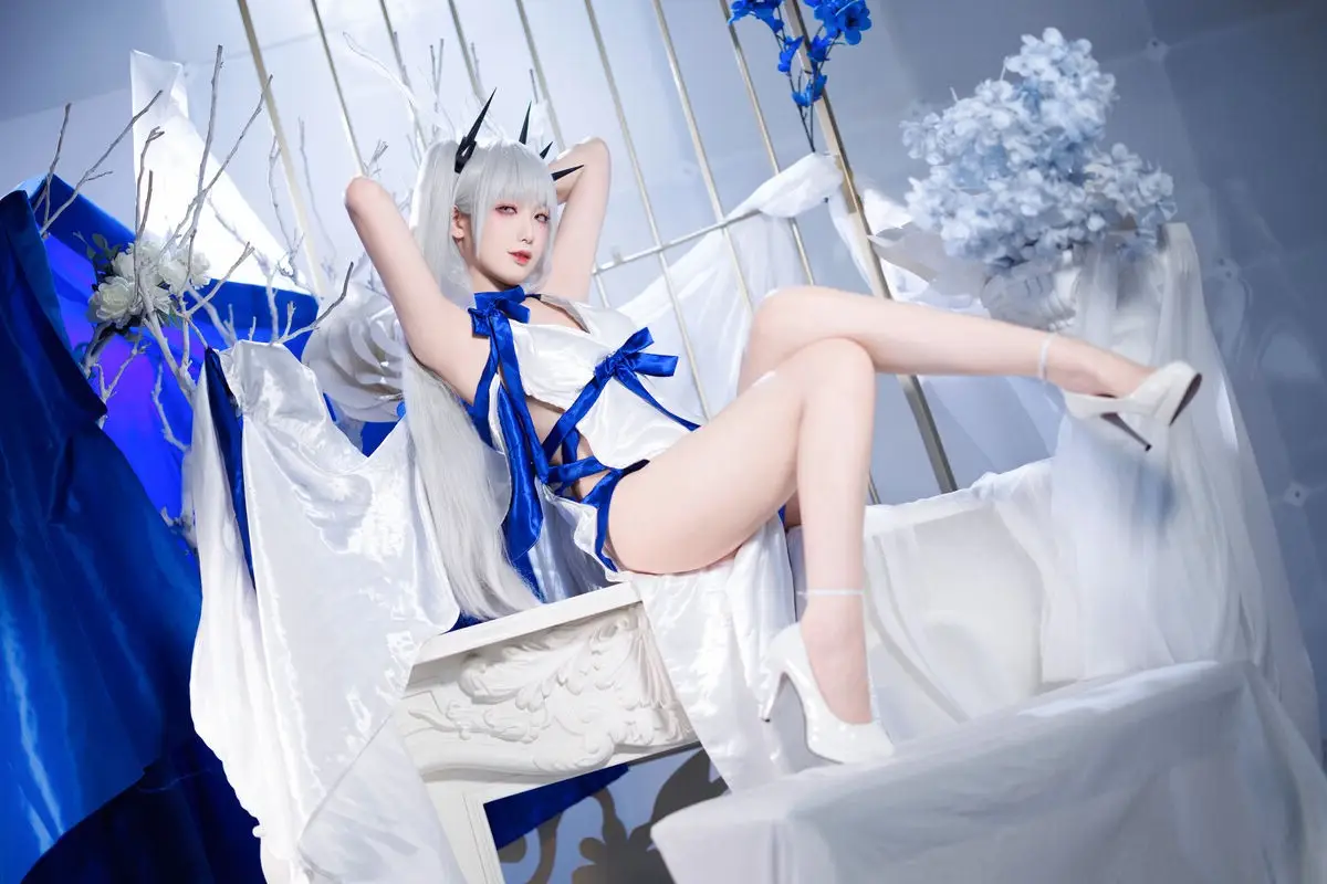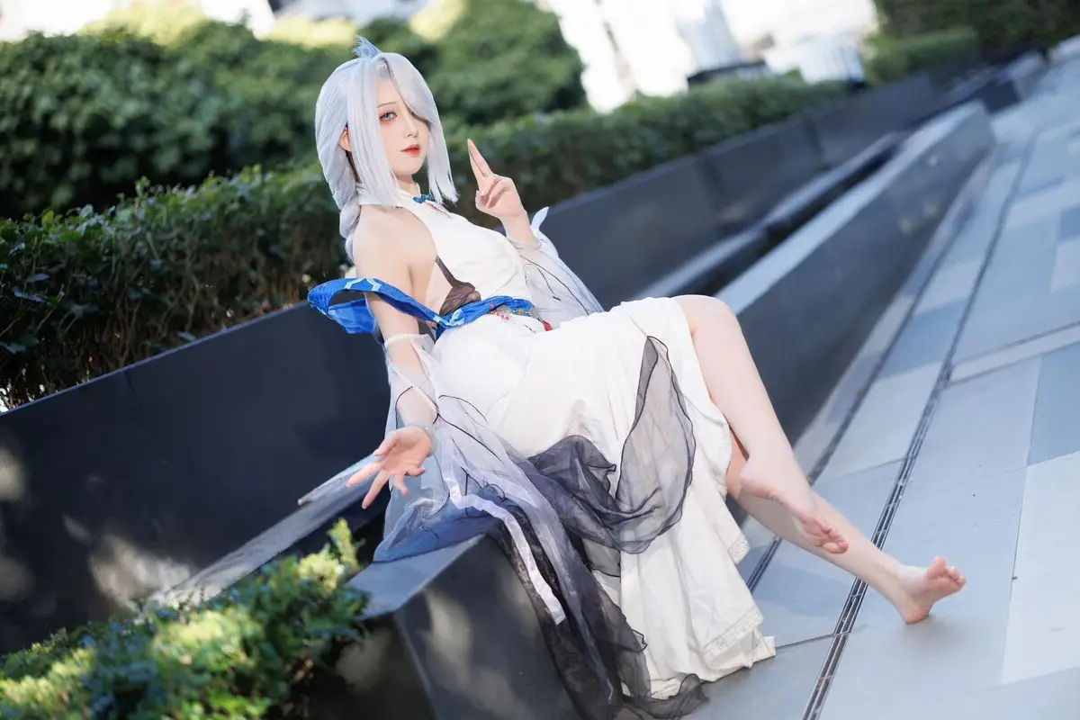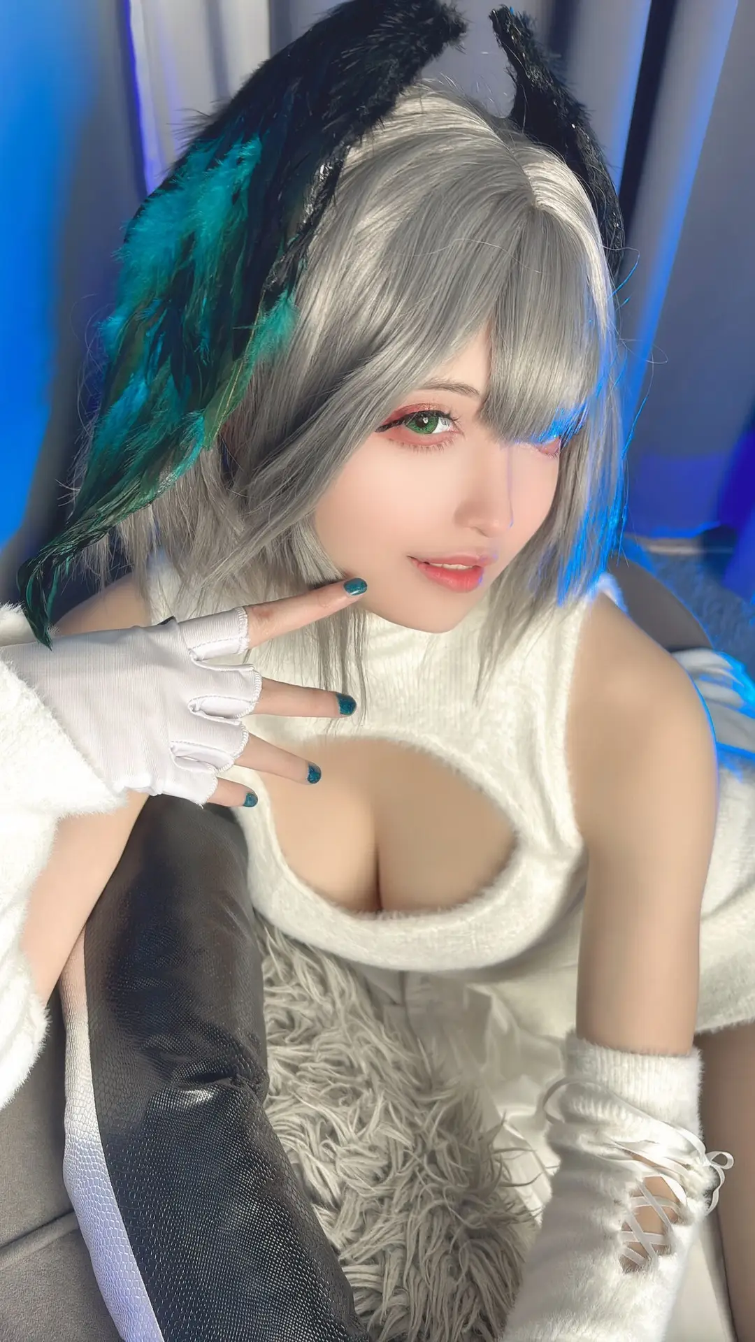 Coser Feng Jiang Jiang V shines brilliantly in her exquisite Dreadnought Dress cosplay She masterfully embodies the character featuring flowing silver hair captivating red eyes and sharp horn-like accents creating an enchanting and regal allure The pristine white gown adorned with delicate blue ribbons beautifully accentuates Feng Jiang Jiang Vs graceful figure and elegant demeanor Every detail from the intricate costume to the accessories is meticulously crafted showcasing the cosplayers dedication and passion This photograph not only highlights her exceptional cosplay talent but also perfectly conveys the characters mysterious charm and allure leaving viewers spellbound It is undoubtedly a masterpiece of cosplay artistry#Coser #FengJiangJiangV #DreadnoughtDress #CosplayBeauty #AnimeCosplay #CharacterCosplay