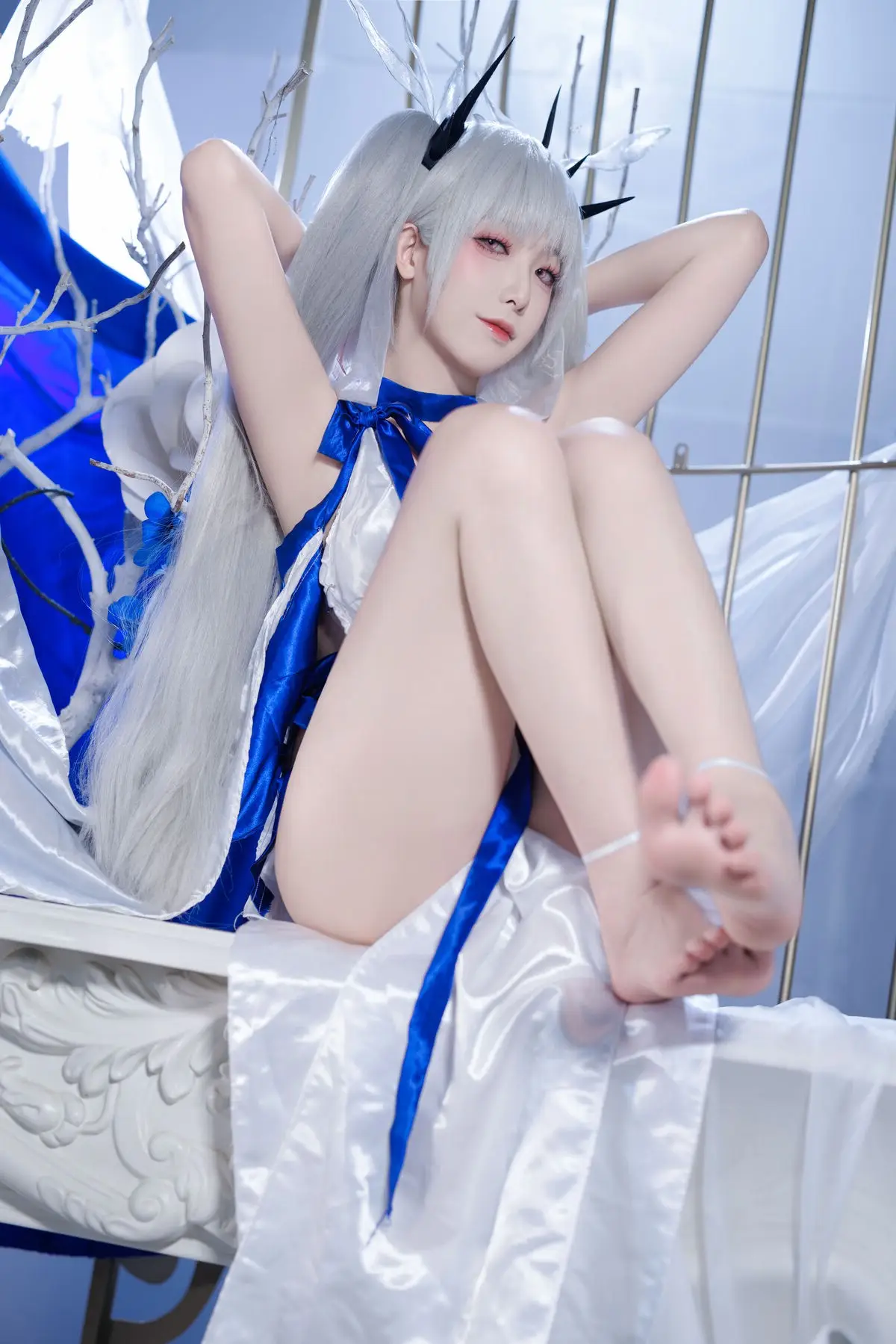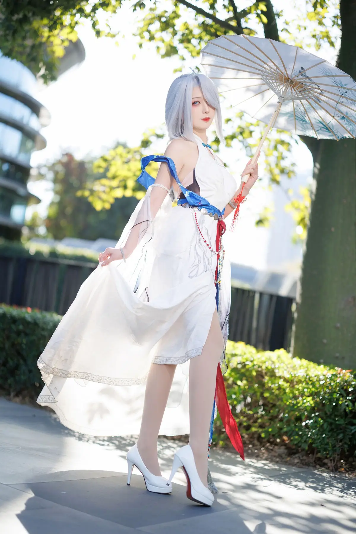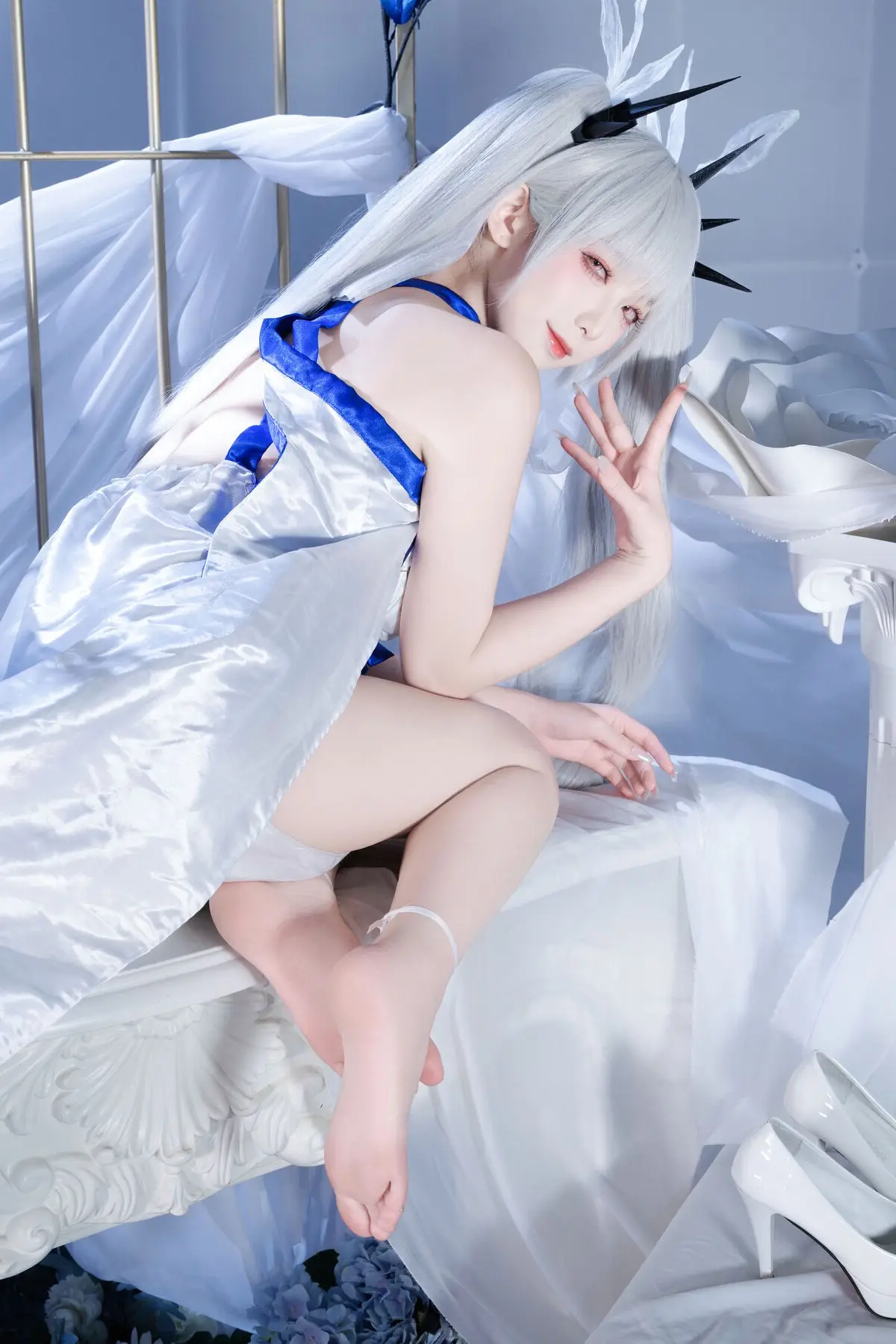 Coser Feng Jiang Jiang V shines brilliantly in her exquisite Dreadnought Dress cosplay She masterfully embodies the character featuring flowing silver hair captivating red eyes and sharp horn-like accents creating an enchanting and regal allure The pristine white gown adorned with delicate blue ribbons beautifully accentuates Feng Jiang Jiang Vs graceful figure and elegant demeanor Every detail from the intricate costume to the accessories is meticulously crafted showcasing the cosplayers dedication and passion This photograph not only highlights her exceptional cosplay talent but also perfectly conveys the characters mysterious charm and allure leaving viewers spellbound It is undoubtedly a masterpiece of cosplay artistry#Coser #FengJiangJiangV #DreadnoughtDress #CosplayBeauty #AnimeCosplay #CharacterCosplay