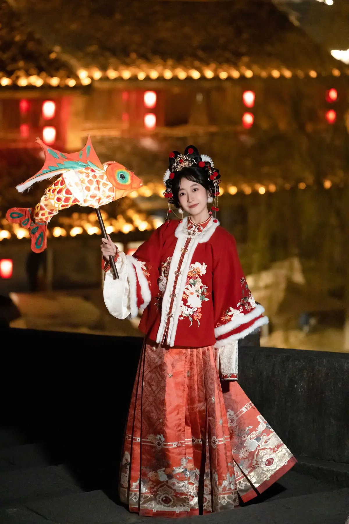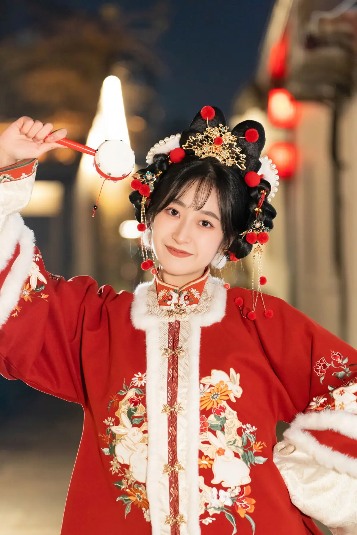 Model Xiao He exudes serene beauty in a vibrant traditional Hanfu, captured gracefully within a classic wooden setting. Her festive red attire, adorned with intricate embroidery and soft white fur trim, evokes an air of timeless elegance and cultural richness, perfectly embodying the spirit of the Lunar New Year. With a gentle gaze and a contemplative pose, she creates a moment of quiet reflection, inviting viewers to appreciate the delicate artistry of the garment and the tranquil ambiance. This image from YiTuYu Vol.8565 not only showcases the exquisite charm of traditional Chinese fashion but also subtly hints at historical narratives and festive celebrations along iconic locations like the Grand Canal, offering a glimpse into a cherished heritage.#HanfuFashion #XiaoHe #ChineseTradition #LunarNewYear #CulturalBeauty