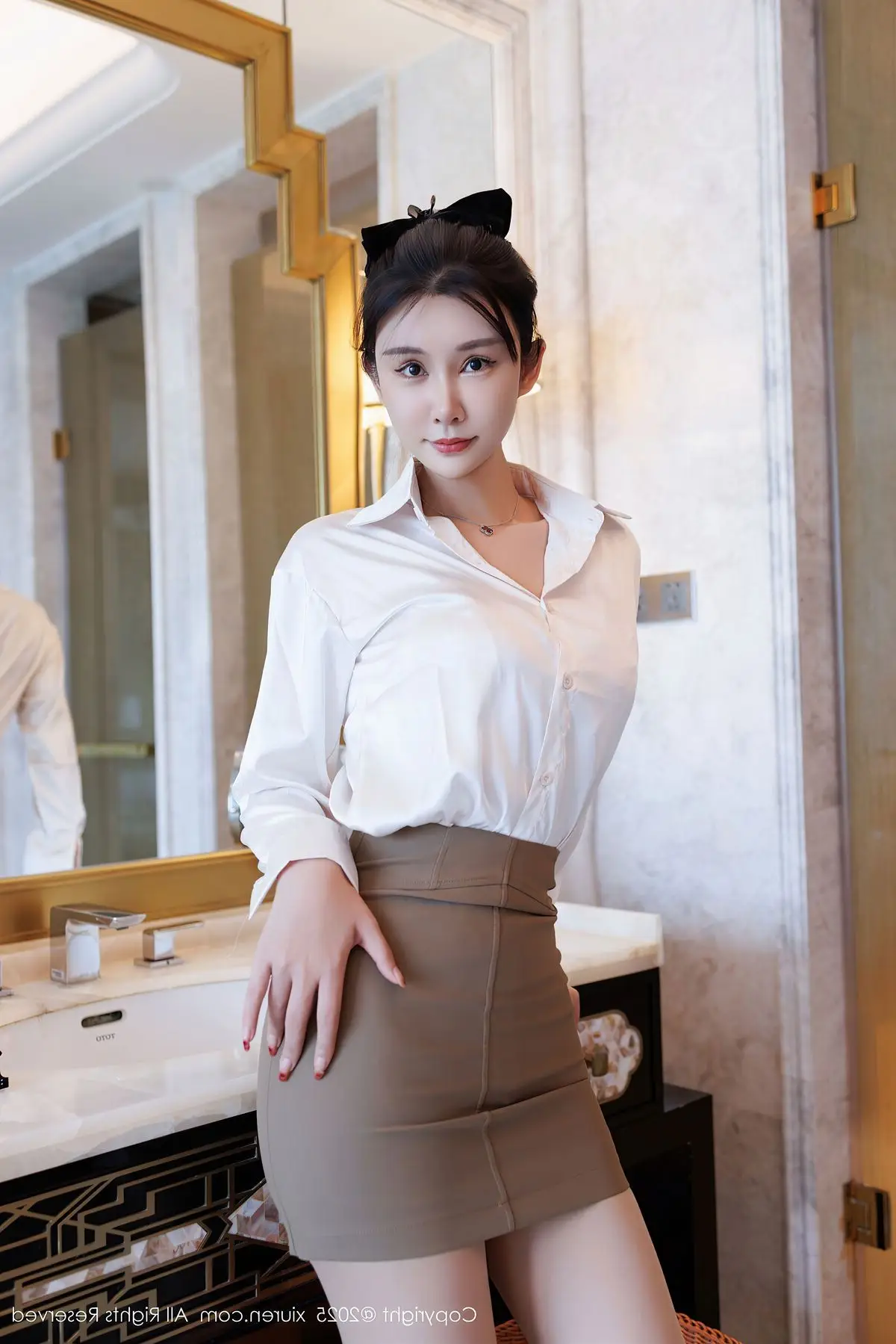 In the XiuRen No.10543 collection, model Yi Yi shines with a captivating office-inspired style. She skillfully combines a crisp white shirt with a figure-hugging beige skirt, creating a look that is both professional and subtly alluring. With her hair neatly tied up and a confident demeanor, Yi Yi embodies elegance and strong individuality. Every gesture and glance exudes an irresistible charm, highlighting her graceful figure. This photoshoot not only captures beautiful moments but also conveys inspiration for modern fashion, where sophistication and physical beauty blend perfectly. It's a striking highlight in XiuRen's photo series, showcasing Yi Yi's unique appeal.#XiuRen #YiYi #OfficeFashion #AsianModel #ElegantStyle