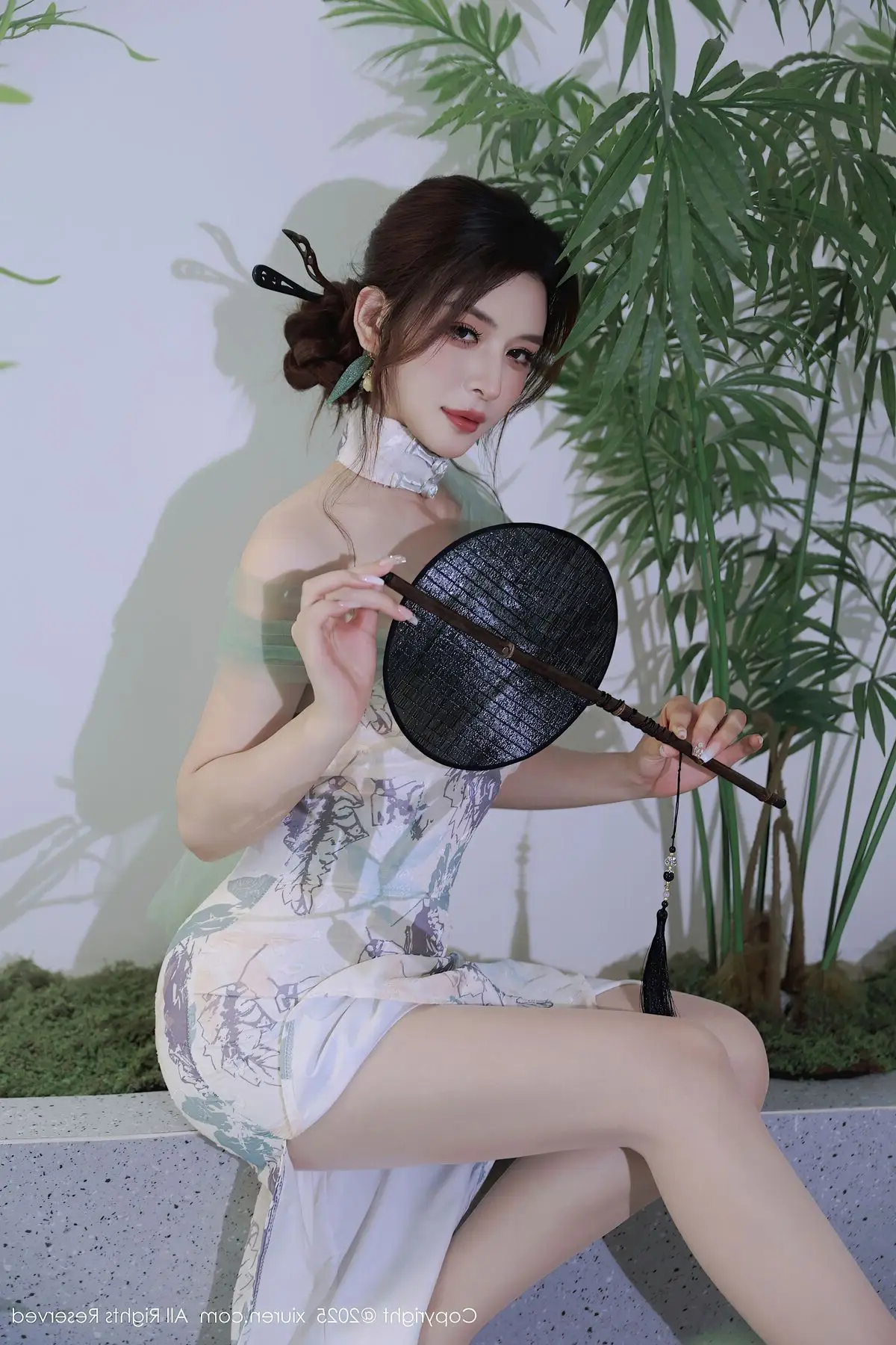 In this enchanting capture from XiuRen No.10694, model A Yi Sha radiates a serene yet captivating beauty. She is adorned in an exquisite halter-neck dress, featuring delicate patterns and soft, muted colors that gracefully highlight her slender silhouette. Her dark hair is elegantly styled upwards, complemented by a traditional hairpin, creating a harmonious blend of classic charm and contemporary fashion. A Yi Sha's gentle gaze and demure expression, coupled with her graceful pose, evoke a sense of intrigue and admiration. This image beautifully showcases not only a unique fashion statement but also the alluring, sophisticated, and poetic essence of Oriental beauty, inviting viewers to delve deeper into its exquisite details.#AyiSha #XiuRen #OrientalBeauty #ElegantFashion #HalterDress