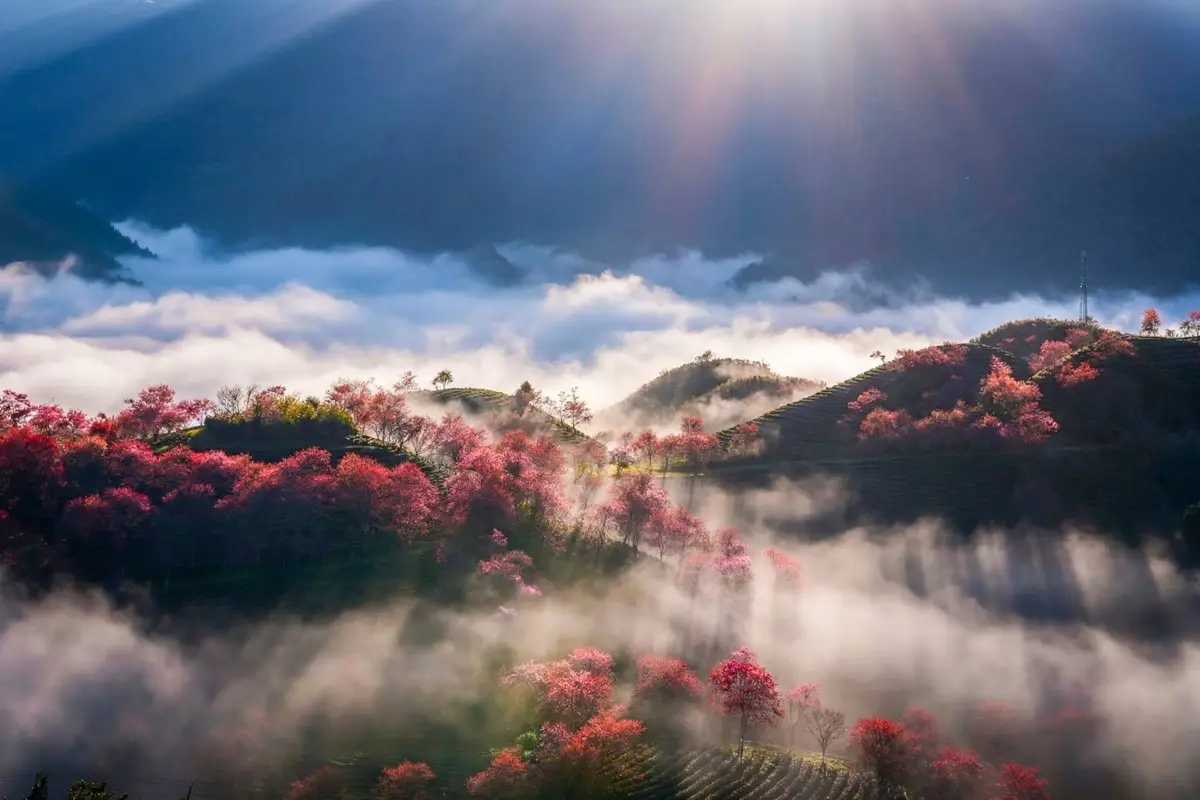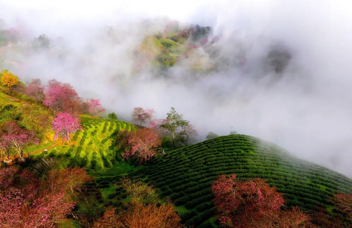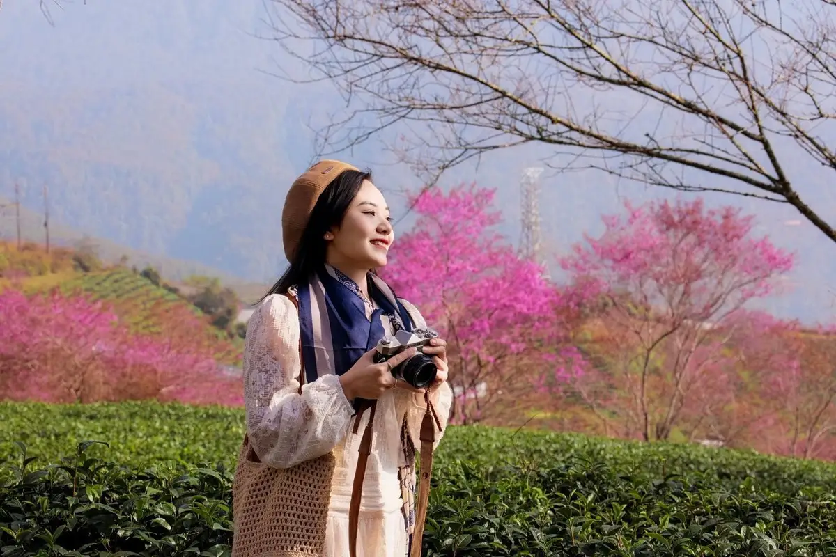 This stunning photograph captures a traveler immersed in the romantic splendor of Sa Pa's cherry blossom season. As the year draws to a close, the mountain town transforms with vibrant pink Mai Anh Dao flowers blooming profusely, creating a majestic yet poetic natural panorama. The person in the image, with arms wide open, appears to embrace the crisp air and the enchanting fragrance of this blossoming forest. This truly is Sa Pa's most beautiful period, where delicate petals unfurl amidst the cool mountain mist, drawing countless visitors to admire capture photos and explore the captivating floral landscapes. Experiencing the serene beauty of Mai Anh Dao's romantic pink hues promises an unforgettable journey.#SaPa #CherryBlossoms #VietnamTravel #MaiAnhDao #MountainTownBeauty #FlowerSeason