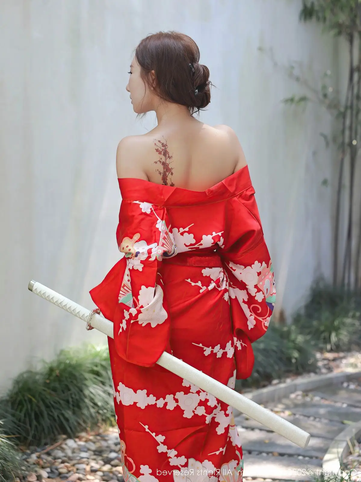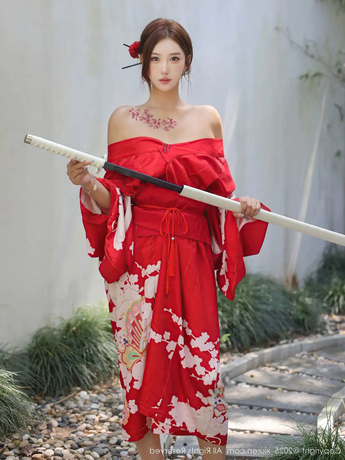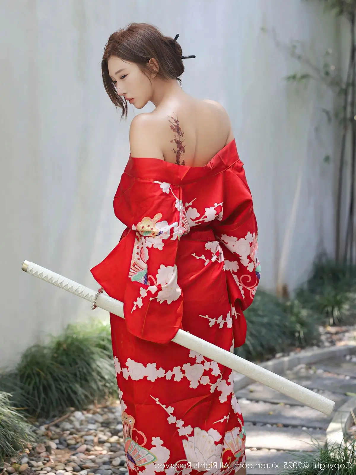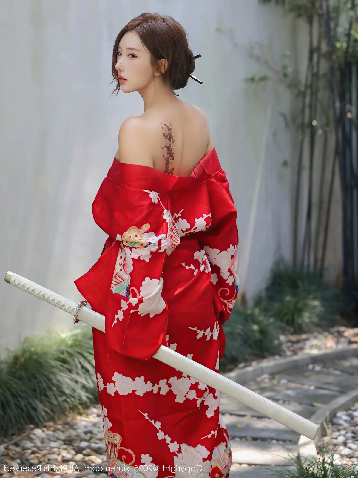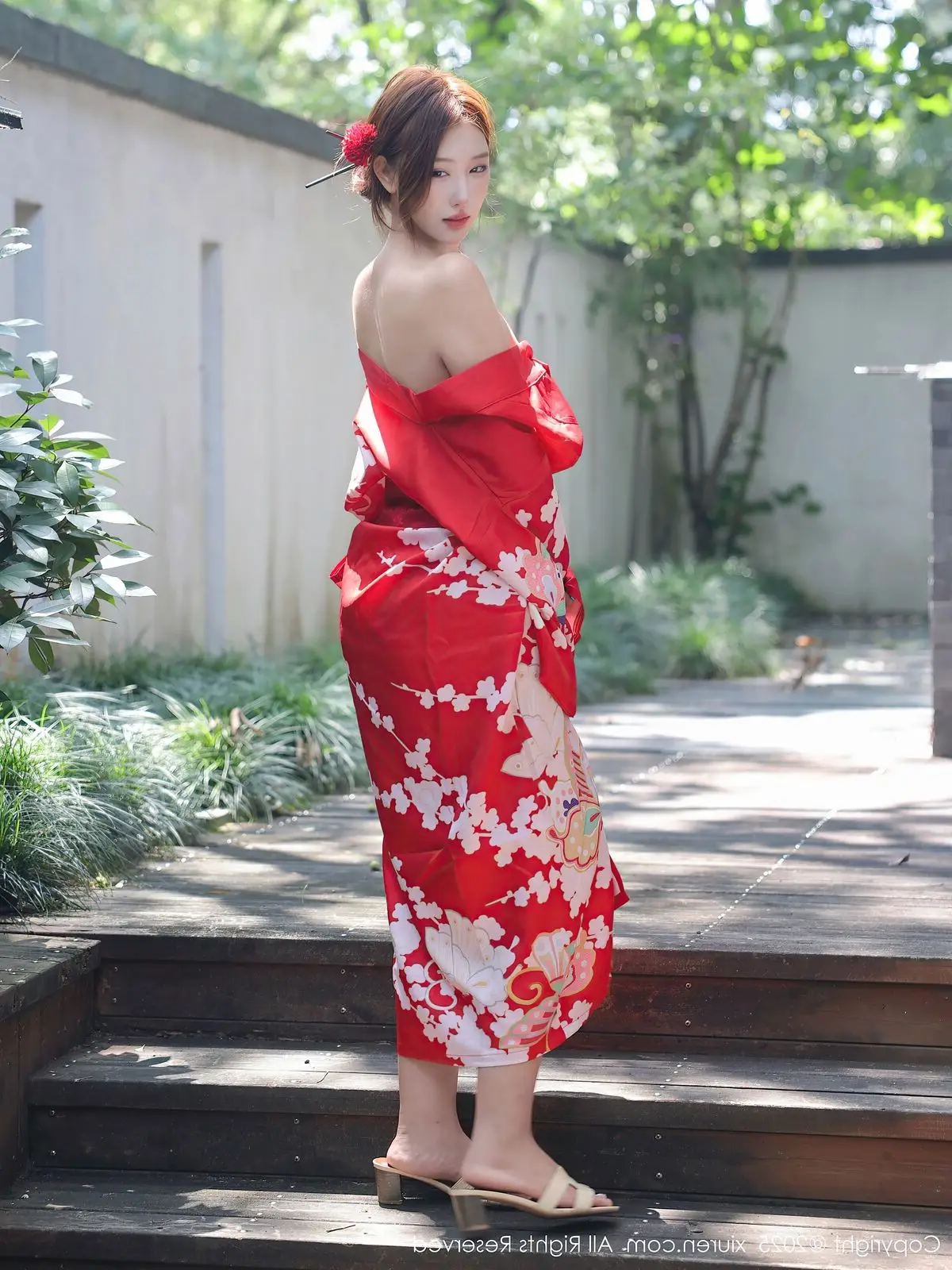 Jin Yun Xi Yuki: Enchanting Beauty in a Fiery Red Kimono, Captivating Every Gaze - XiuRen No.10683