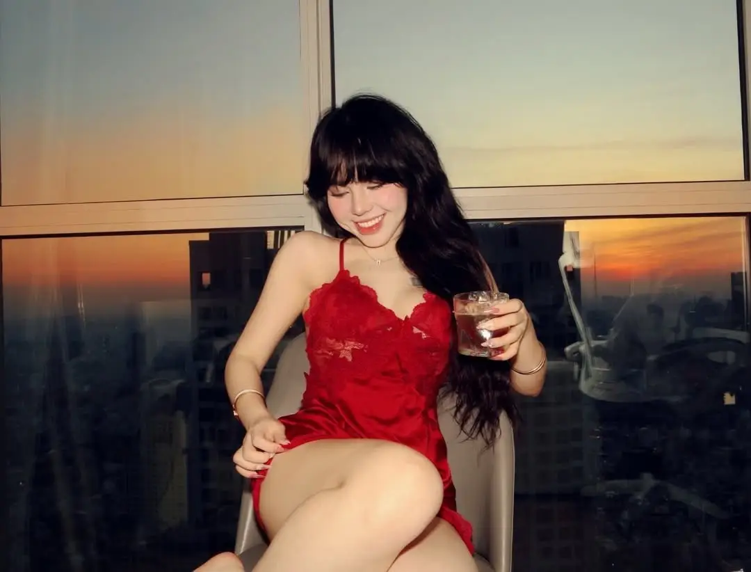 Bảo Khuyên Susan once again captivated the online community with her stunning new photo series. The hot girl fully showcased her seductive beauty and daring charm in a delicate red silk dress. The romantic sunset light streaming through the large window enveloped the space, creating a magical backdrop that accentuated Bảo Khuyên's alluring curves. Holding a drink, with captivating eyes, she exuded irresistible confidence and enchantment. This photoshoot not only highlights her refined fashion sense but also asserts her unique personal style, making it impossible for viewers to look away. These are undoubtedly precious moments, spreading captivating energy across platforms like Instagram and TikTok.#BaoKhuyenSusan #RedSilkDress #HotGirl #SeductiveStyle #SunsetVibes