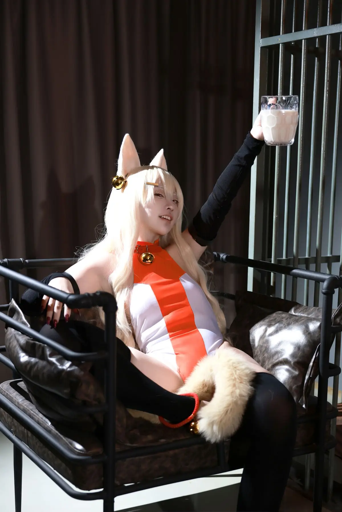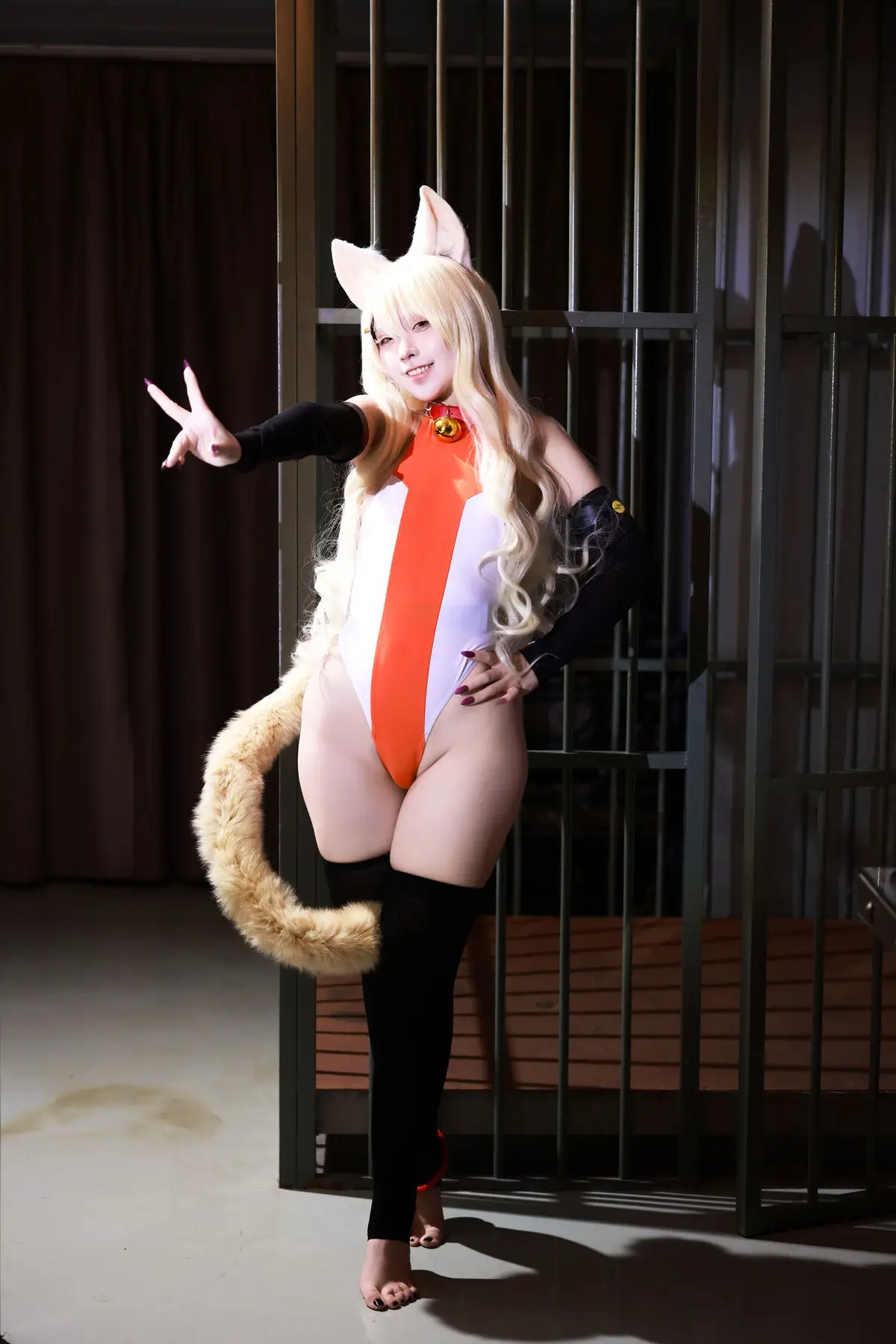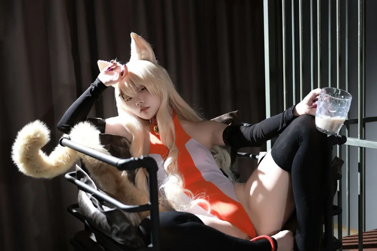 In this captivating image Coser G44 embodies Esper Girl Alice exuding an enchanting and mysterious aura. With her lustrous blonde hair and distinctive animal ears she projects a beauty that is both sweet and powerful. Alice's sharp gaze and alluring expression seem to tell a story of hidden strength and irresistible charm. The meticulously crafted costume with its intricate details highlights the character's unique style. This is truly an impressive cosplay successfully capturing the spirit of Esper Girl Alice leaving viewers curious and eager to explore more of her world.#Coser #G44 #EsperGirlAlice #CosplayPhotography #AnimeCosplay #FantasyCharacter