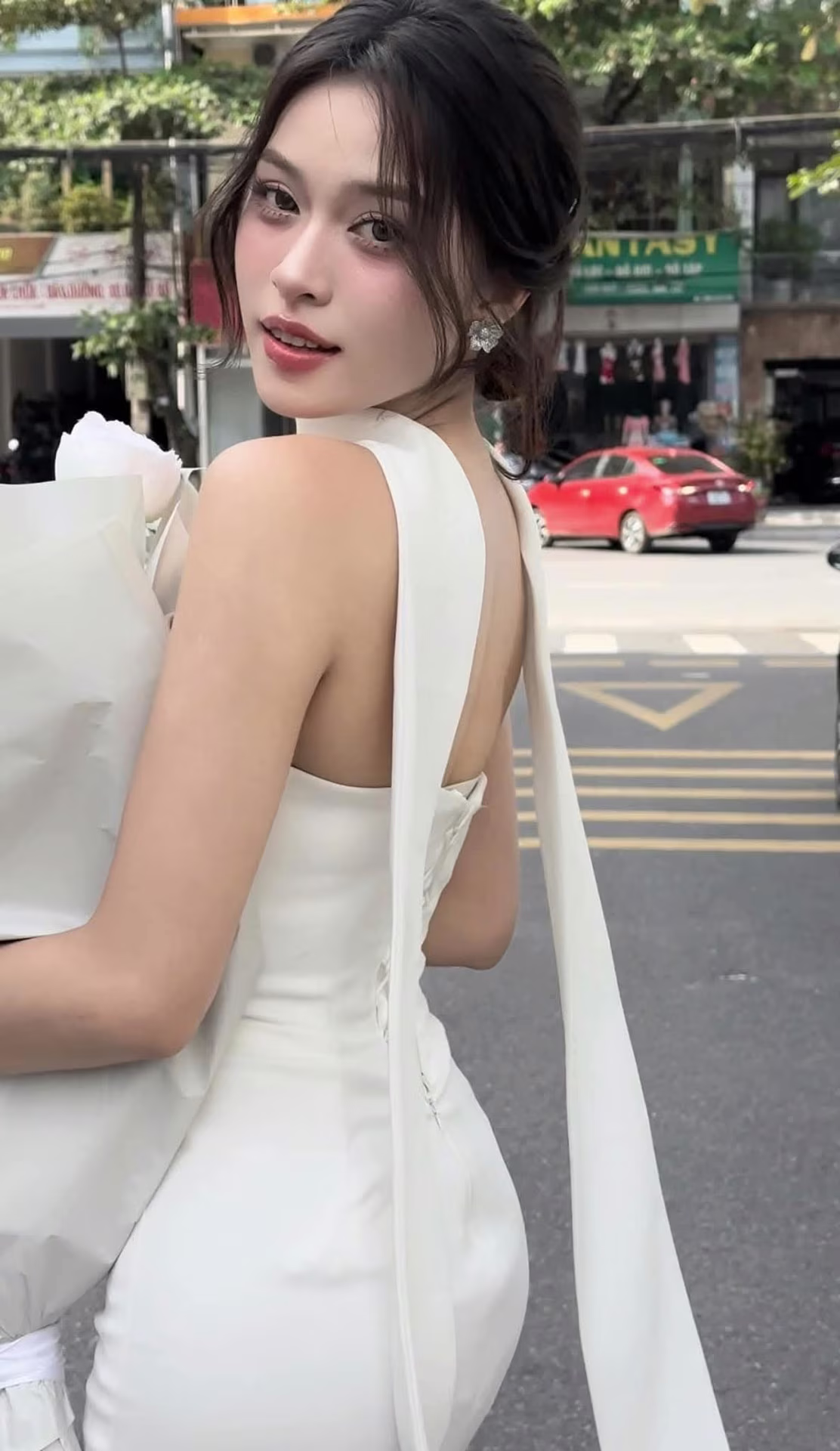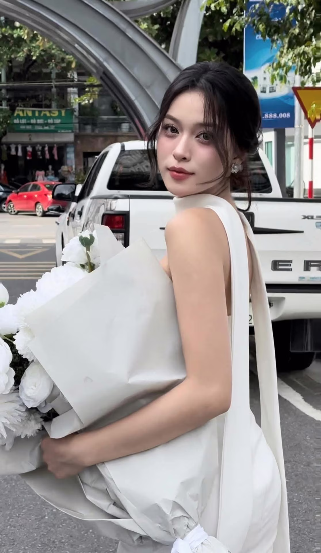 This stunning photograph captures a radiant moment of a young woman in a pristine white dress. Holding a lush bouquet of pure white roses, she exudes a gentle and pure beauty. Her charming smile and sparkling eyes not only brighten the frame but also convey joy and confidence. The simple yet elegant white attire combined with the exquisite flowers creates a harmonious ensemble that captivates every gaze. This is not just a fashion photo but also a symbol of freshness, pristine beauty, and elegant style, perfect for anyone seeking inspiration for special occasions or personal fashion. #Vietnamese #pretty #charmSerene Asian Beauty and Timeless Traditional Charm 1000020751