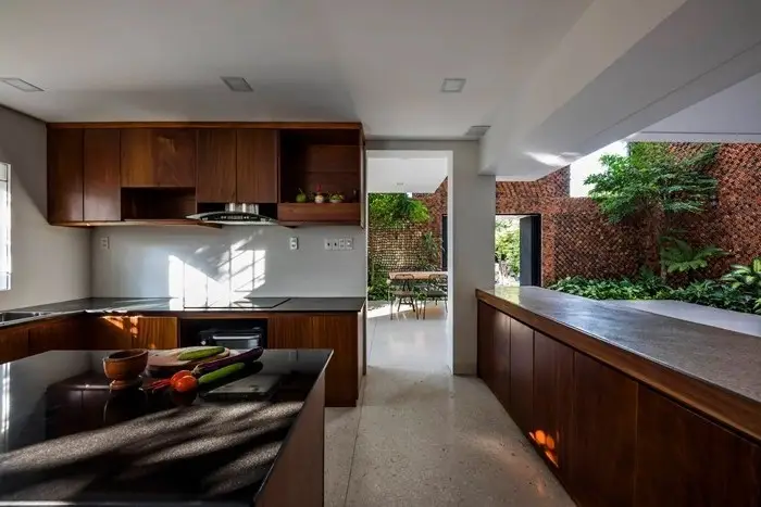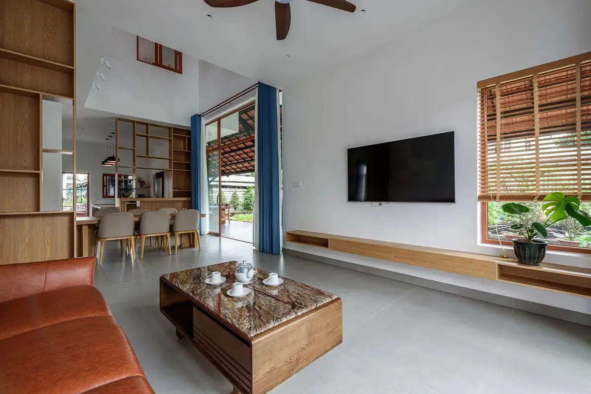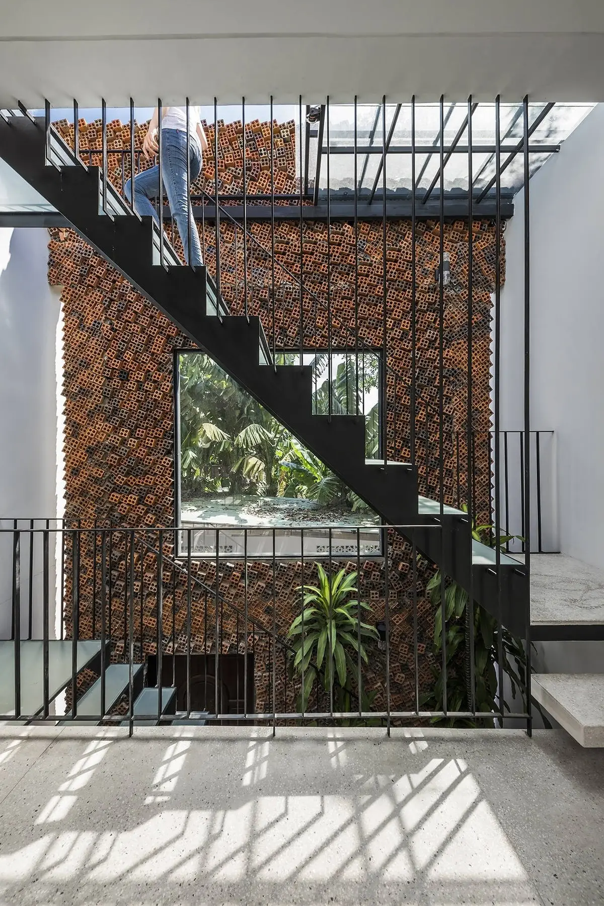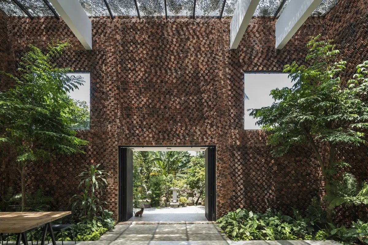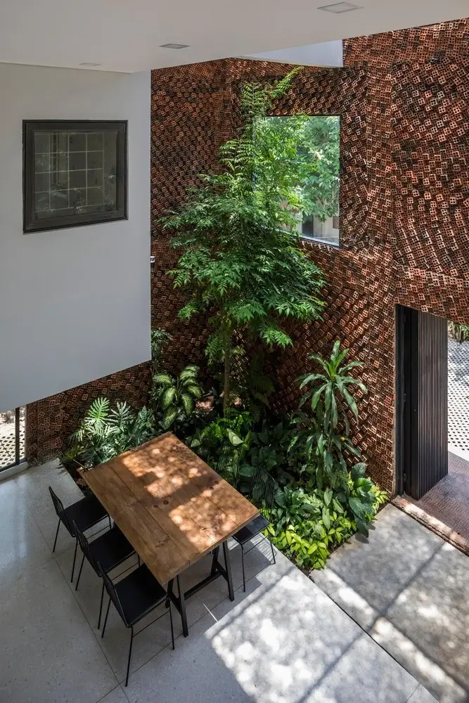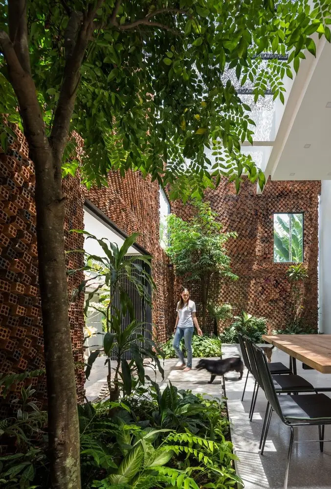 This 'breathing house' by the Dong Nai River is a vivid testament to ecological and natural architecture. The highlight is its unique breathing wall made from perforated bricks which not only creates aesthetic beauty but also helps keep the house cool and fresh. The intelligent design optimizes natural light and ventilation providing a healthy living space full of energy. Every corner integrates green spaces and gardens blurring the boundaries between indoors and outdoors. The interior design close to nature with rustic materials creates a relaxing atmosphere. This is truly an ideal space to enjoy life.#BreathingHouse #EcologicalArchitecture #GreenDesign #PerforatedBrickWall #NatureInspiredInterior