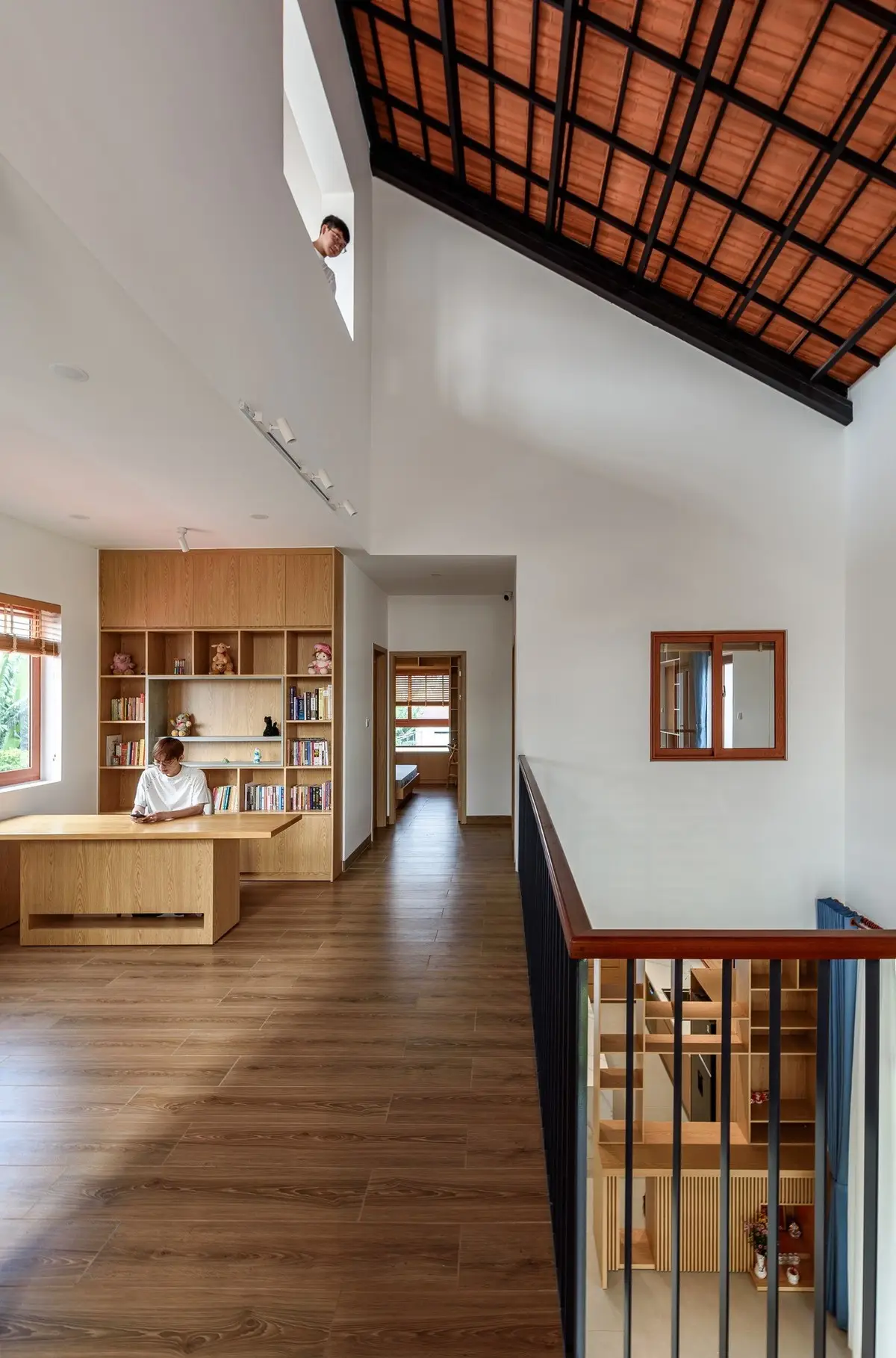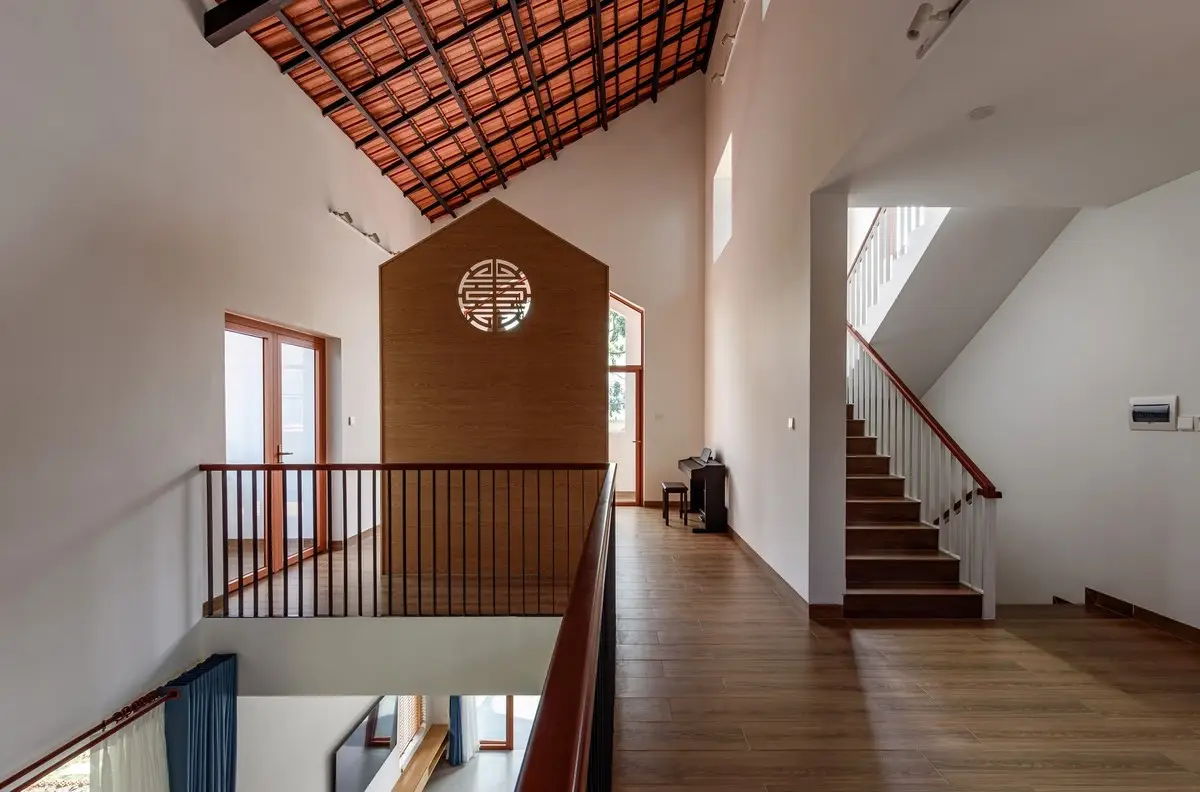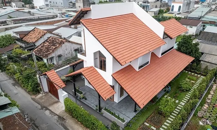 The photo reveals a beautiful perspective of a modern tiled roof house a sophisticated blend of traditional and contemporary styles. The long spacious veranda is a key highlight creating an ideal green and relaxing living space. Here residents can enjoy the fresh air and the beauty of the outdoor garden. The traditional red tiled roof harmonizes with minimalist modern architecture creating a cohesive and elegant overall design. This tiled roof garden house is not just a dwelling but also a peaceful sanctuary ideal for those wishing to age gracefully in a space filled with nature and warmth. The meticulously cared for garden and outdoor areas contribute to a high quality living environment.#ModernTiledRoofHouse #VietnameseArchitecture #GardenHouse #GreenLiving #ContemporaryDesign