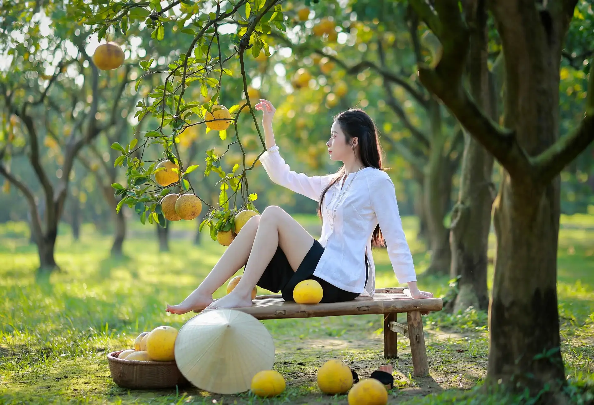 Gentle Girl in Pomelo Garden, Youthful Beauty Blending with Nature 17639840