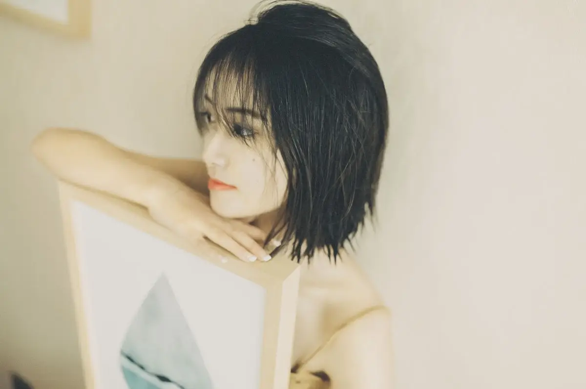 This image captures a deeply emotional moment of model Sha Ai (紗愛), revealing her natural beauty and warmth. With her short hair and profound eyes, she exudes a gentle allure that captivates the viewer. The soft fabric draped around her creates an intimate and comfortable feeling, highlighting her delicate grace. This particular shot is part of a digital photo book from Wunder Publishing House, where Sha Ai showcases her elegance and refined expressions through each frame. This collection promises fans an insightful look into Sha Ai's unique style and aura, inviting them to explore more of her artistic world.#ShaAi #JapaneseModel #DigitalPhotoBook #GentleBeauty #ExpressiveEyes