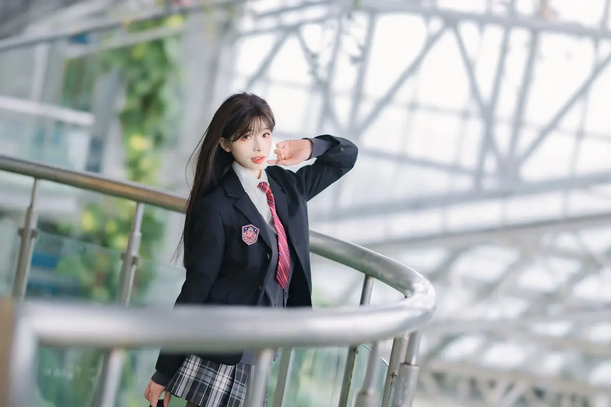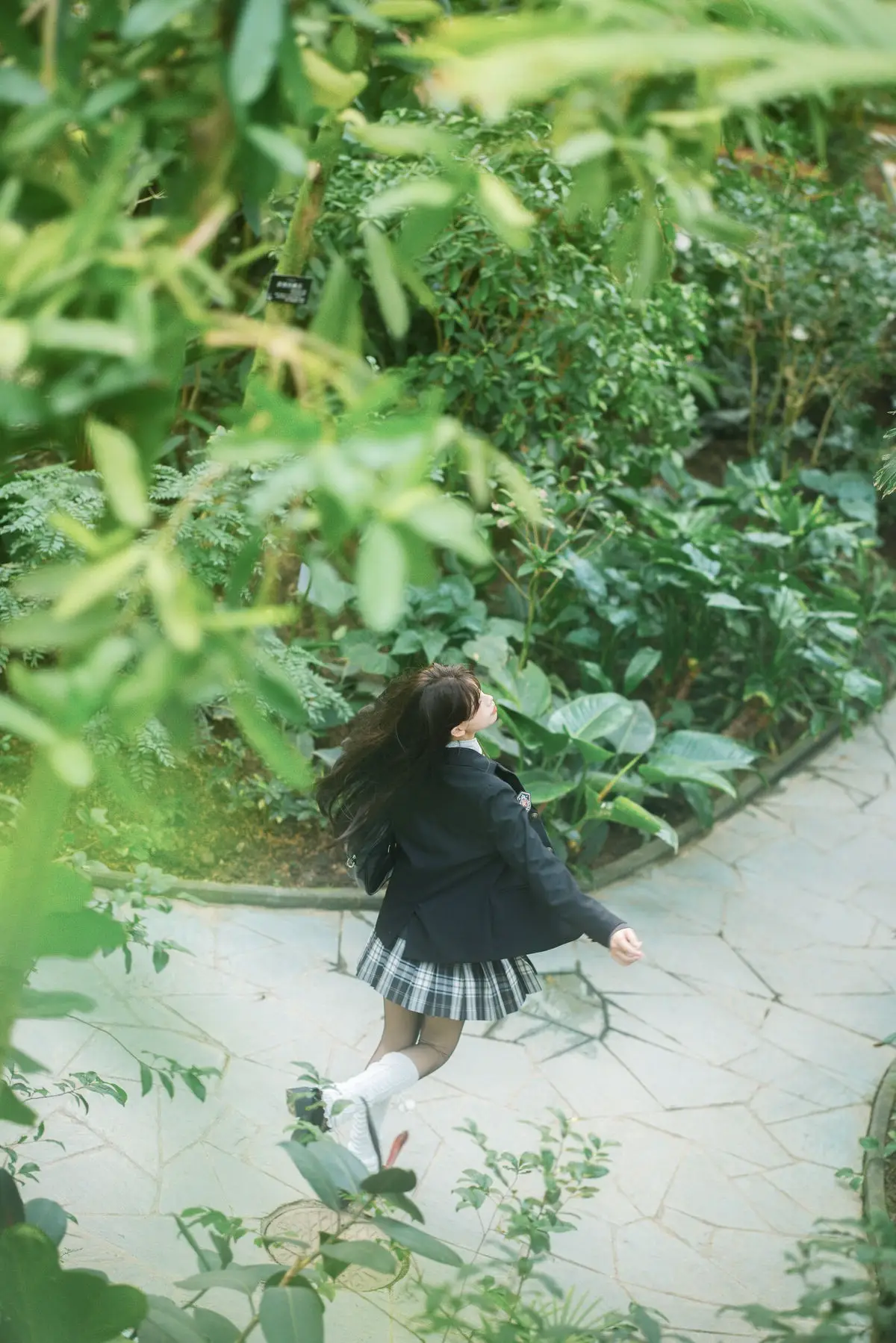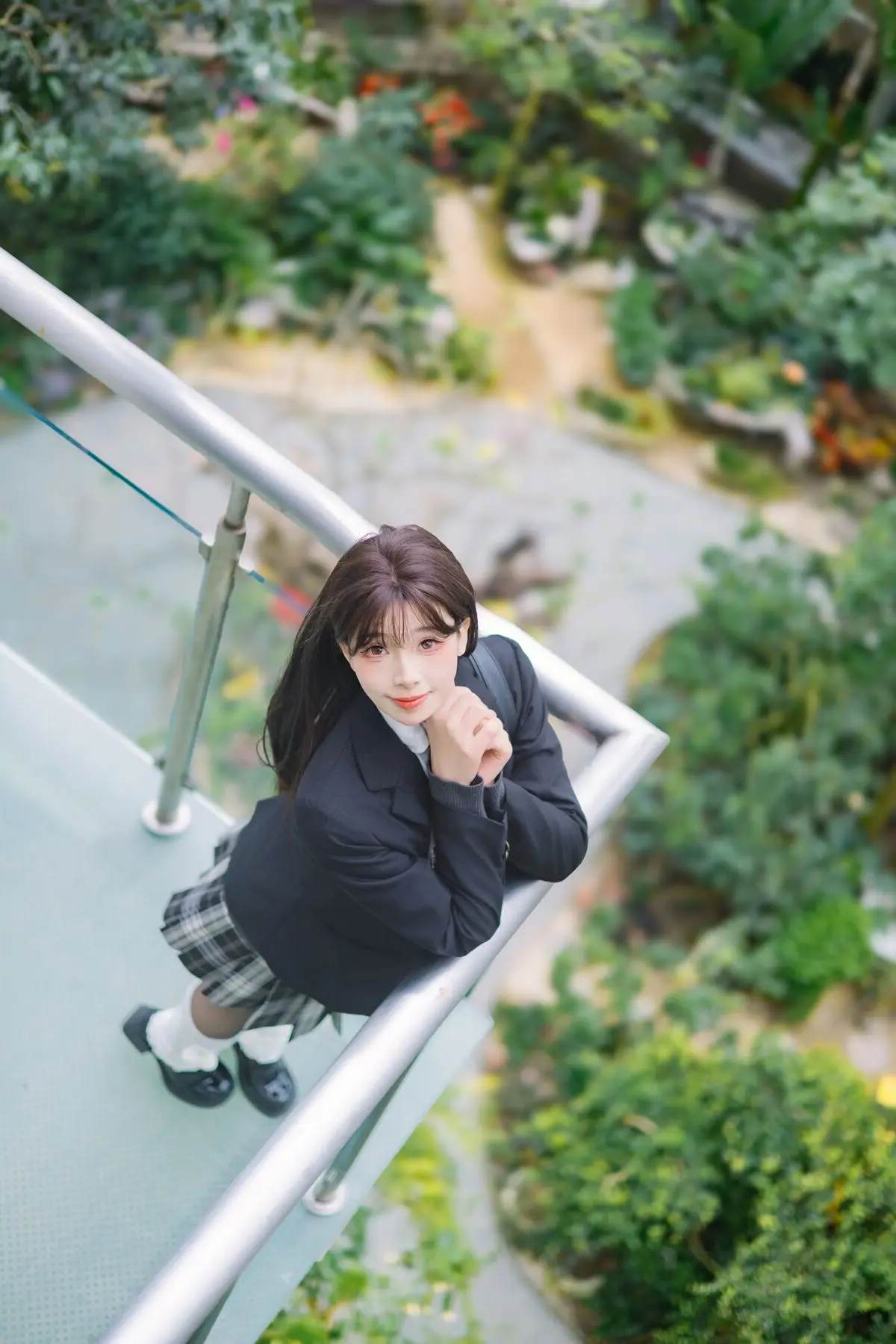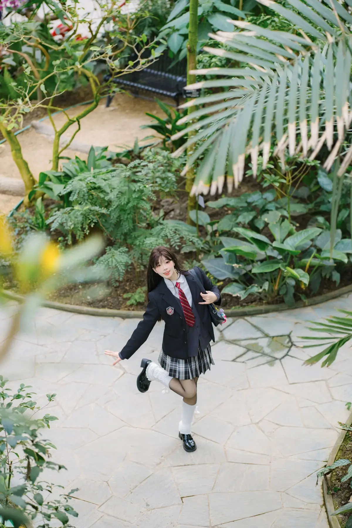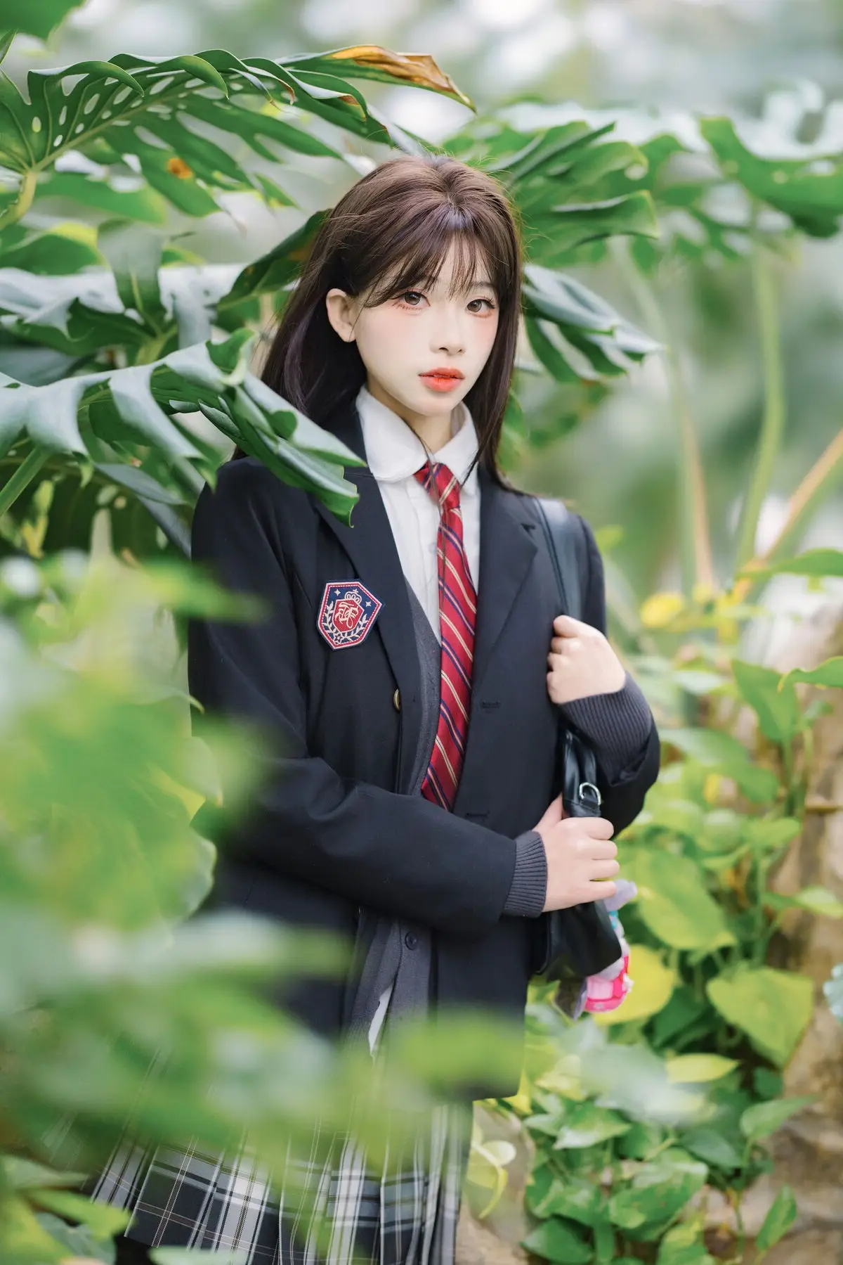 In the YiTuYu Vol.8662 collection, Xian Nu Juan captivates as she gracefully strolls through the vibrant greenery of a botanical garden. The young woman, with her flowing dark hair, dons a stylish dark jacket and a lively plaid skirt, exuding a fresh yet subtly mysterious charm. Captured from an elevated perspective through the dense foliage, the image evokes a sense of observing a muse wandering amidst majestic nature. Gentle natural light illuminates her attire and hair, accentuating Xian Nu Juan’s delicate beauty. This photograph is more than a mere snapshot; it tells a story of immersion in nature’s boundless splendor, where every step is a new discovery within the tranquil embrace of the botanical surroundings.#XianNuJuan #YiTuYu #BotanicalGarden #NatureWalk #AsianModel #JK #JKUniform