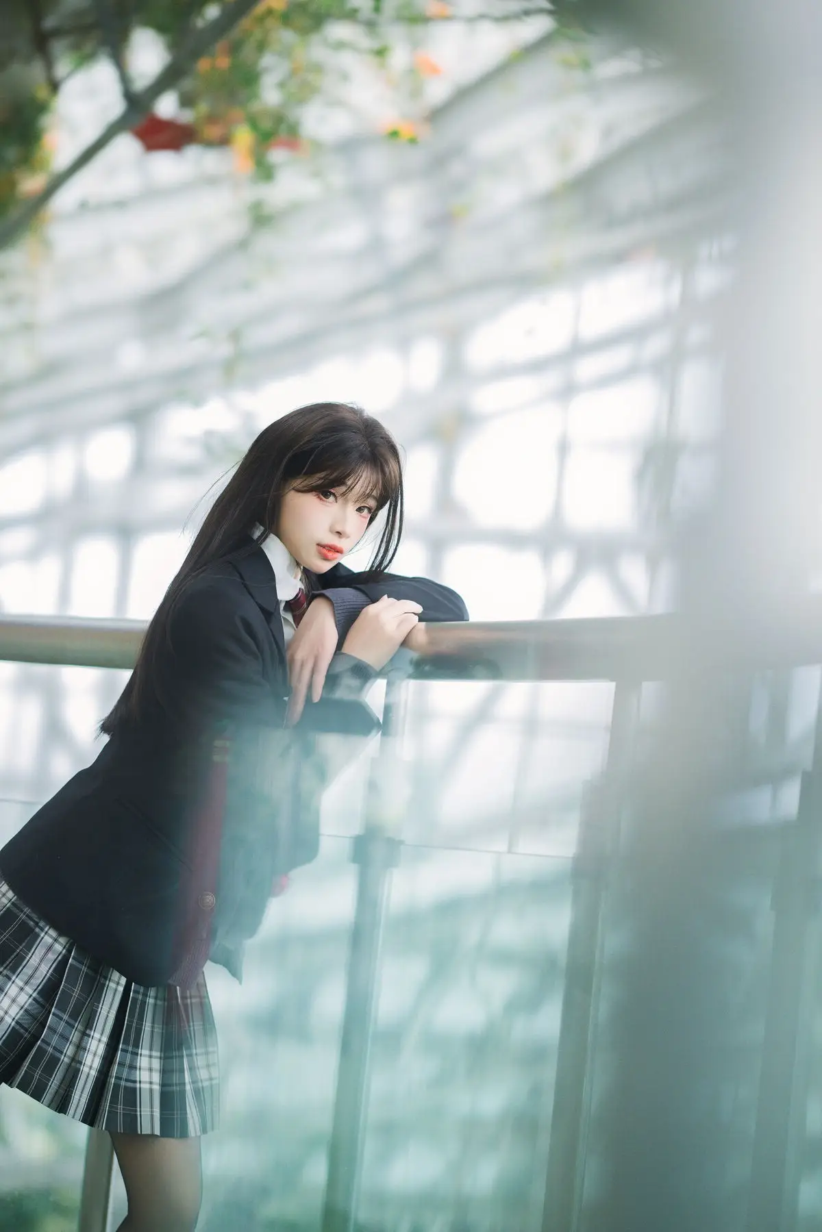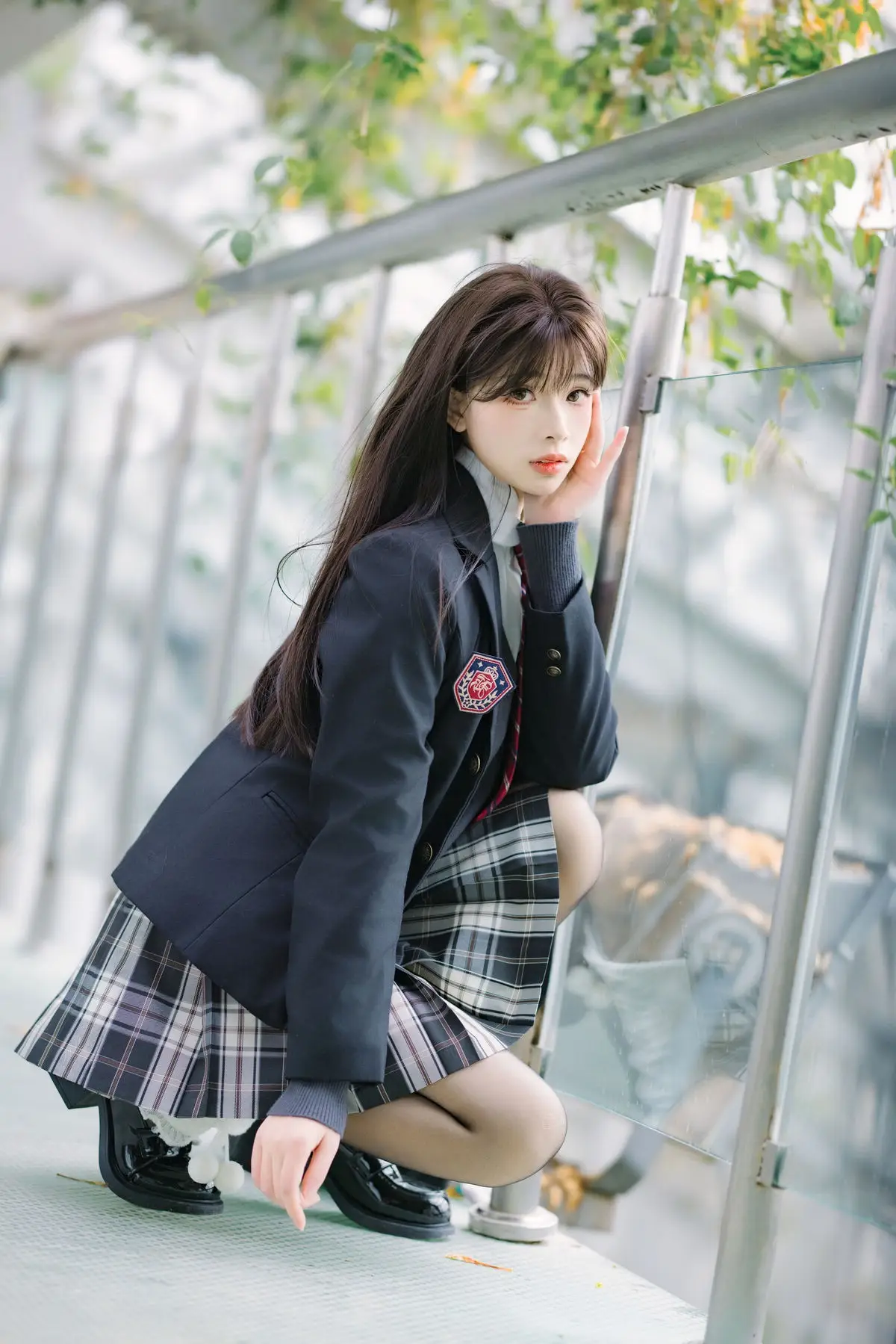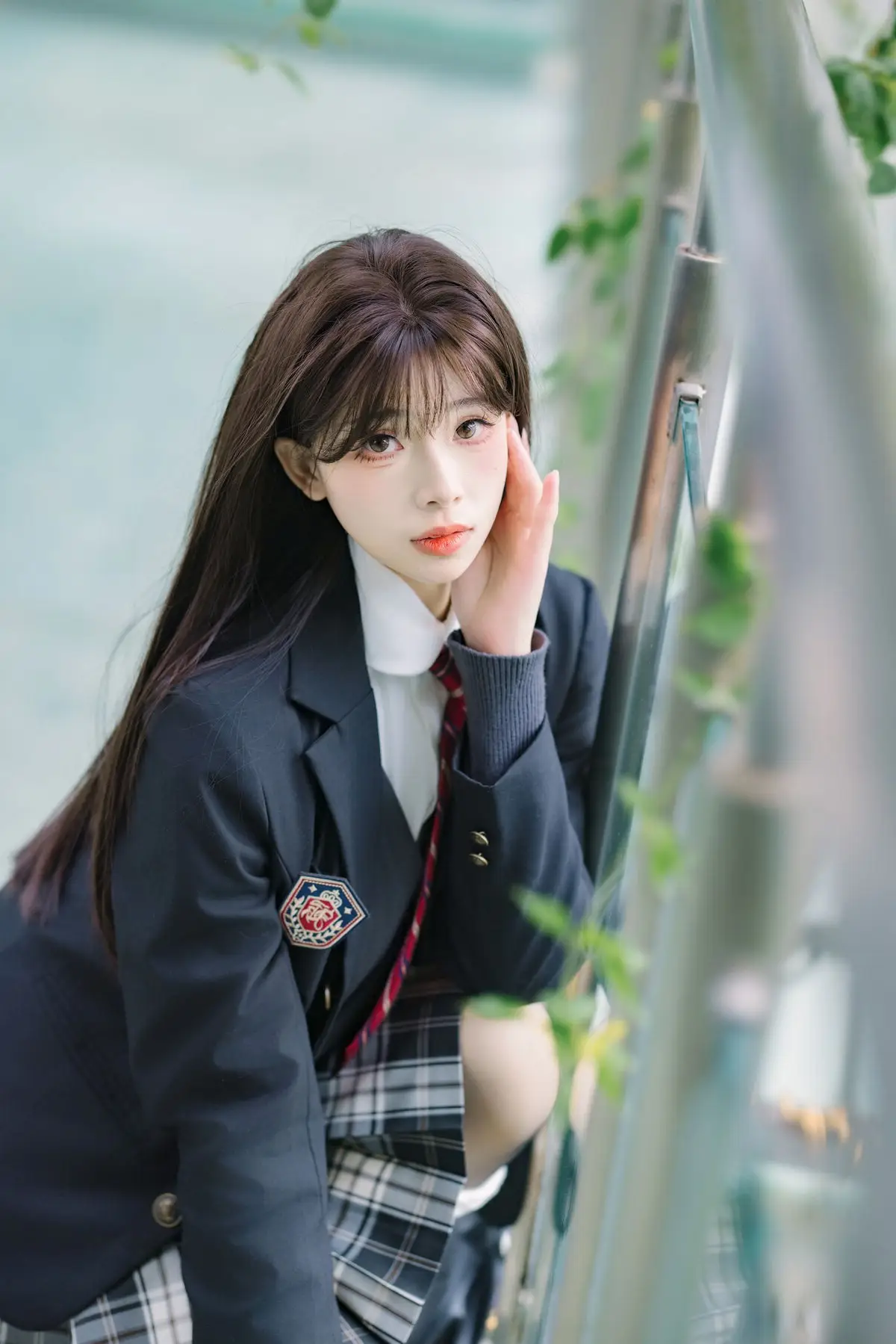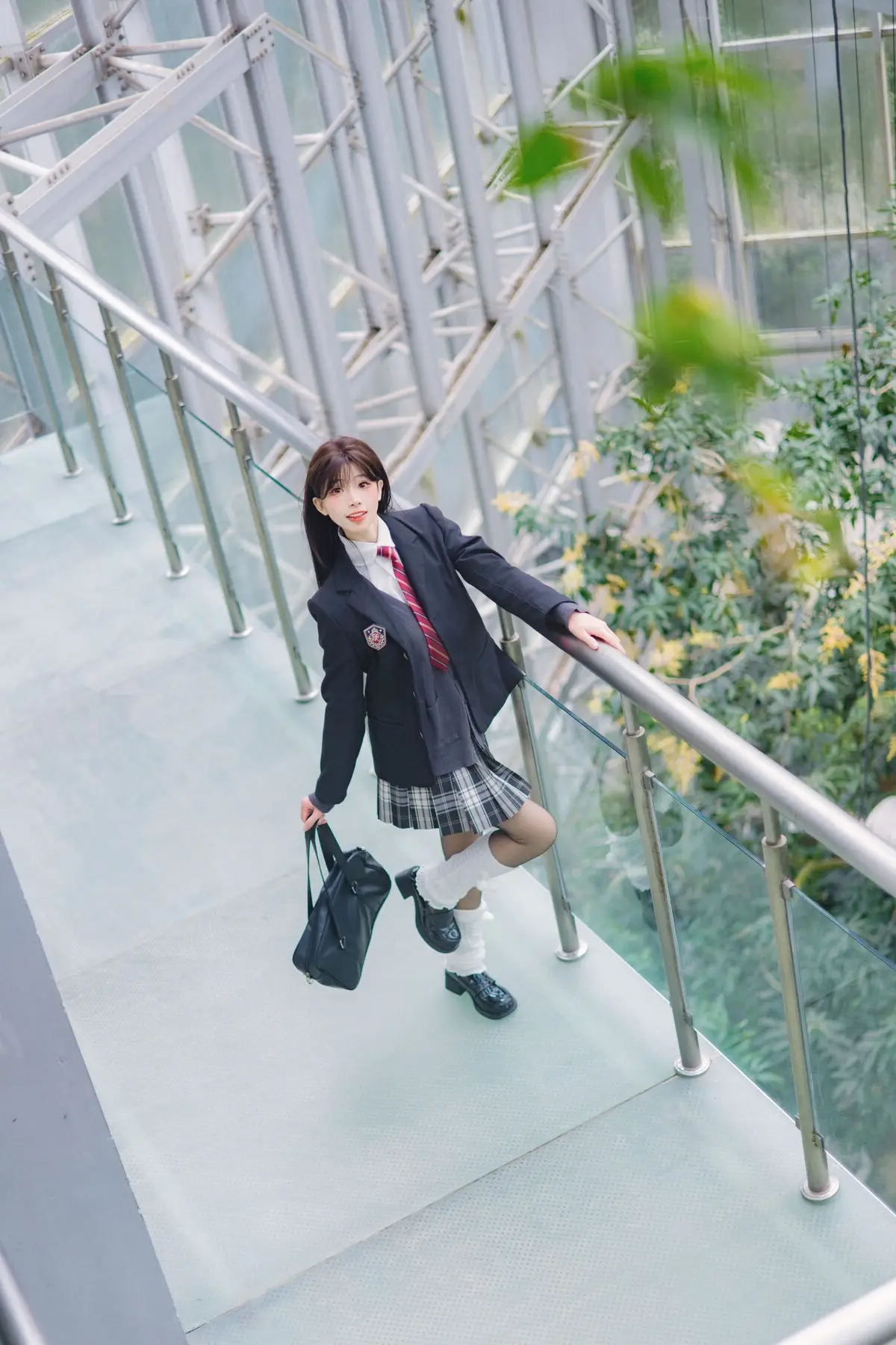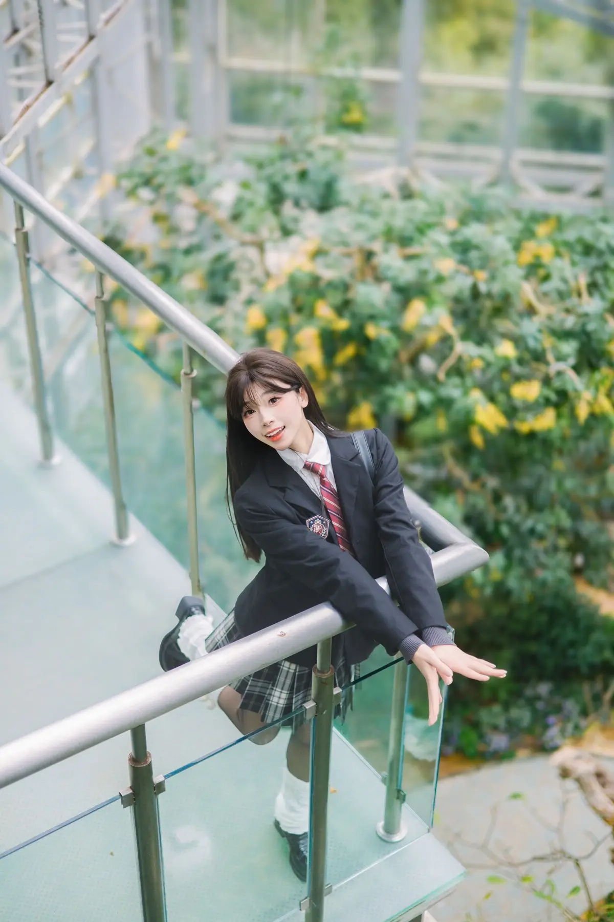 In the YiTuYu Vol.8662 collection, Xian Nu Juan captivates as she gracefully strolls through the vibrant greenery of a botanical garden. The young woman, with her flowing dark hair, dons a stylish dark jacket and a lively plaid skirt, exuding a fresh yet subtly mysterious charm. Captured from an elevated perspective through the dense foliage, the image evokes a sense of observing a muse wandering amidst majestic nature. Gentle natural light illuminates her attire and hair, accentuating Xian Nu Juan’s delicate beauty. This photograph is more than a mere snapshot; it tells a story of immersion in nature’s boundless splendor, where every step is a new discovery within the tranquil embrace of the botanical surroundings.#XianNuJuan #YiTuYu #BotanicalGarden #NatureWalk #AsianModel #JK #JKUniform