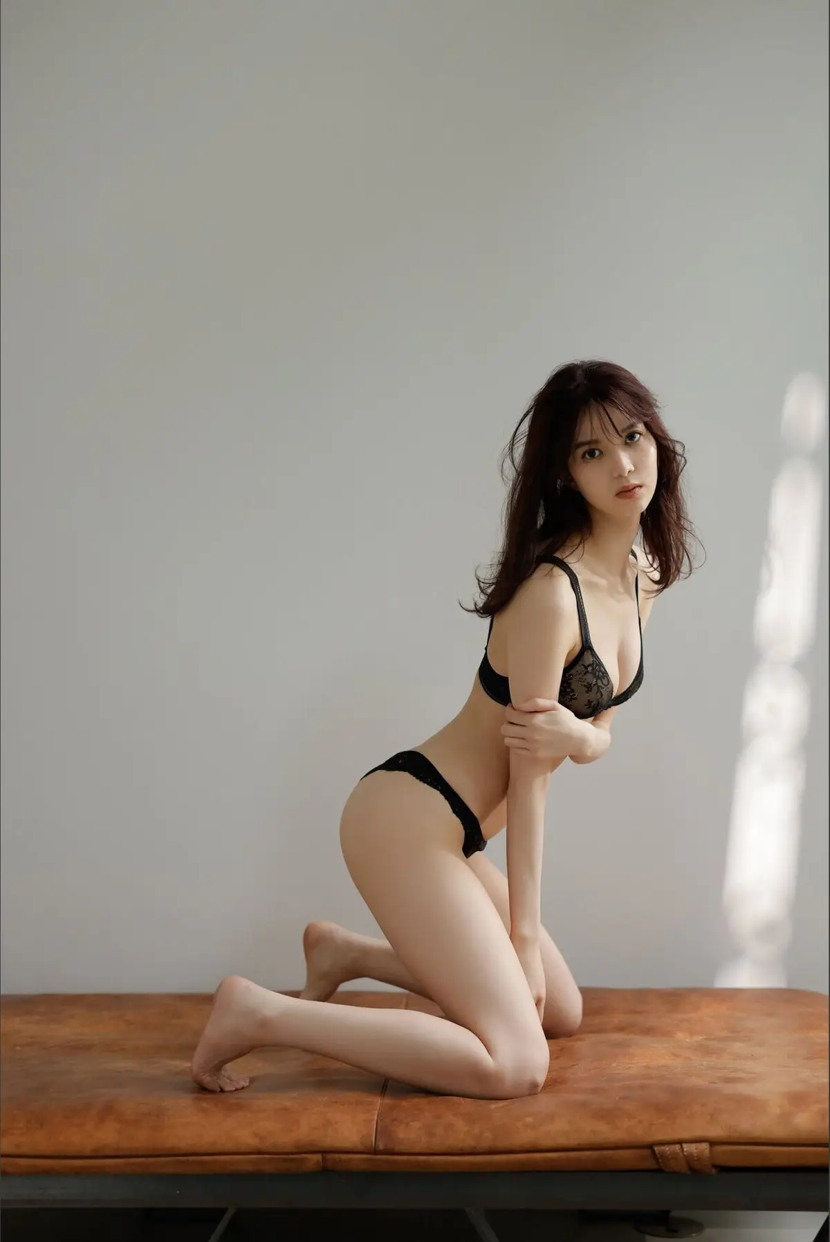 This captivating image offers a delicate glimpse into Kaede Kimura's (木村楓) digital photo book titled "Koihsuru Ekubo," released by FRIDAY. The Japanese model exudes a gentle and ethereal beauty, her long flowing hair and flawless skin illuminated by soft, natural light. Her gaze, directed subtly to the side, conveys a thoughtful yet undeniably alluring expression. The exquisite white lace bra gracefully accentuates her feminine contours, adding a touch of subtle sensuality. The entire composition emanates a sense of serene purity and understated charm, inviting viewers to delve deeper into Kaede Kimura's captivating allure and graceful presence within each page of this remarkable photo collection. A truly emotional photographic artwork.#KaedeKimura #JapaneseModel #FRIDAYPhotobook #KoihsuruEkubo #AsianBeauty