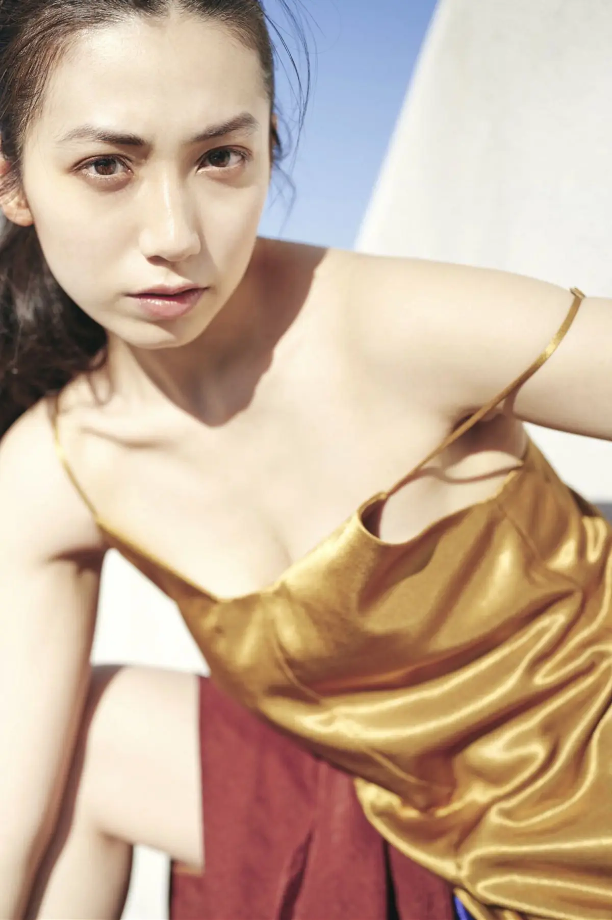 This captivating portrait of Airi Sato (佐藤あいり) from the FRIDAY Digital Photo Book Shinjuku Loneliness showcases her exquisite beauty and allure. The Japanese girl is elegantly dressed in a golden slip dress, revealing her delicate shoulders and offering a profound gaze. This moment not only highlights her physical charm but also conveys a thoughtful emotion, embodying the unique romantic melancholy of Shinjuku Loneliness. Airi Sato exudes a confident yet pensive aura, creating a deeply artistic photograph. Every detail, from her neatly tied hair to the natural lighting, enhances her sophisticated elegance and captivating charm. This is a truly remarkable piece of photography that draws every eye.#AiriSato #SatoAiri #FRIDAYDigital #ShinjukuLoneliness #JapaneseModel