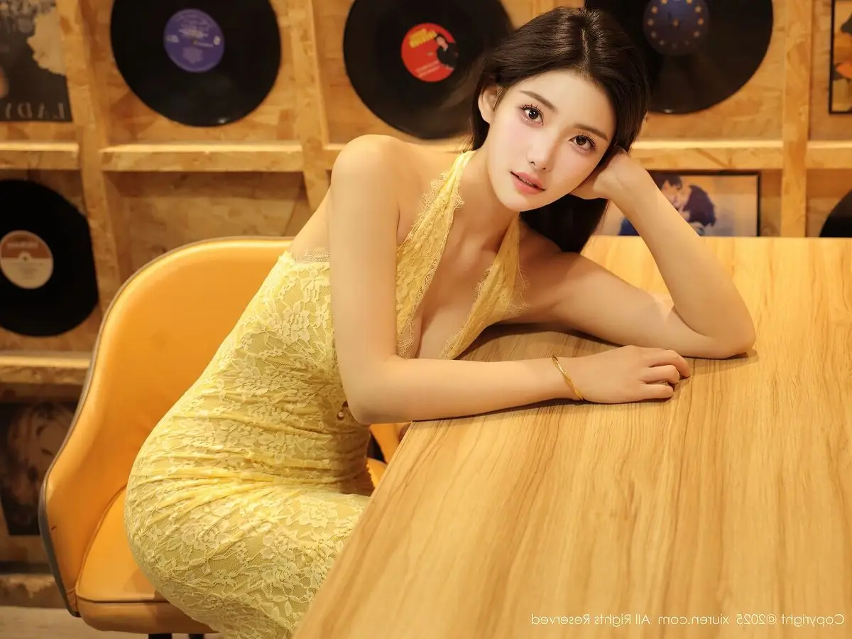 In the captivating XiuRen No.10715 photoshoot model Li Shuang Er radiates a pure and irresistible charm She graces the scene in an exquisite yellow lace dress elegantly accentuating her graceful figure Her poised sitting posture on warm wooden surfaces against a backdrop of vintage vinyl records creates a nostalgic and poetic atmosphere Li Shuang Ers serene gaze and gentle smile seem to tell a story of elegance and timeless style This collection is undoubtedly a must-see for admirers of sophisticated beauty and the harmonious blend of modern allure with classic aesthetics#LiShuangEr #XiuRen #YellowLaceDress #ElegantFashion #AsianBeauty