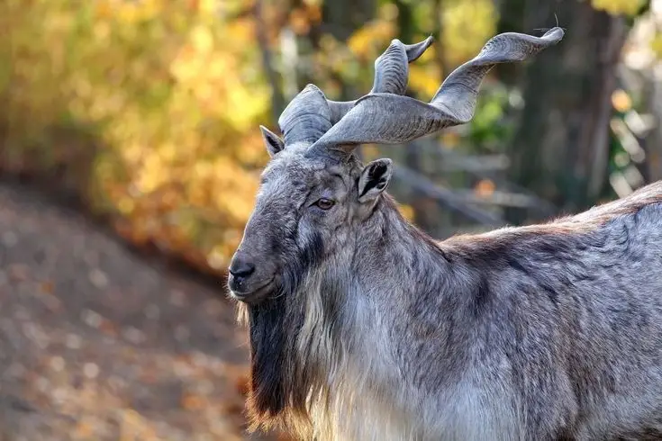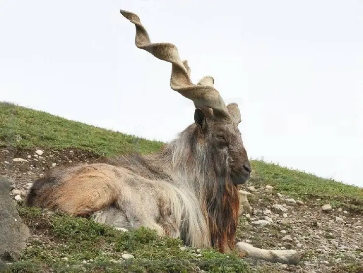 Markhor: Majestic Mountain Goat with Spiraling 1.5-Meter Horns, a Symbol of Central Asian Wilderness.
