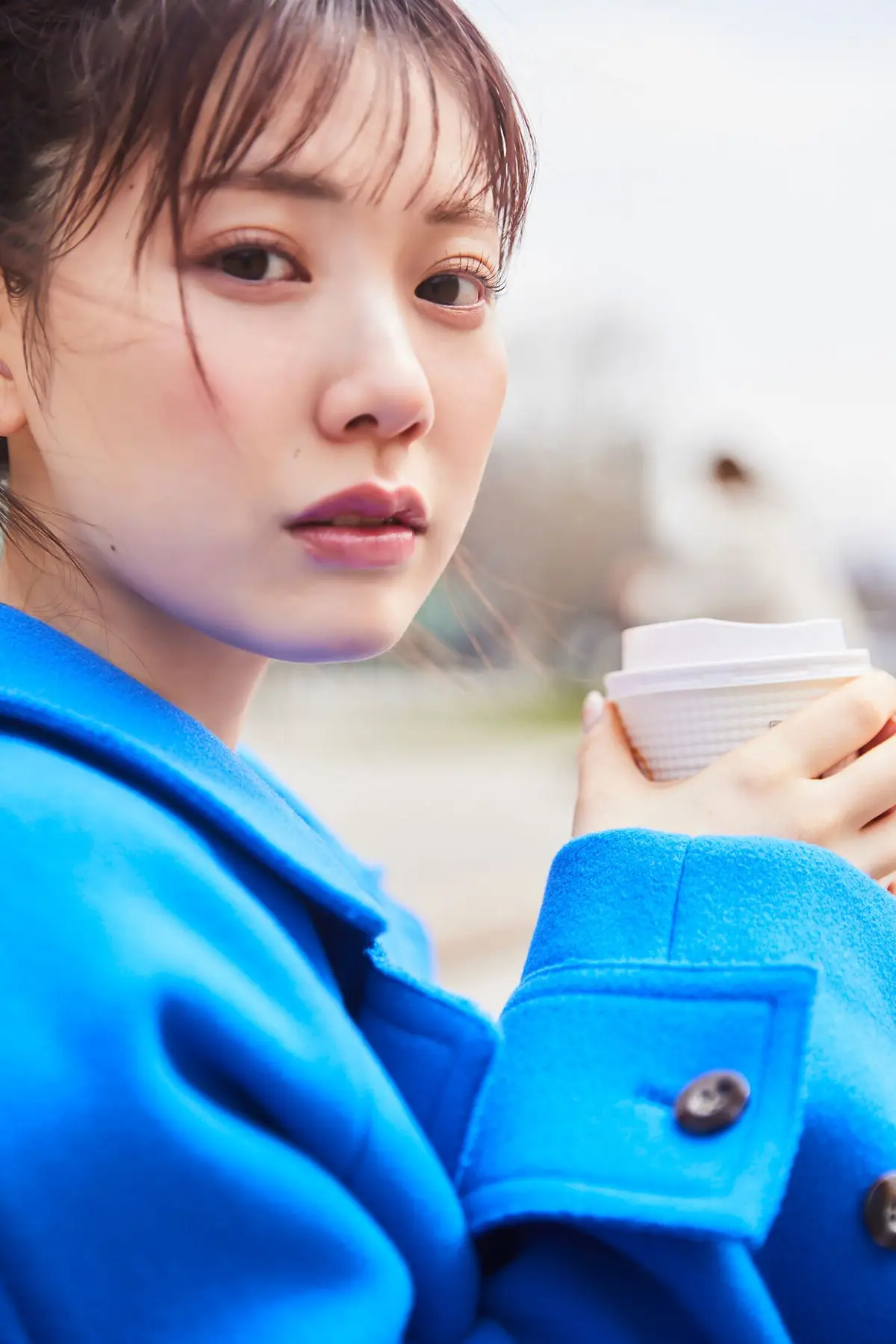 Discover Mio Ishikawa (石川澪) in a tender and captivating moment from the FLASH Digital Photo Book R. This Japanese model exudes a pure beauty with her deep inviting gaze seemingly calling for warmth. Her vibrant blue coat beautifully complements her fair skin while the coffee cup in her hand paints a picture of a peaceful winter morning. Mio Ishikawa's delicate features and gentle expression truly evoke the feeling of 'makes you want to hug her' (抱きしめたくなる。). This striking image perfectly captures the irresistible allure of the model promising an unforgettable emotional experience for viewers.