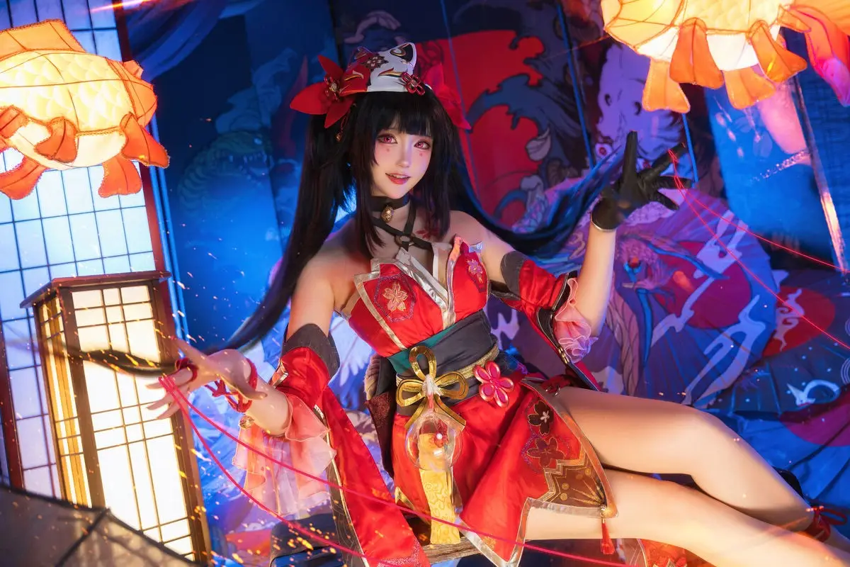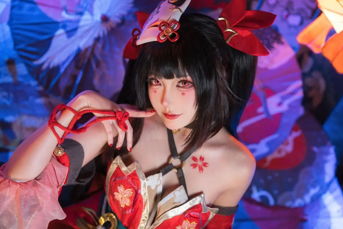 Coser Gua Xi Jiang masterfully brings Sparkle from Honkai Star Rail to life She captivates viewers with a vibrant red costume featuring intricate details reminiscent of traditional East Asian culture Her jet-black hair adorned with red bows sharp eyes and enigmatic expression create an irresistible allure Notable features include a cherry blossom mark on her collarbone and unique under-eye makeup The softly lit ethereal background with glowing lights further enhances Sparkle's mystical and enchanting beauty This high-quality cosplay perfectly embodies the spirit and elegant demeanor of the beloved game character#CoserGuaXiJiang #HonkaiStarRail #SparkleCosplay #HuoHuoCosplay #GameCharacter