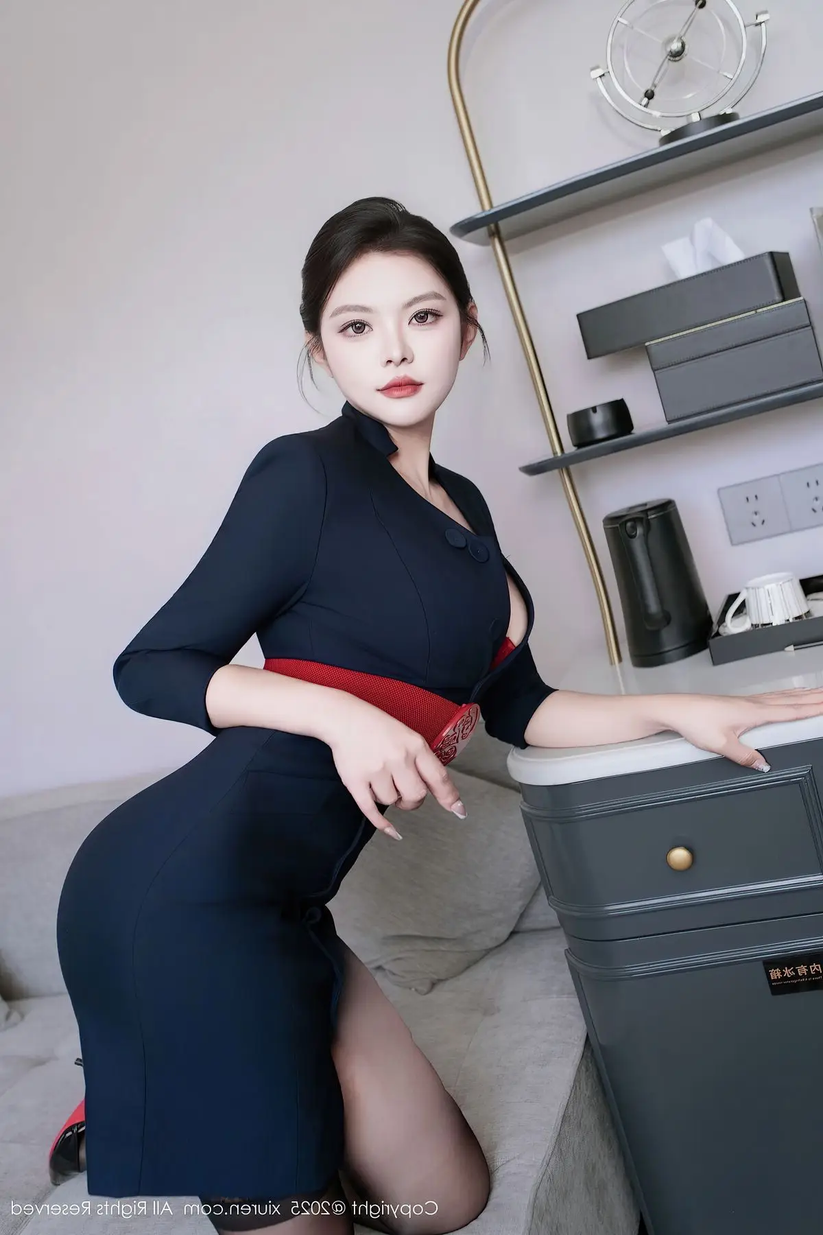 In the captivating XiuRen No.10569 series, model Mei Gui Wo Ai Ni embodies an enchanting police officer, showcasing her alluring beauty and confident demeanor. She poses gracefully on a sleek black seat, her long legs elegantly highlighted by delicate stockings. The soft ambient lighting of the luxurious setting accentuates her figure and the striking blue uniform. Every gesture from Mei Gui Wo Ai Ni exudes professionalism yet remains incredibly seductive, creating an image that is both powerful and mysterious. This unmissable collection perfectly blends authority with the captivating charm of Mei Gui Wo Ai Ni's Asian beauty.#MeiGuiWoAiNi #XiuRen #PoliceCosplay #AsianBeauty #Glamour
