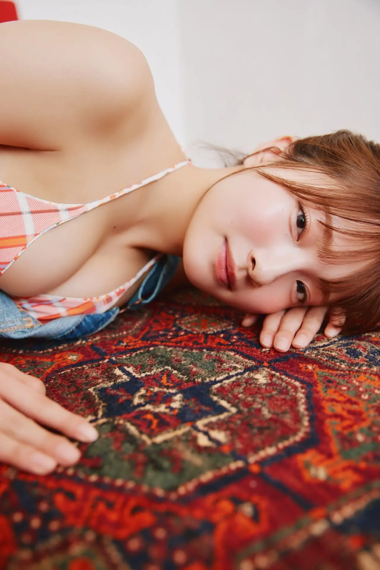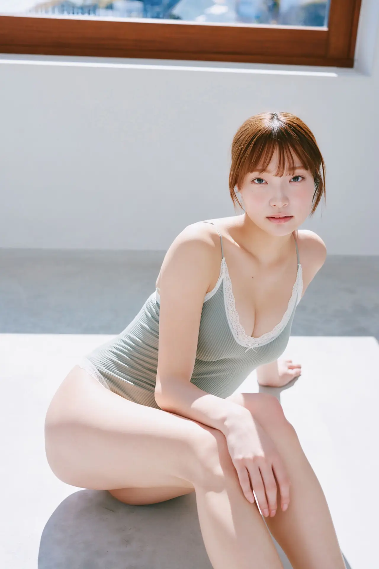 This stunning photograph captures the radiant moment of Satona Natsuki from her Otonatchan Vol.2 photo series. Set against a sparkling beach bathed in glorious sunshine, she emerges with captivating natural beauty. Her lustrous brown hair gently sways in the sea breeze, creating an elegant and carefree charm. Satona Natsuki's tender gaze and soft smile invite viewers to appreciate her tranquility and relaxation. The close-up portrait highlights her smooth skin and confident, vibrant aura. This is more than just a model's photo; it's a memorable summer moment, conveying a sense of freedom and unadulterated beauty amidst nature.