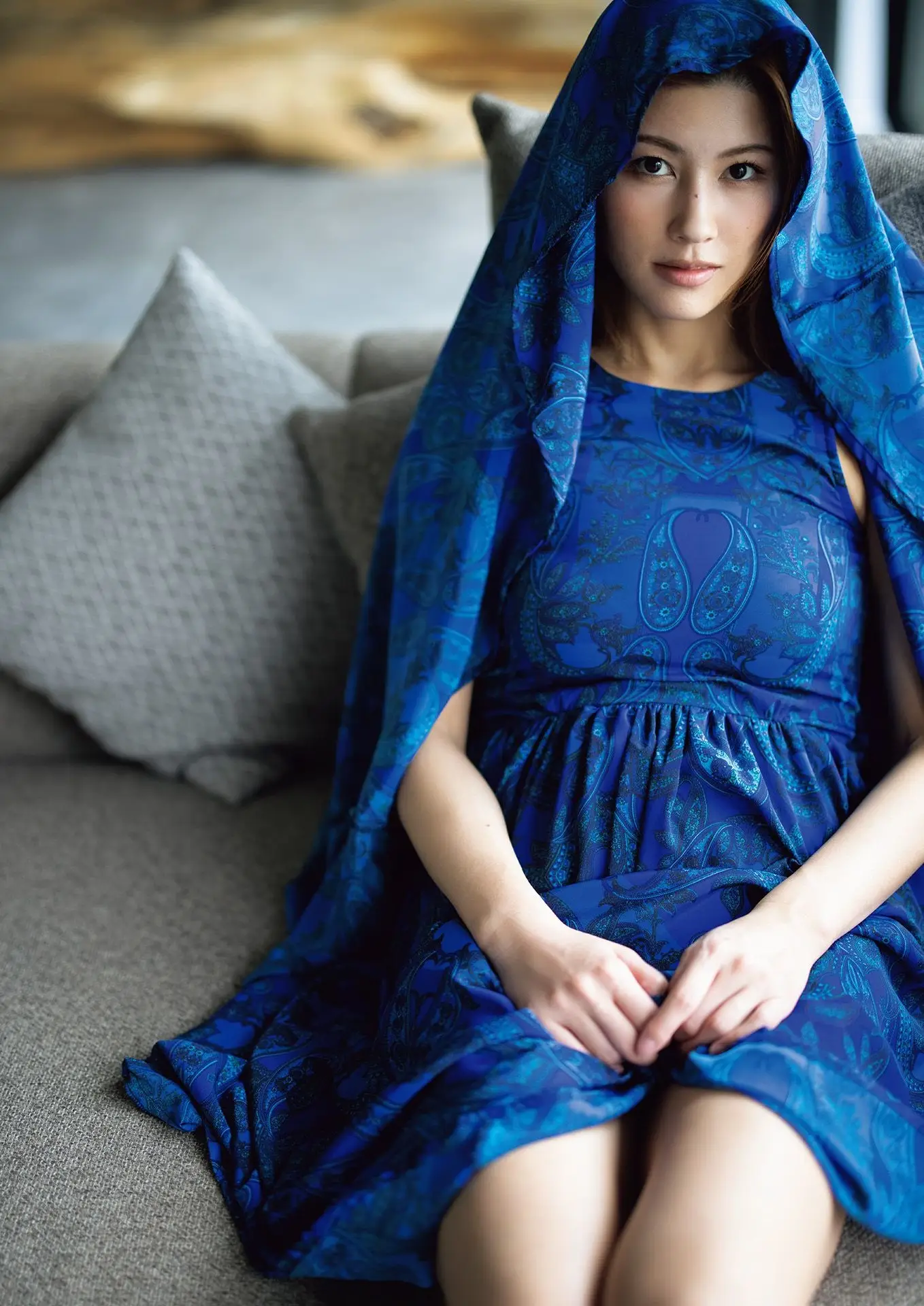 In this captivating image, 美乃すずめ (Mino Suzume) embodies an enchanting presence, adorned in a sophisticated sapphire blue ensemble. The flowing dress and matching draped head covering evoke a sense of timeless mystery and ethereal beauty, reminiscent of a mythical nymph. Her serene gaze, directed straight at the viewer, is profound and deeply alluring, hinting at untold stories. The elegant seated posture with gently clasped hands conveys a sense of peaceful grace, yet remains undeniably captivating. Every detail, from the rich blue hue to the delicate contours of her face, contributes to a portrait of compelling allure. It's a vision of enduring beauty that commands attention, drawing the observer into a deeply mesmerizing experience.#MinoSuzume #BlueNymph #MysteriousBeauty #CaptivatingGaze #SapphireBlue