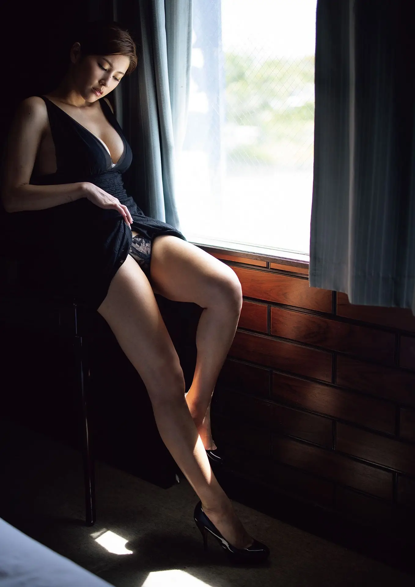 In this captivating image JP Hikari Kisaki 妃ひかり embodies a delicate and contemplative beauty. Seated gracefully on a simple wooden chair she wears a soft patterned slip dress that accentuates her natural form. Gentle natural light streams in from the window enveloping her in a warm ethereal glow creating a serene and intimate atmosphere. Hikari Kisaki's expression is one of quiet introspection her gaze seemingly lost in thought or directed towards an unseen horizon. This moment beautifully captures her innate charm where her natural elegance perfectly merges with the tranquil setting and soft illumination. As part of the Part01 collection the photograph offers an authentic and unadorned portrayal of beauty inviting viewers to appreciate the peacefulness and profound inner grace of the subject.#HikariKisaki #JapaneseModel #NaturalBeauty #PortraitPhotography #TowardsTheLight