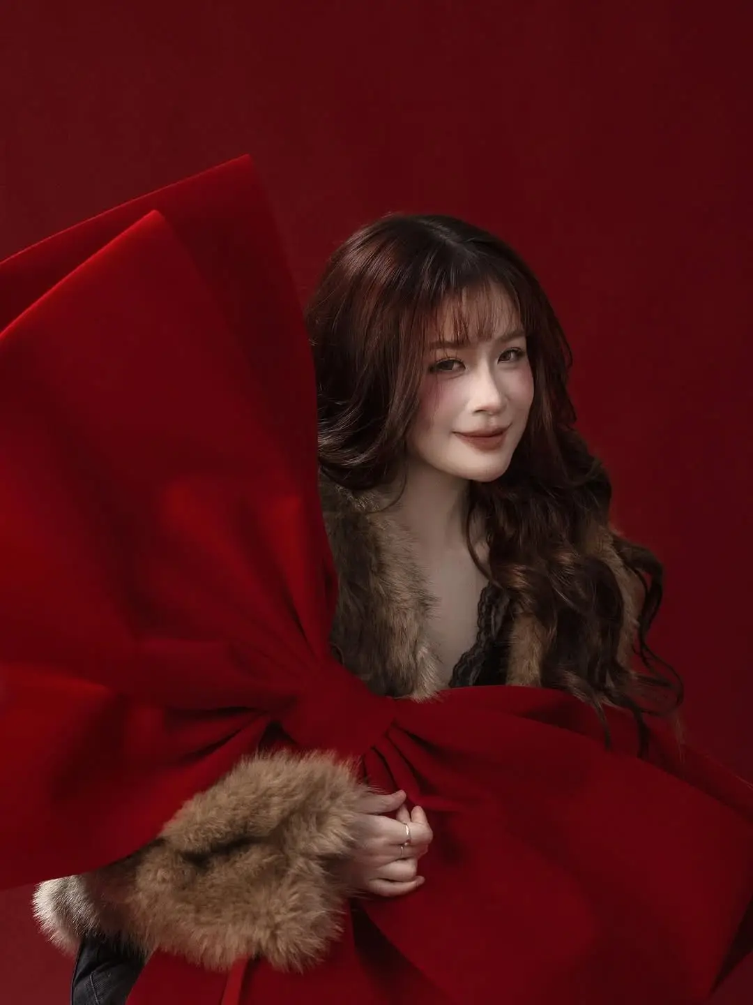Rich kid Chao once again asserts her beauty and class through a series of striking close-up photos. Against a vibrant red background symbolizing power and luxury, Chao appears with a sweet yet equally captivating beauty. Her delicate face, sparkling eyes, and gentle smile create an irresistible allure. The soft, warm fur coat is not only a fashion highlight but also enhances her noble demeanor. Every detail, from her wavy hair to her delicate makeup, contributes to a harmonious and sophisticated overall look, leaving fans in awe and admiration.#RichKidChao #ChaoBeauty #CloseUpPortrait #LuxuryFashion #ElegantStyle